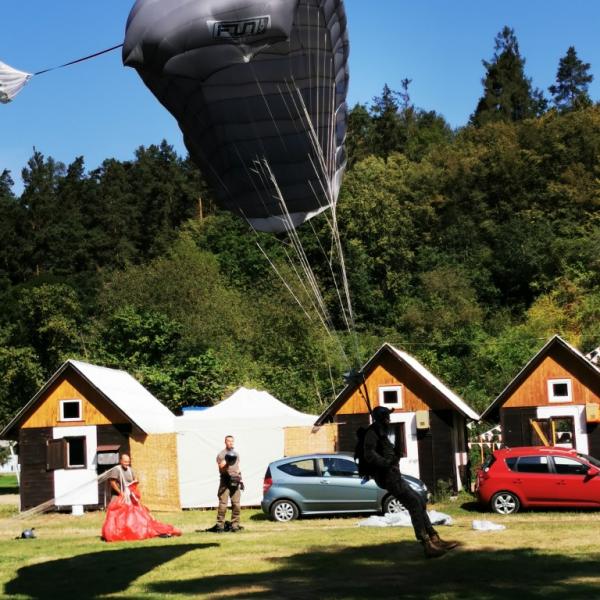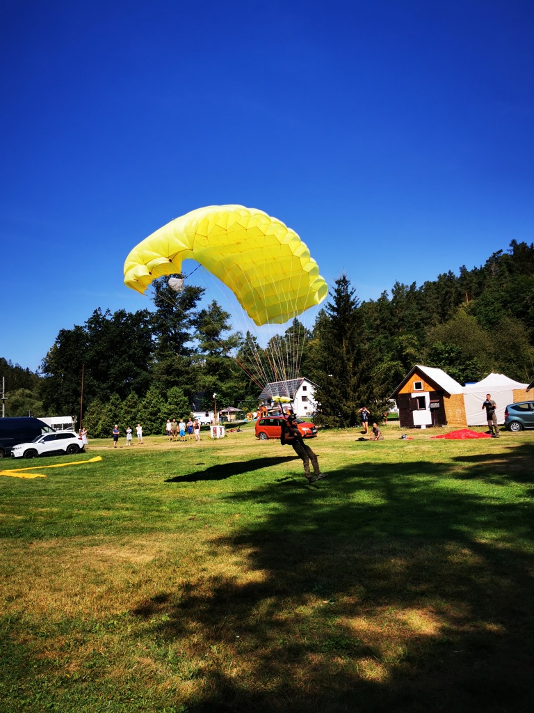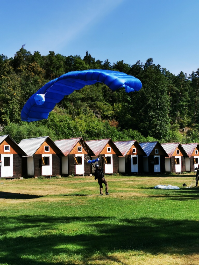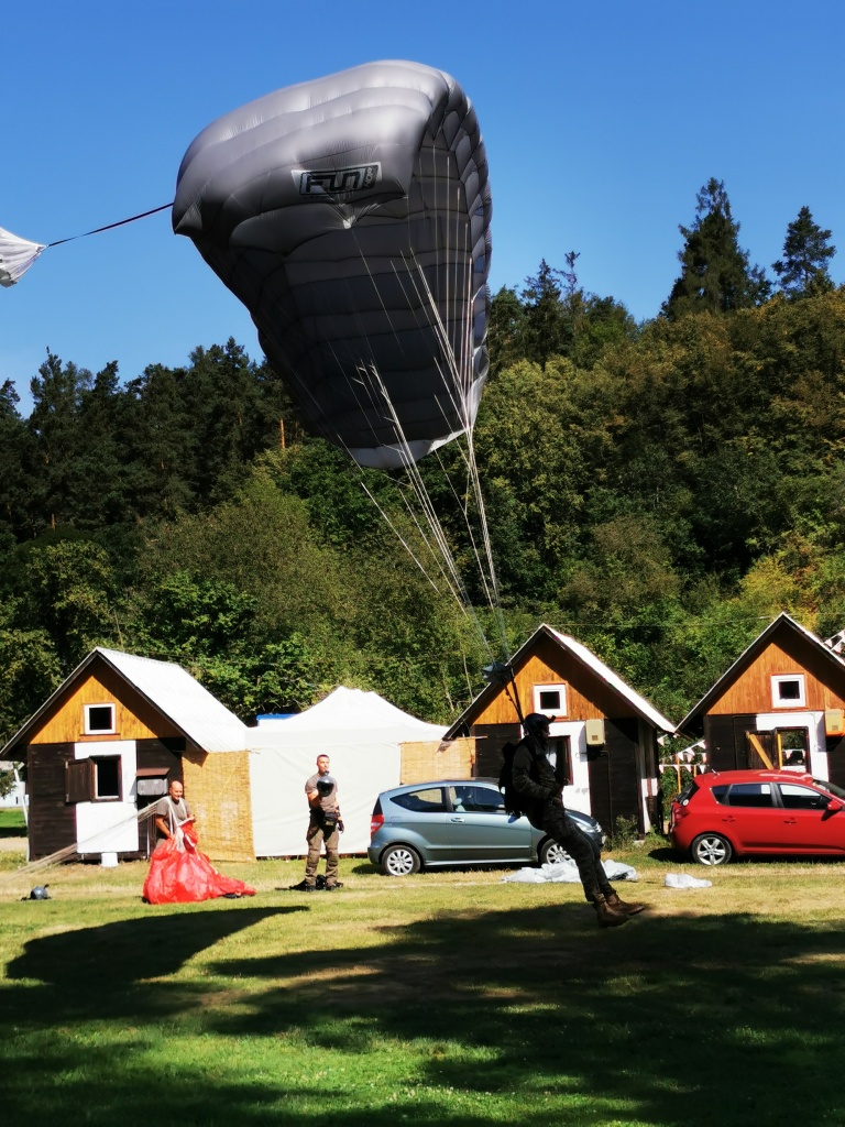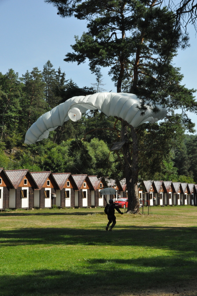 představa volného pádu z výšky několika tisíc metrů mě děsí jako málokteré jiná. Natož něco takového absolvovat dobrovolně s padákem na zádech. Nám obyčejným smrtelníků, co cítíme jisté šimrání v břiše při pouhém šplhání po schodech na běžnou rozhlednu, nejde na rozum, jak je něco takového možné nejen přežít, ale ještě absolvovat se samozřejmou lehkostí a úsměvem. Právě tak nám totiž přistáli ve středu dopoledne naši kamarádi z oblak přímo do tábořiště. S lehkostí a úsměvem.