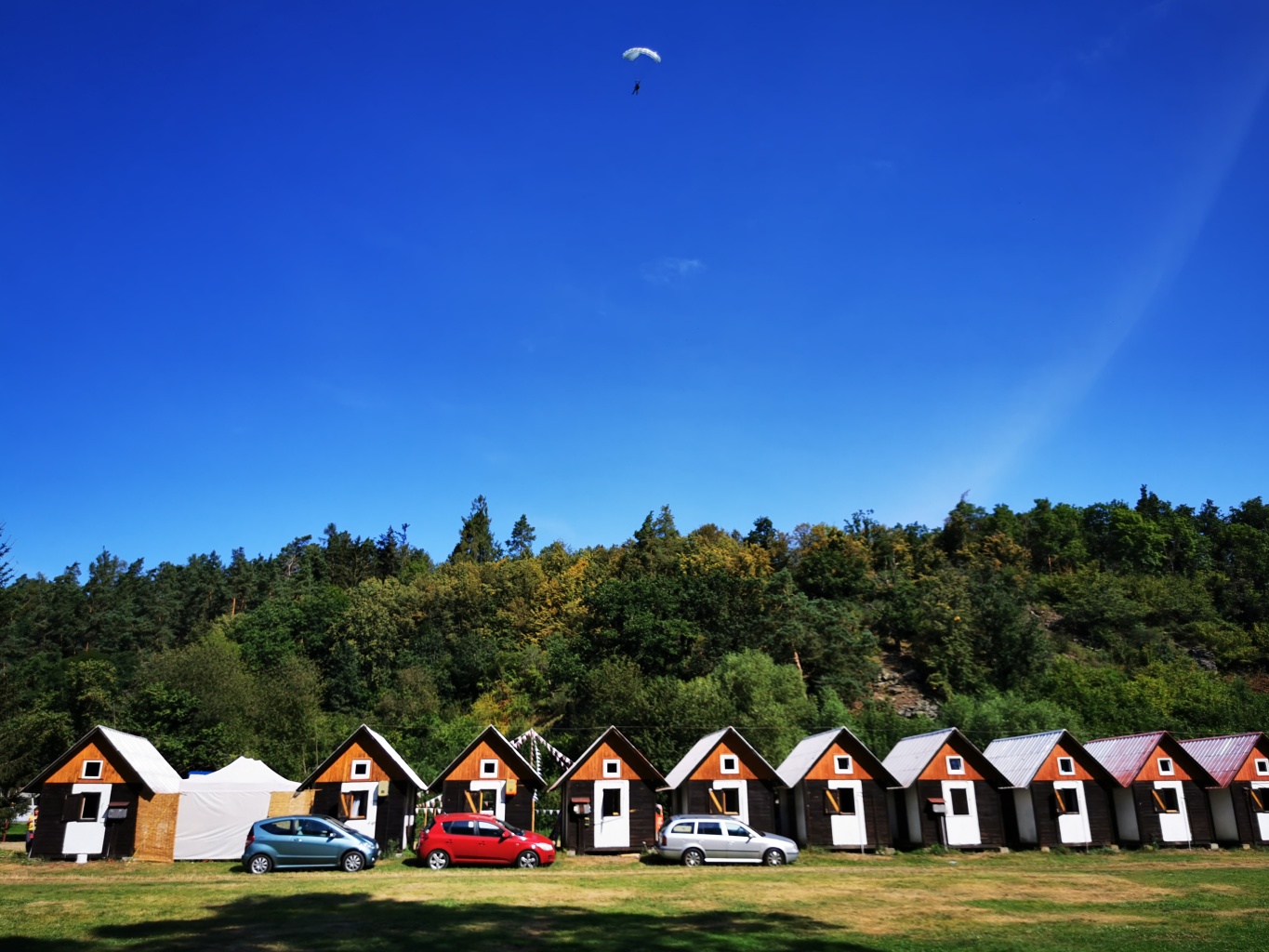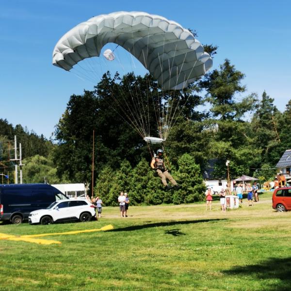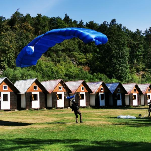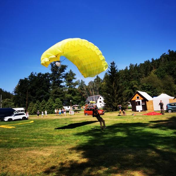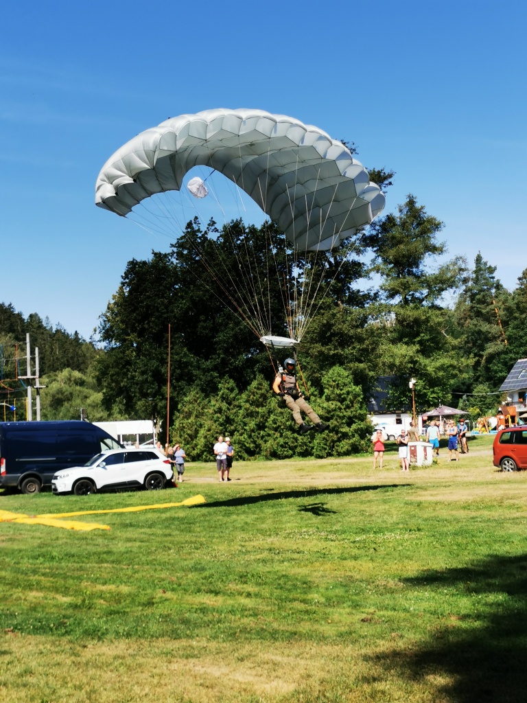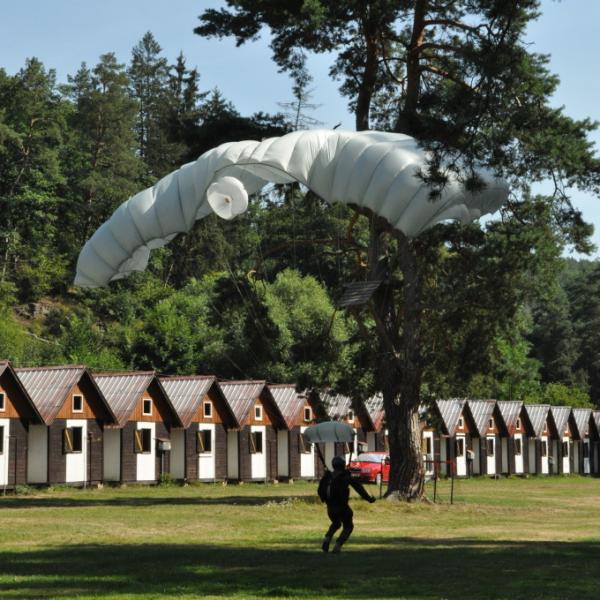 představa volného pádu z výšky několika tisíc metrů mě děsí jako málokteré jiná. Natož něco takového absolvovat dobrovolně s padákem na zádech. Nám obyčejným smrtelníků, co cítíme jisté šimrání v břiše při pouhém šplhání po schodech na běžnou rozhlednu, nejde na rozum, jak je něco takového možné nejen přežít, ale ještě absolvovat se samozřejmou lehkostí a úsměvem. Právě tak nám totiž přistáli ve středu dopoledne naši kamarádi z oblak přímo do tábořiště. S lehkostí a úsměvem.