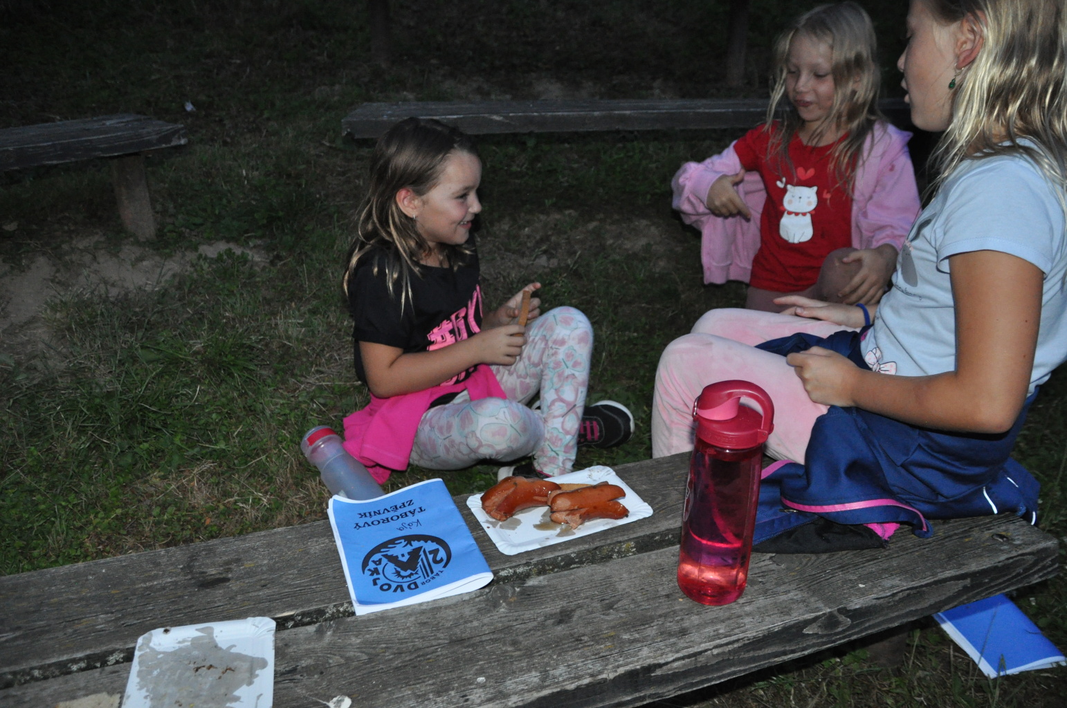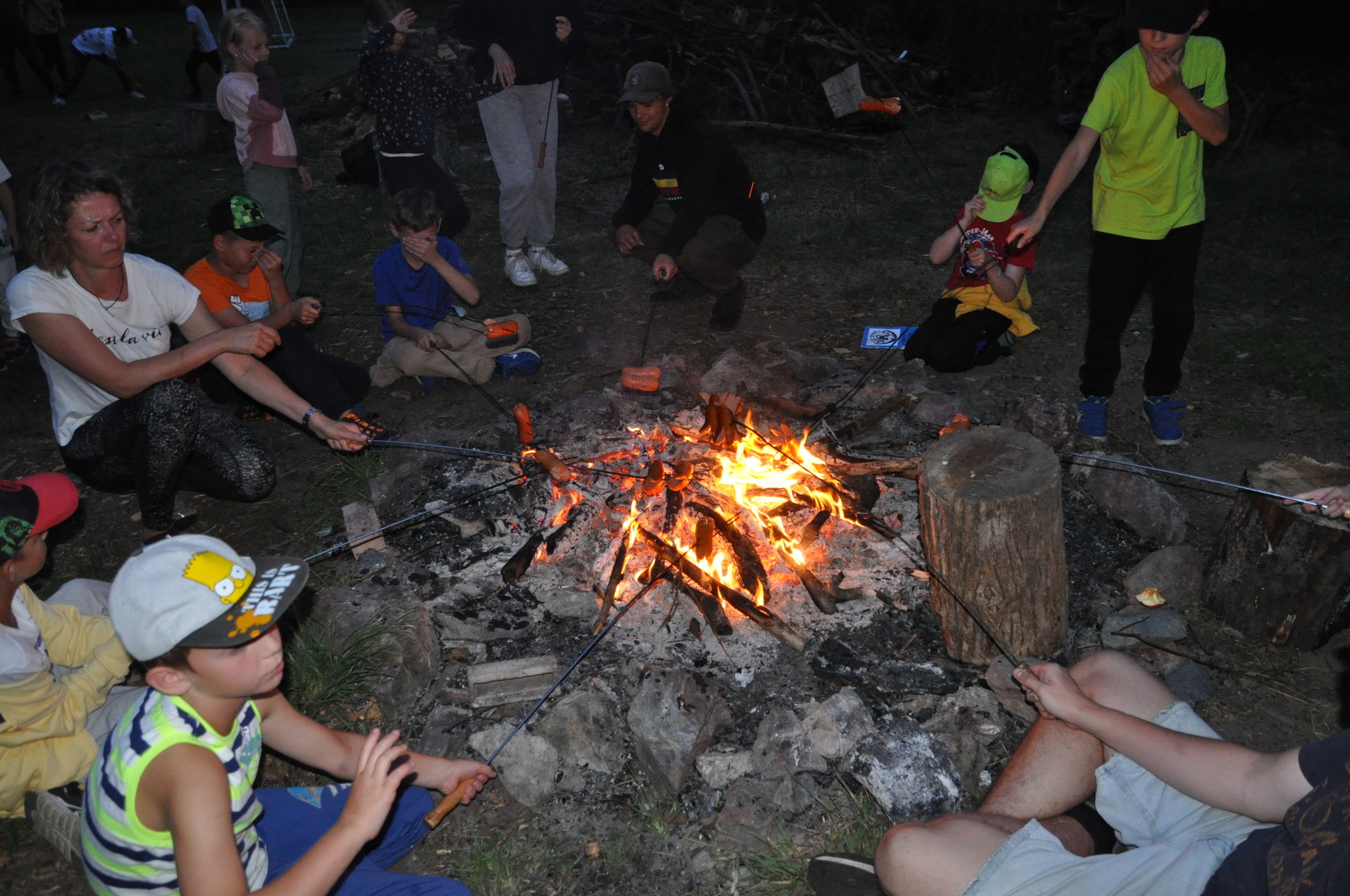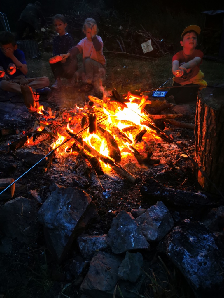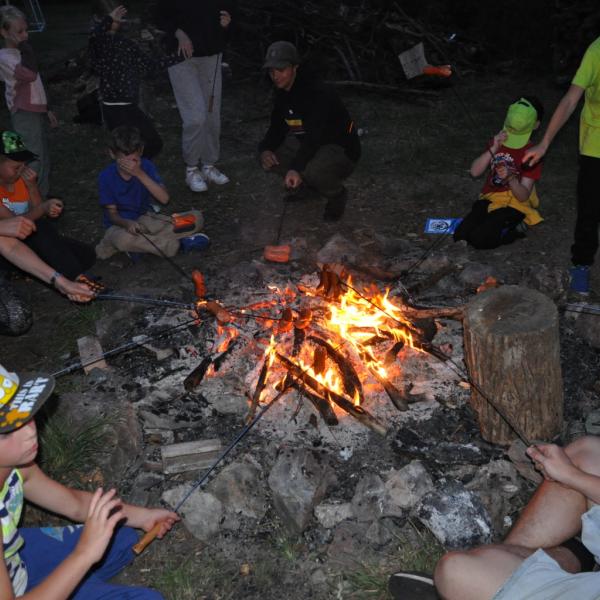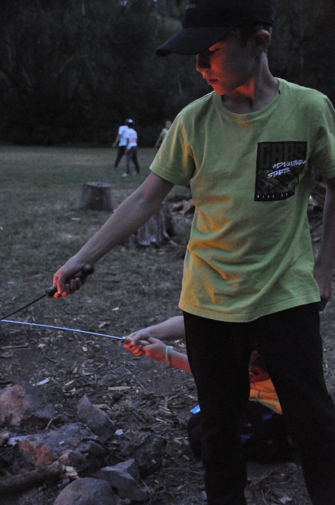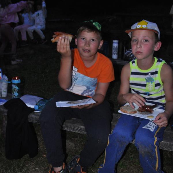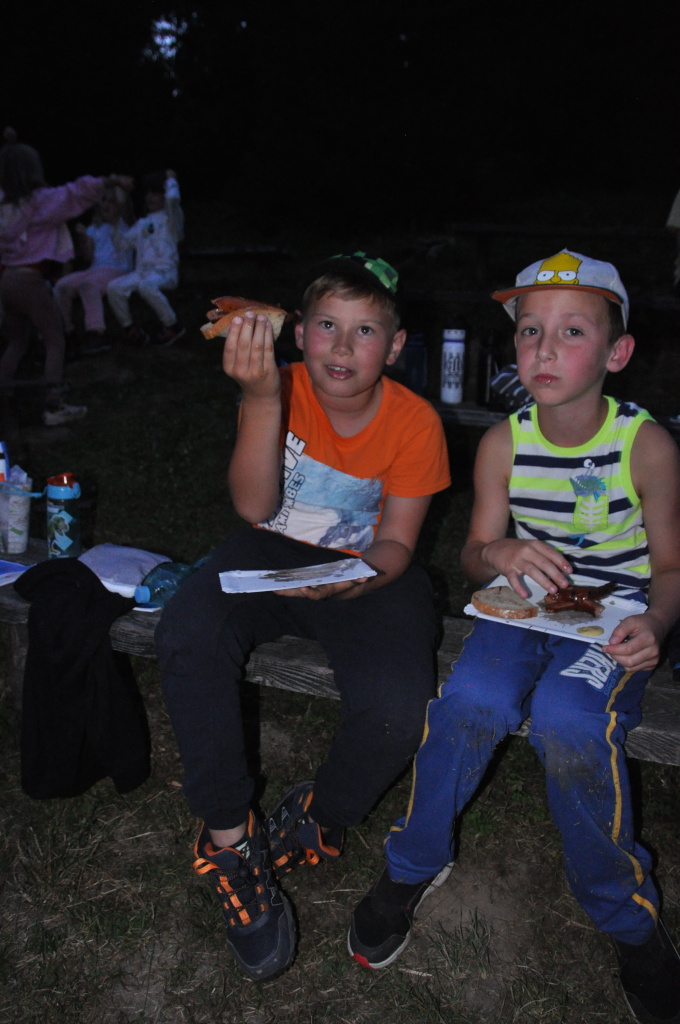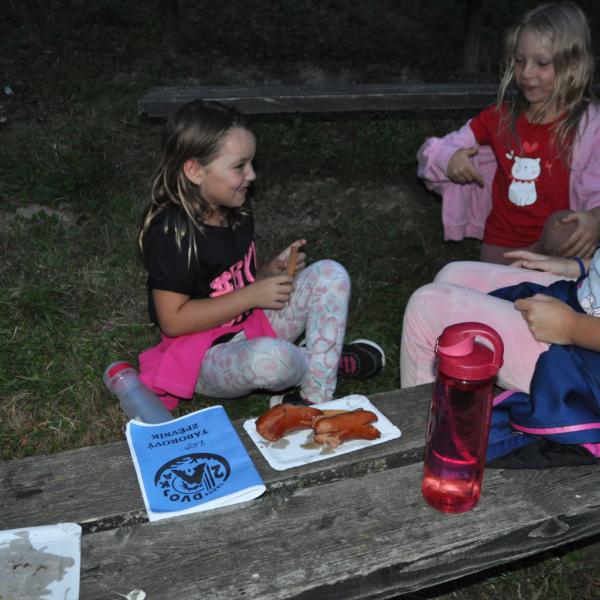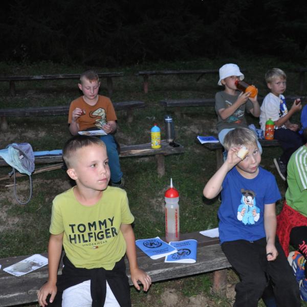Večer pak přišel na řadu špekáček, neboli buřt (...možná je v tom rozdíl, což je však v mém případě pod mou rozlišovací schopnost. Tímto se omlouvám pánům Babicovi a Pohlreichovi). Můžu se jen dohadovat, jak chutnal dětem spícím mimo tábor, ale těm menším, které si buřty opekly přímo v tábořišti, chutnaly velmi (i když na základě pozorování bych se klonil k názoru, že top 1 táboráčkového menu je na klacku opečený chleba s hořčicí).