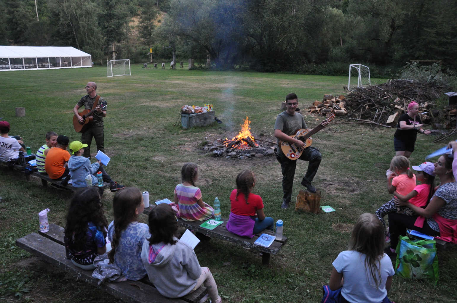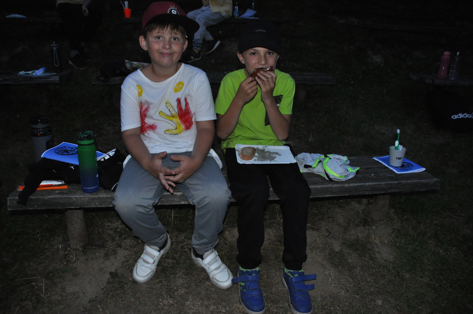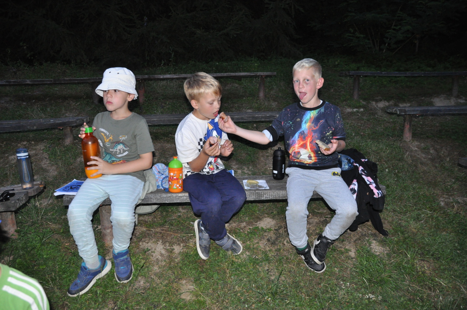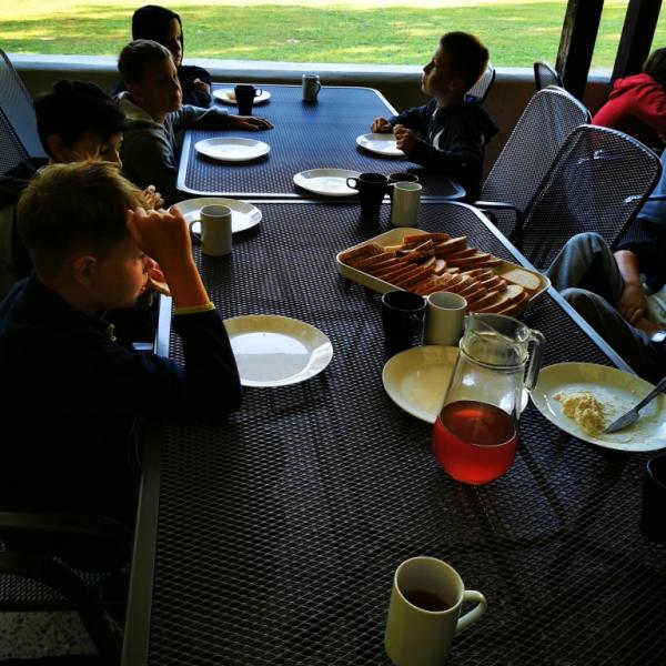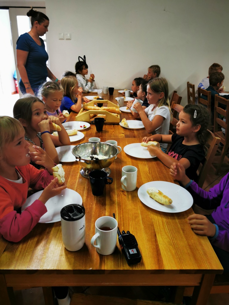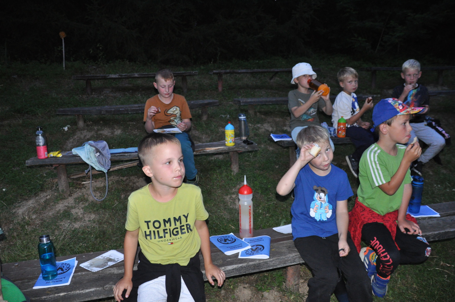 Večer pak přišel na řadu špekáček, neboli buřt (...možná je v tom rozdíl, což je však v mém případě pod mou rozlišovací schopnost. Tímto se omlouvám pánům Babicovi a Pohlreichovi). Můžu se jen dohadovat, jak chutnal dětem spícím mimo tábor, ale těm menším, které si buřty opekly přímo v tábořišti, chutnaly velmi (i když na základě pozorování bych se klonil k názoru, že top 1 táboráčkového menu je na klacku opečený chleba s hořčicí).