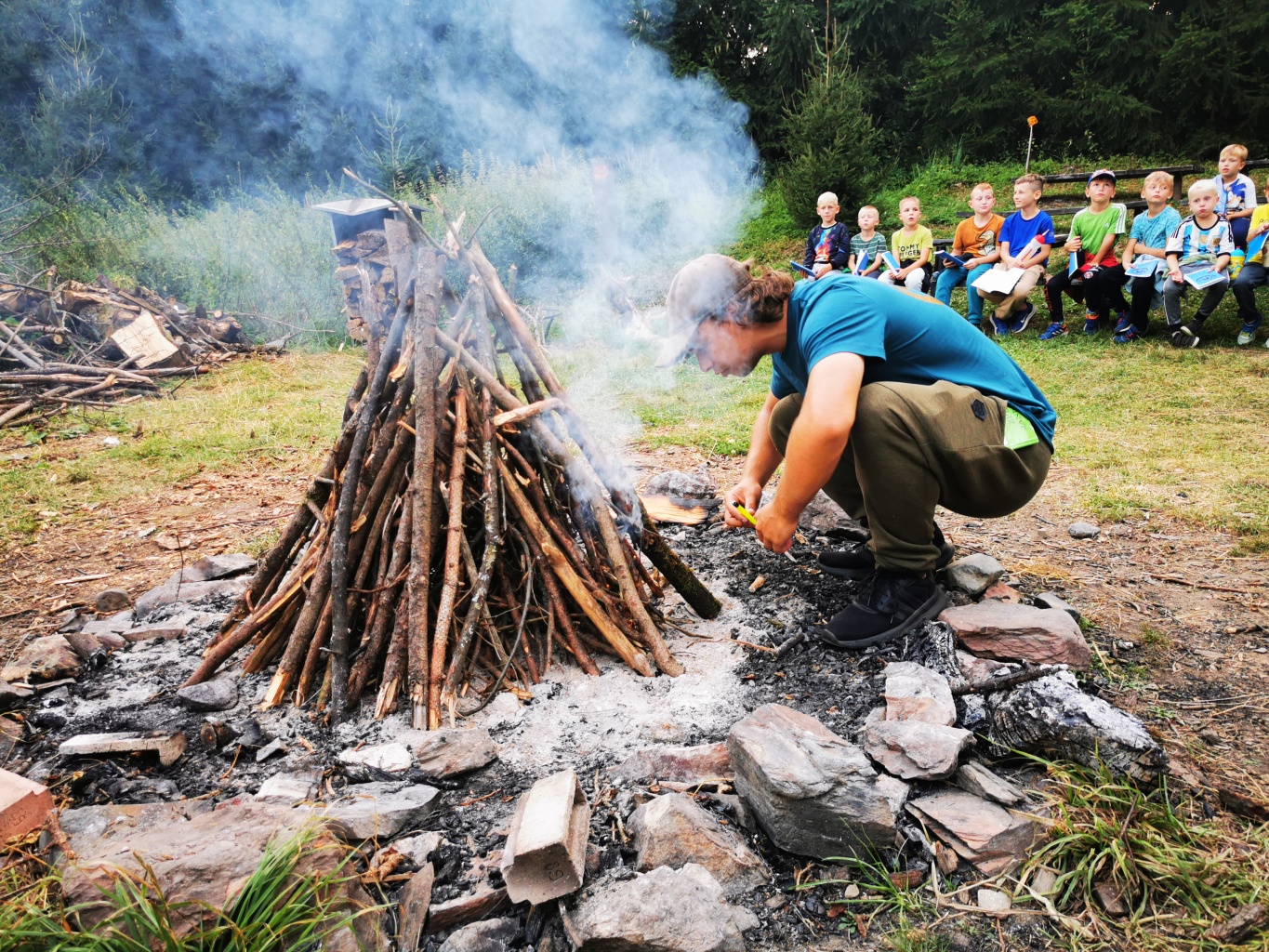 My jsme se raději drželi poněkud při zemi a s lehkostí a úsměvem jsme absolvovali s menšími kamarády dopoledne druhou etapu CETEHu, zatímco starší odešli v průběhu dne bivakovat do lesa. Proto se omlouvám, že v dnešní sadě fotek se moc starších táborníků nenachází. Nechtěli jsme jistou oddílovou intimitu narušovat přítomností tisku, že ano ;) (pozn. redakce - v době publikování tohoto textu byly již všechny děti bezpečně zpět v táboře).
