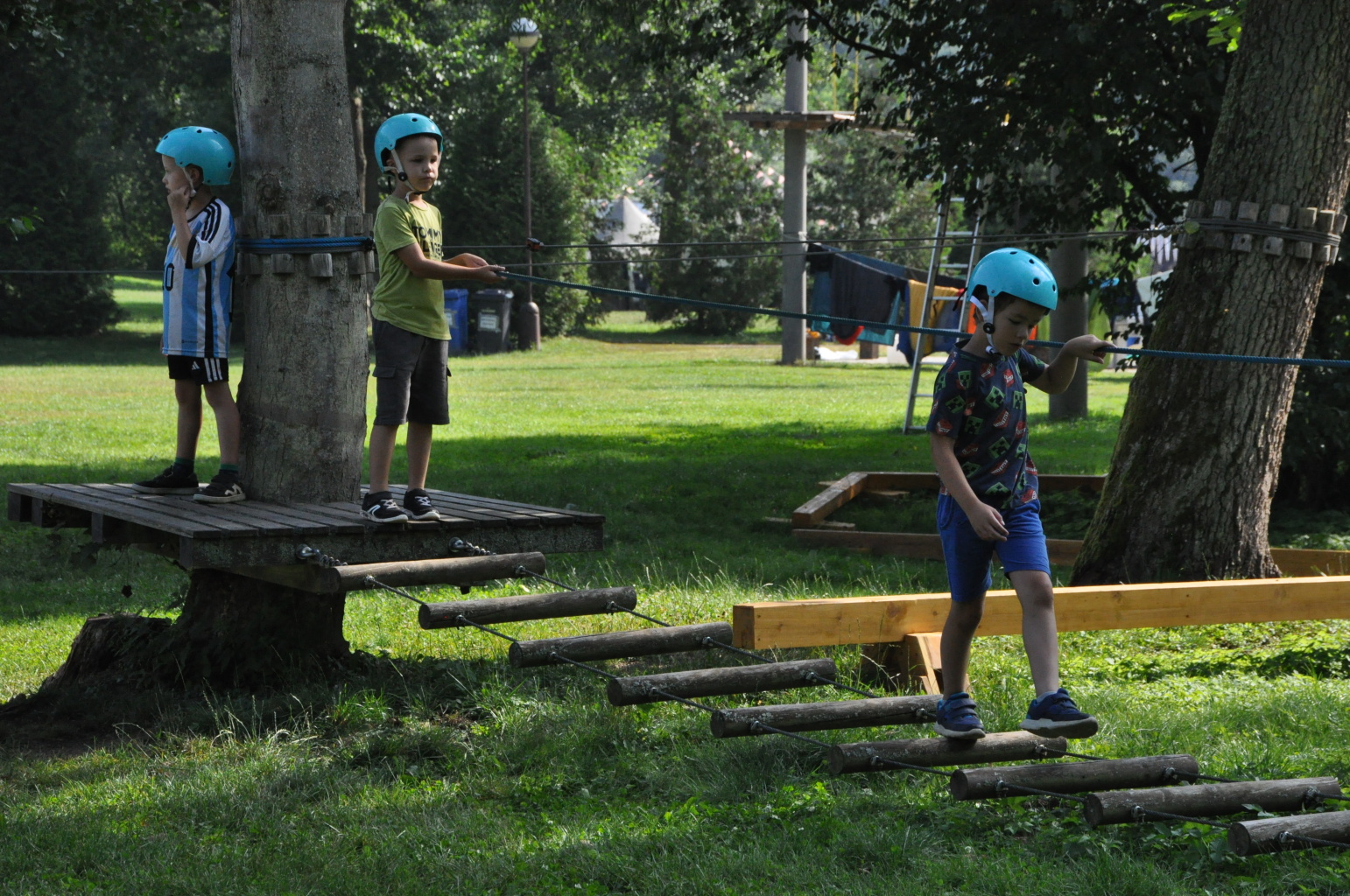 Kamarádi z prvních dvou nejmladších oddílů ráno otestovali malé lanové centrum, velcí se již těší na to velké. Středňáci podnikli nájezd na hrad Krakovec, nicméně ten jejich náporu zdatně odolal a zůstal zachován i pro další generace nepoškozen ;). Odpoledne se odpočatí starší táborníci vrhli do druhé etapy CETEHU, abychom večer zakončili opět letním deštíkem.