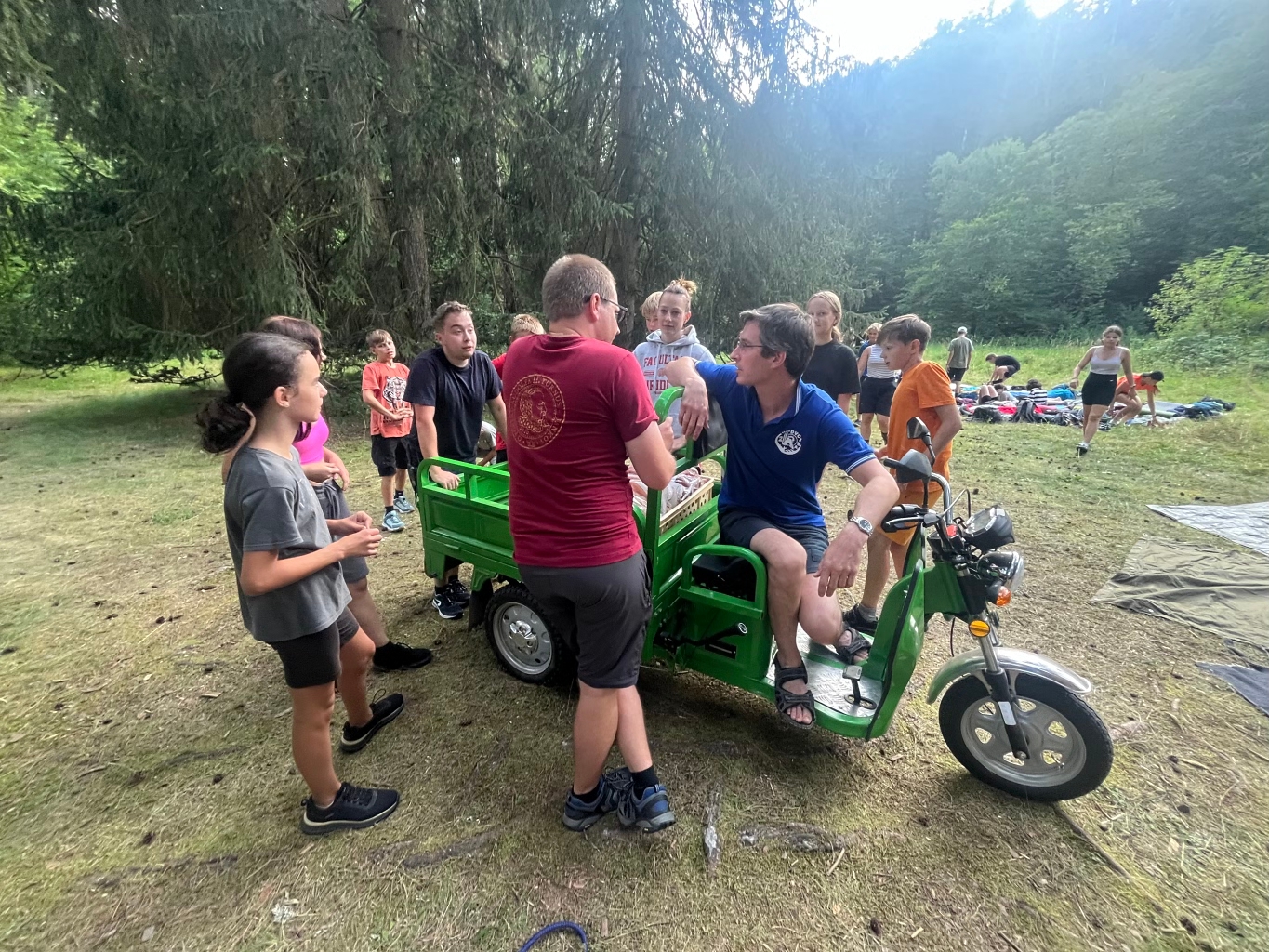 čtvrtek byl z pohledu programu takový zvláštní, dá se říci roztříštěný. Ptáte-li se, čím to, tak odpověď je jednoduchá - únava. Přespání v lese si vybralo svou daň, jak se tak knižně říká. Děti jsou jednak nezvyklé chrupka pod širou oblohou, ke kvalitě jejich spánku nepřispěly ani překvapivé deště spojené s nočním návratem do tábora (nemělo valného významu nechat děti zmoknout). Tak jsem si řekli, že pár hodin spánku navíc a naprosto pohodové odpoledne všichni jen uvítají. Děti byly z přespání nadšené trochu té noční nepohody vzaly jako bezvadný táborový zážitek.