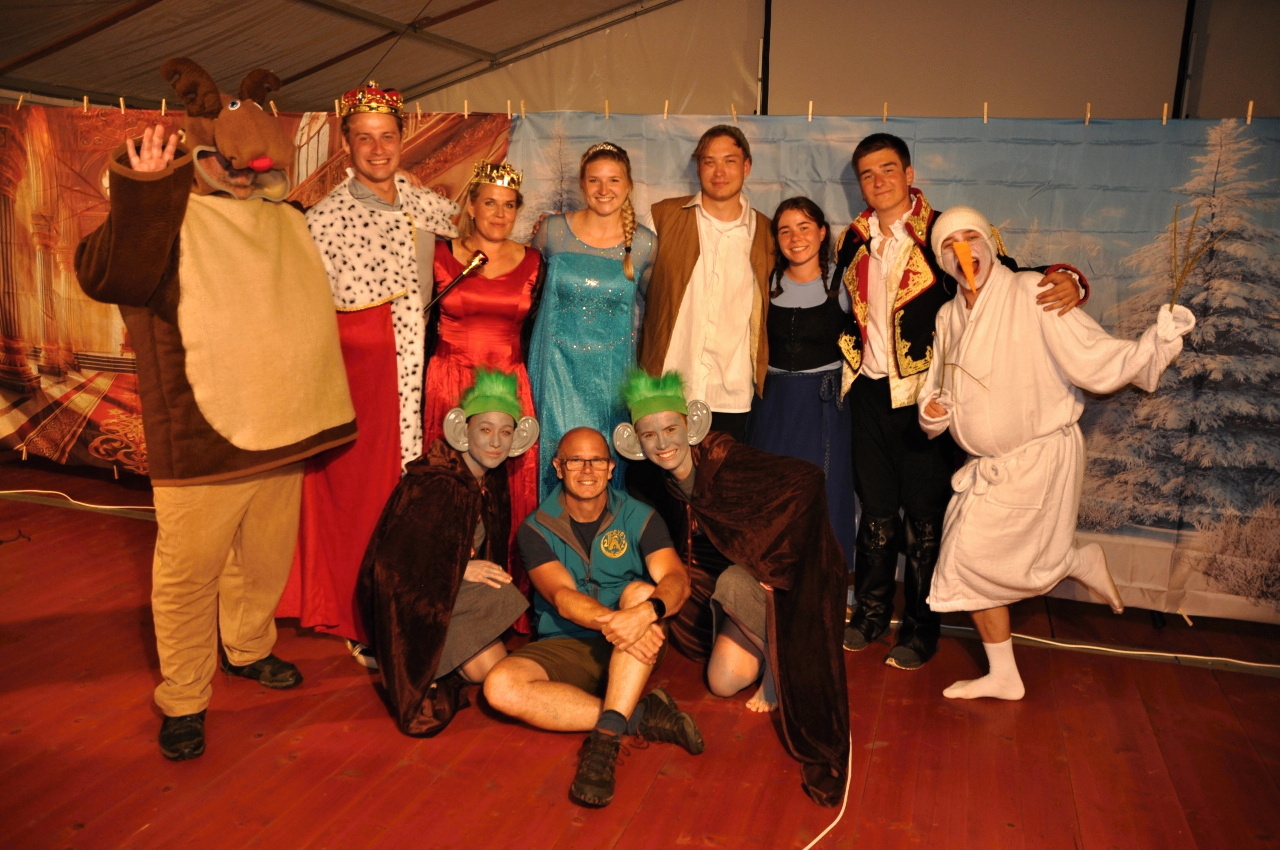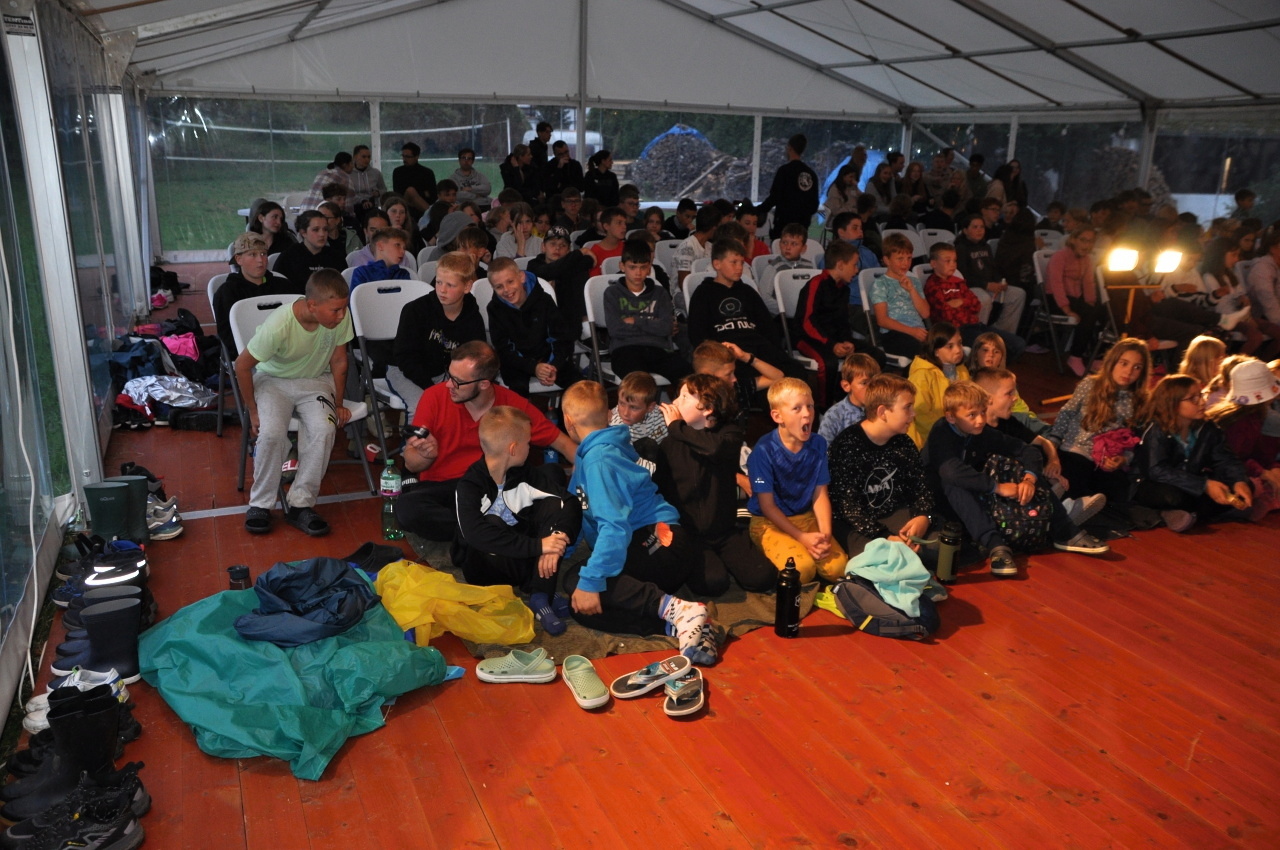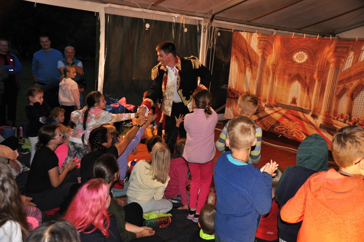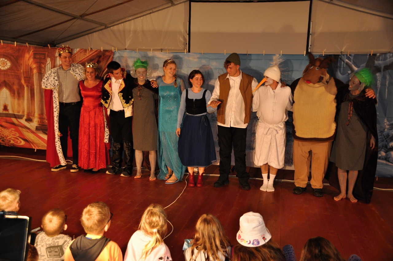 V soboru jsme z pestrého koláče aktivit, které chceme na táboře ochutnat, ukousli pořádné sousto. Jako hlavní chod byl samozřejmě CETEH a jeho třetí etapa (z důvodů deště částečně přeložena na neděli). Protože nás Abadon opět poctil svou deštivou přítomností, pokračoval chvíli program ve stanu a také se promítalo. Následovalo lanové centrum pro větší kluky a jako zákusek se servírovalo večerní divadlo s pohádkou Ledové království. Účinkujícím se hra fantasticky povedla a sklidili dlouhý a upřímný aplaus. Však mrkněte na fotky tady dole.