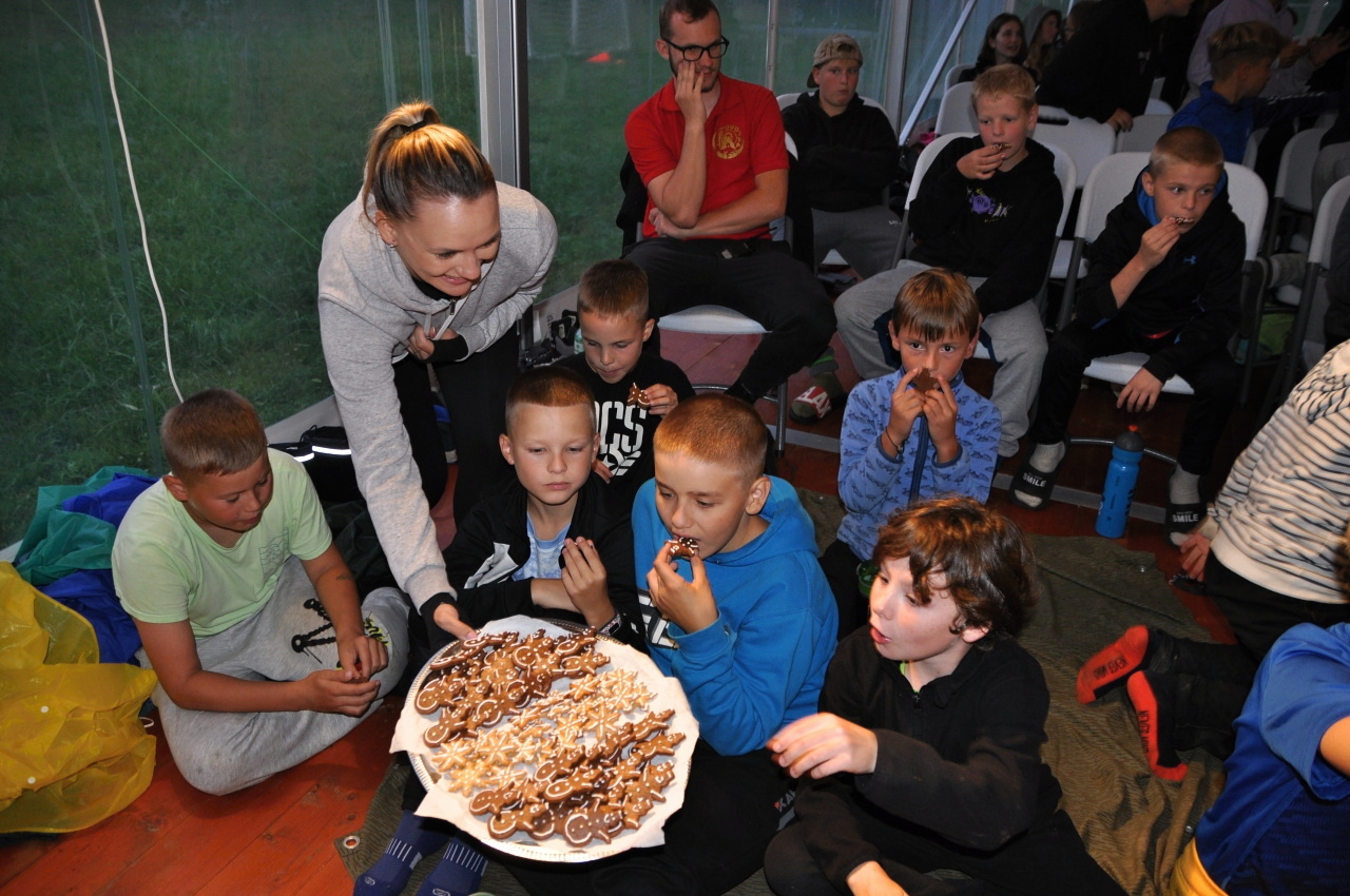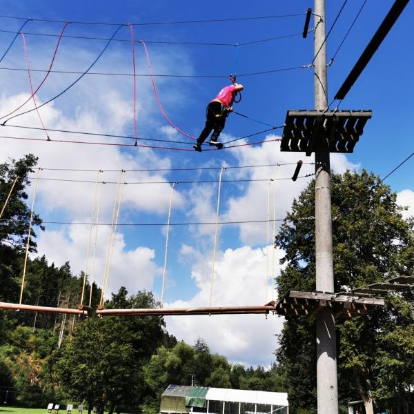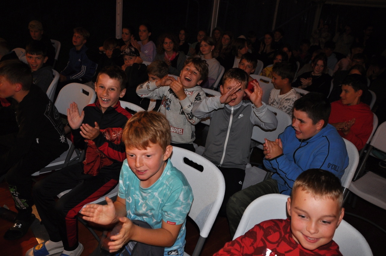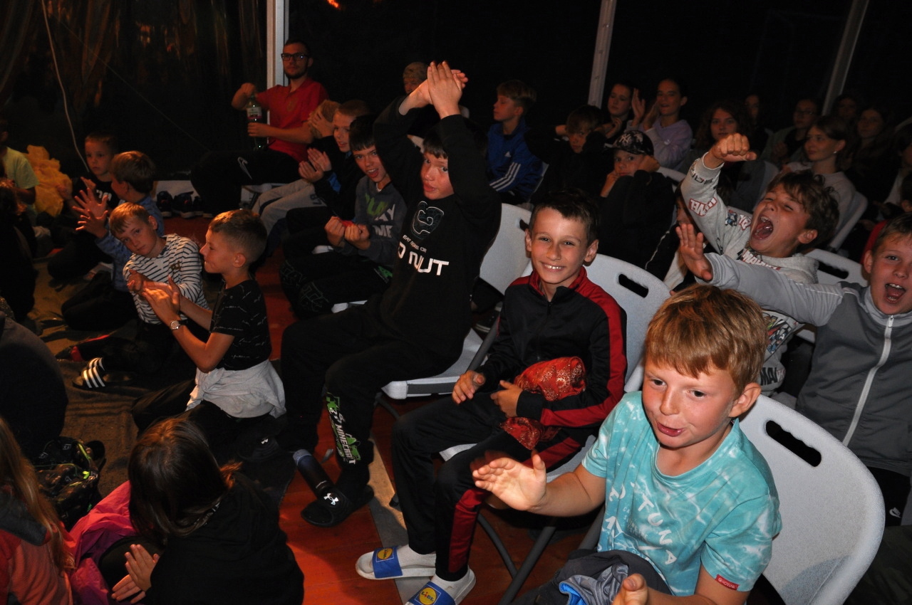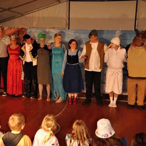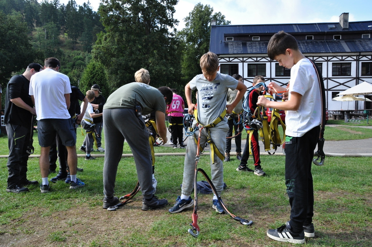 V soboru jsme z pestrého koláče aktivit, které chceme na táboře ochutnat, ukousli pořádné sousto. Jako hlavní chod byl samozřejmě CETEH a jeho třetí etapa (z důvodů deště částečně přeložena na neděli). Protože nás Abadon opět poctil svou deštivou přítomností, pokračoval chvíli program ve stanu a také se promítalo. Následovalo lanové centrum pro větší kluky a jako zákusek se servírovalo večerní divadlo s pohádkou Ledové království. Účinkujícím se hra fantasticky povedla a sklidili dlouhý a upřímný aplaus. Však mrkněte na fotky tady dole.