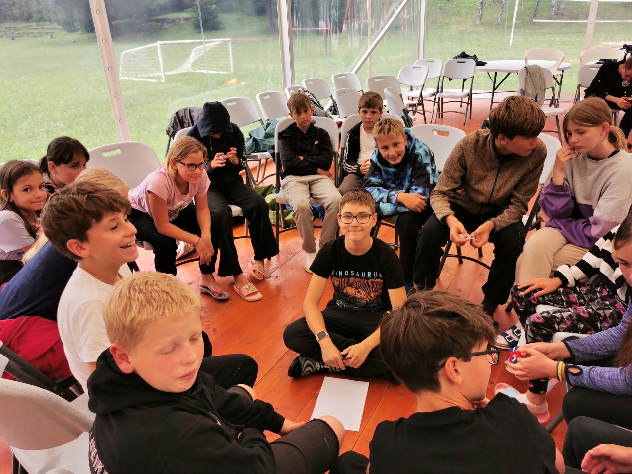 Když už jsem zmínil počasí - tady jsme trochu optimističtí. Podle všeho by se měl Abadon konečně umoudřit a měl by nás koncem týdne nechat se i vykoupat v bazénu. A mírně podprůměrné teploty mají i pozitiva. Za celý tábor jsme zatím neviděli jedinou vosu, neměli jsme jediný úpal, úžeh, klíšťat je pomálu, a tak bych mohl pokračovat. Vždycky je dobré vidět i tu světlou stránku věci. A prosím, nemějte strach, že by tu snad pršelo vkuse. Ona je to vždy spíše přeháňka, která kolikrát dorazí, i když všechny aplikace ukazují, že pršet nebude. Co je důležité, všechny děti jsou v suchu a v teple, nikdo nestrádá, případné mokré boty sušíme na k tomu určeném profi sušáku, takže bez obav ;).