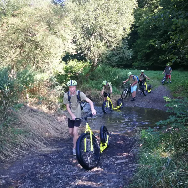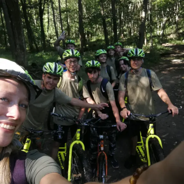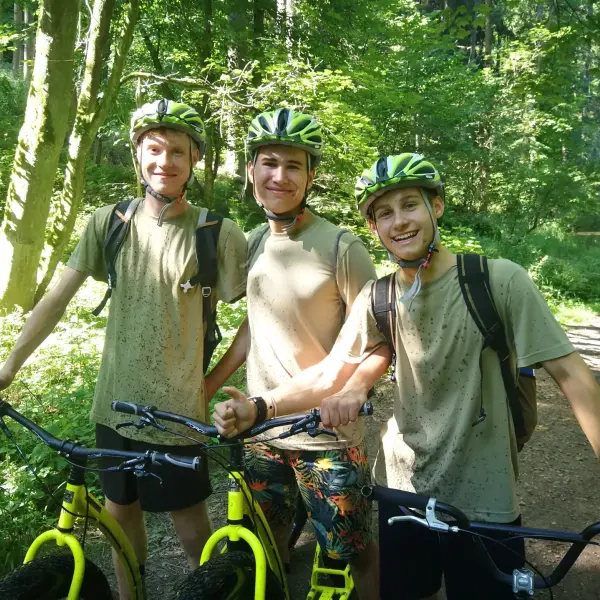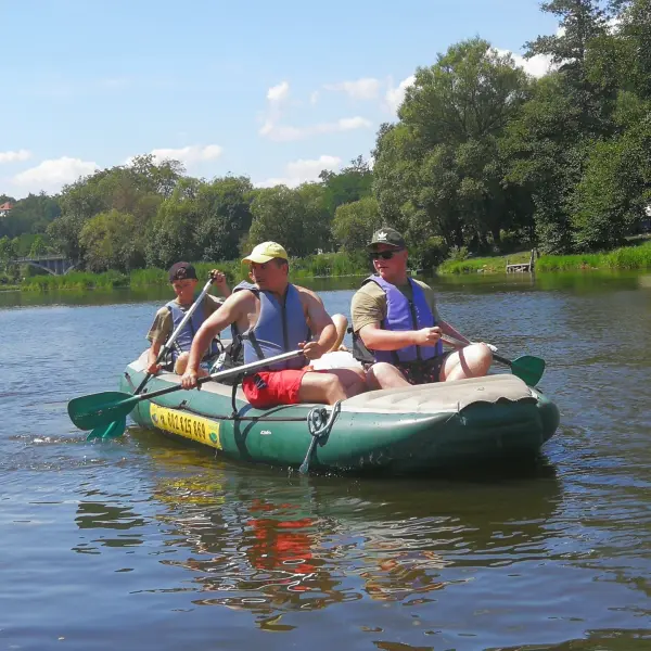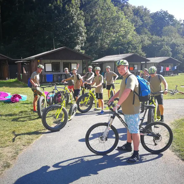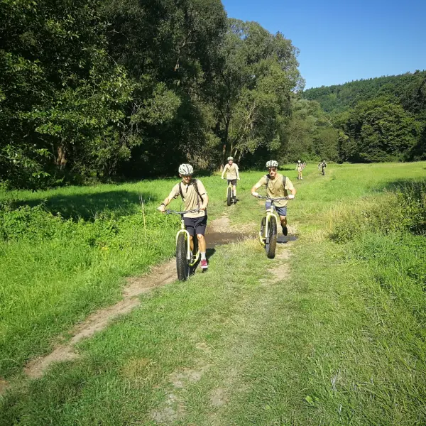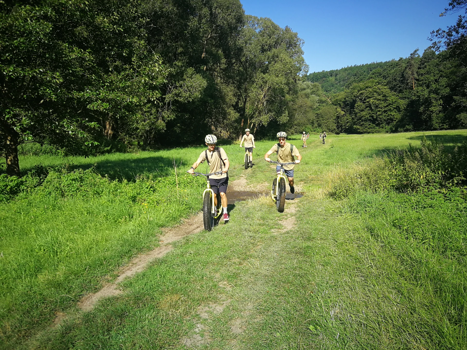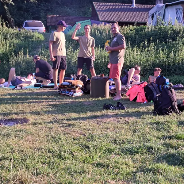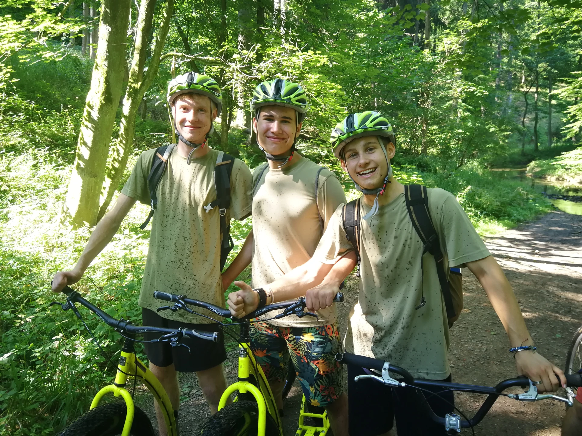 Juniorská parta vyrazila včera po snídani na terénních koloběžkách krásnými úvozy křivoklátské CHKO až do údolí Berounky – do Zvíkovce. Zde na ně už čekaly rafty a přibližně 8 km dlouhá, pohodová plavba po řece. Ve vyhlášeném kempu Ahoj! pak u táboráku zavzpomínali na dětská léta a došlo jistě i na plány do budoucna a vyhlídky na pozice praktikantů DVOJKY.