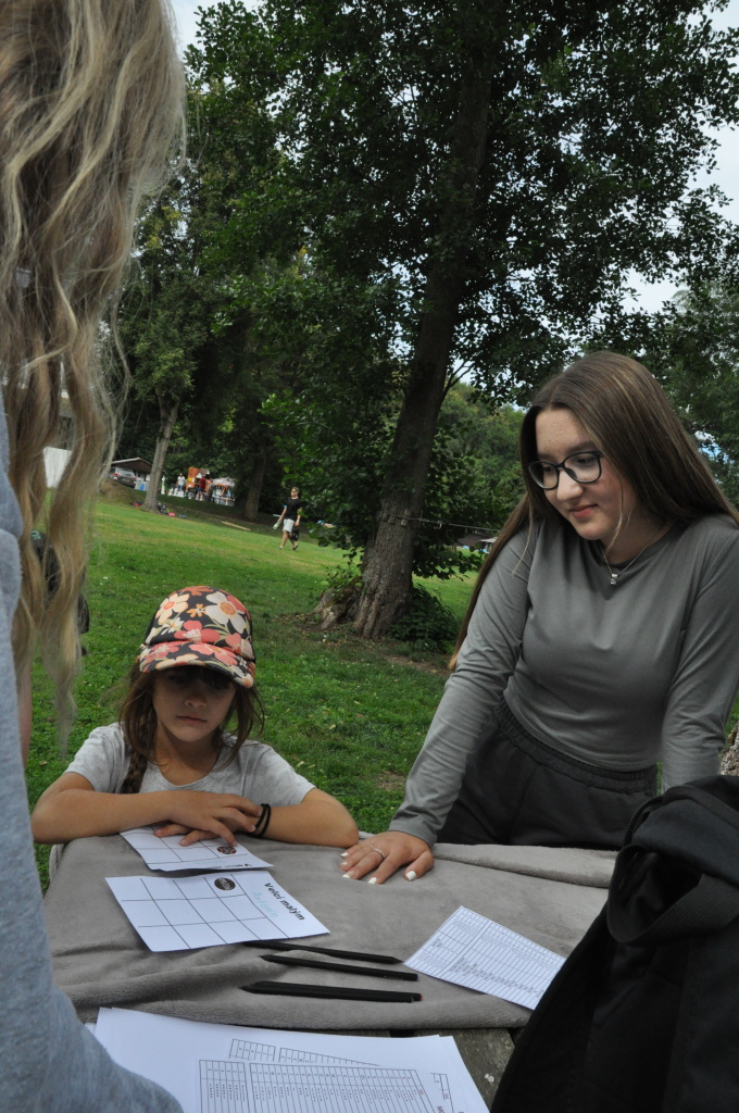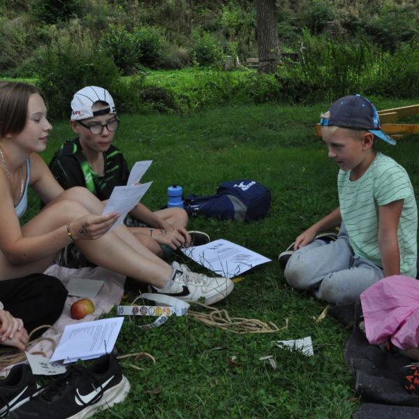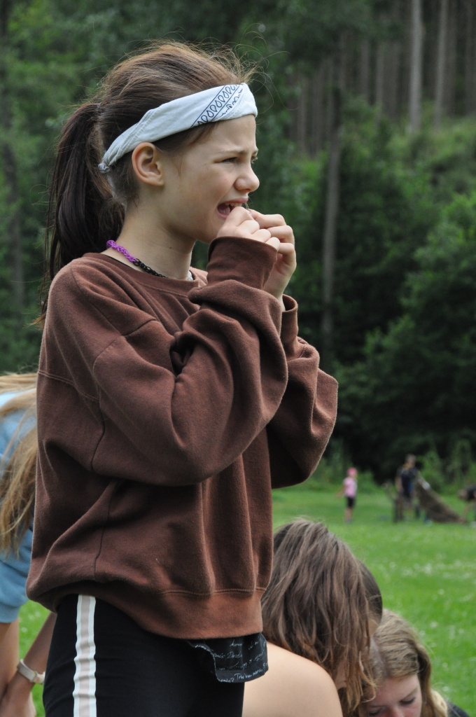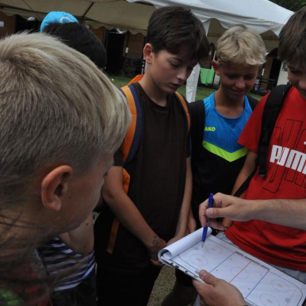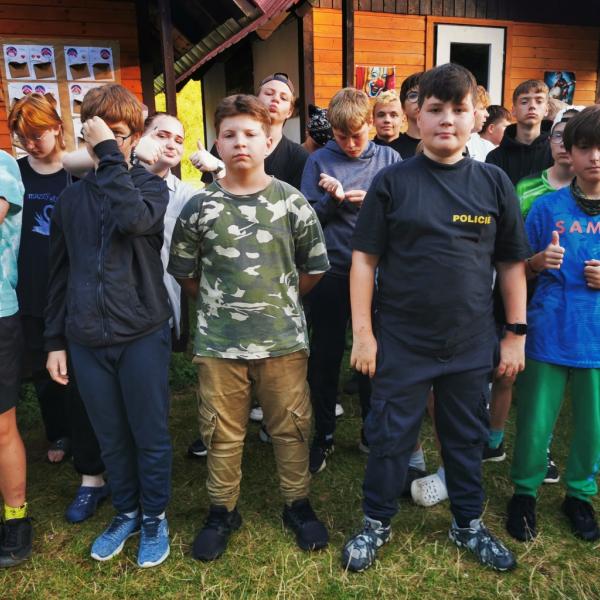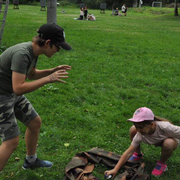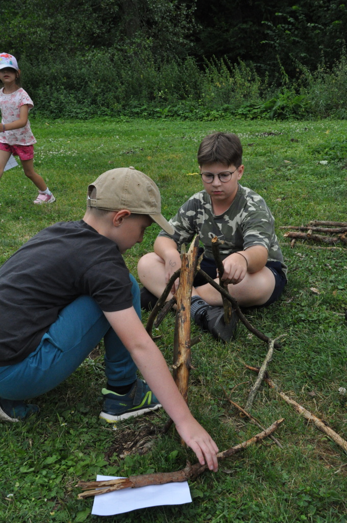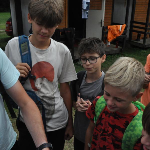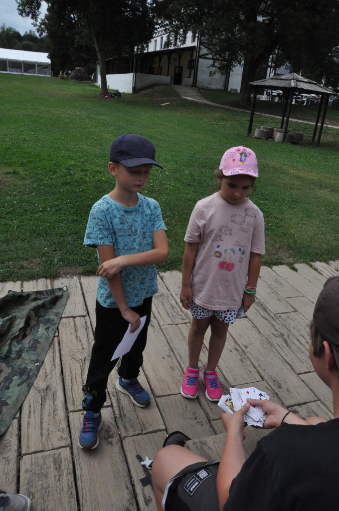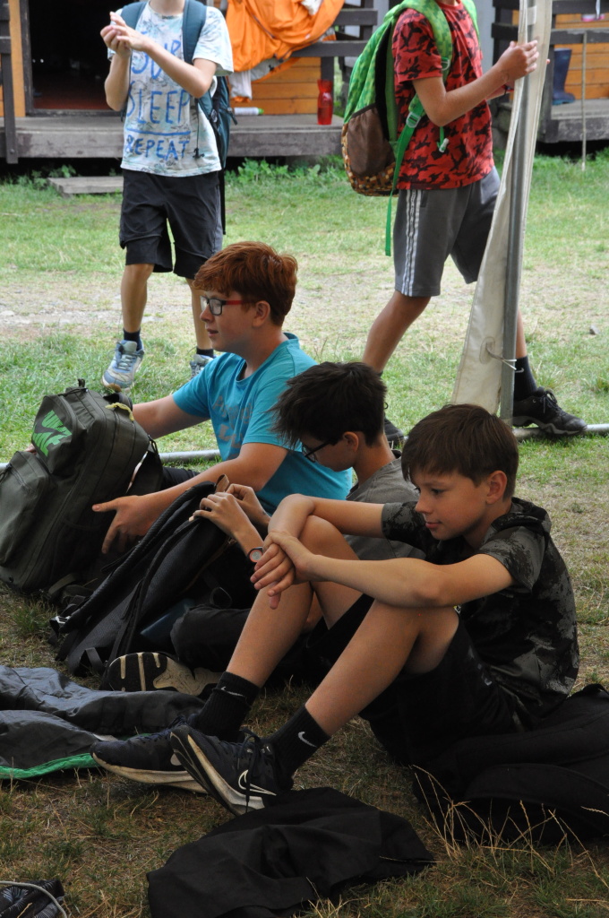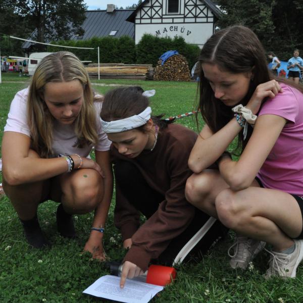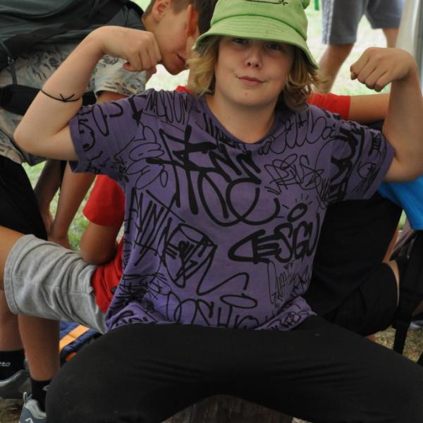 Odpoledne si pak vzaly do své režie nejstarší dva oddíly, které přichystaly moc pěkný program pro nejmenší dva oddíly. Nejmladší kluci a holky měli přichystaná stanoviště, na kterých se jim hoši a děvčata z devítky a desítky věnovali, hráli si s nimi, učili je tábornické dovednosti, stavět ohně, uzlovat apod. Zbytek tábora si pak užíval jednu z posledních možností zahrát si nějaké hry v oddílech. Poslední část tábora, která se nezadržitelně blíží, je totiž zaměřená spíše na táborové dominanty, Ty oddíly, které se cítily být při síle, nazuly toulavé boty a ušlápnout pár kilásků do přírody. Junioři si vzali za cíl návštěvu civilizace a navštívili nedalekou obec Chříč. Ano, je to ta, kam nám od vás chodí pošta. Možnost koupit s v krámku něco na zub byla patrně nejen velkou motivací, ale i náplastí na ušlé kilometry.