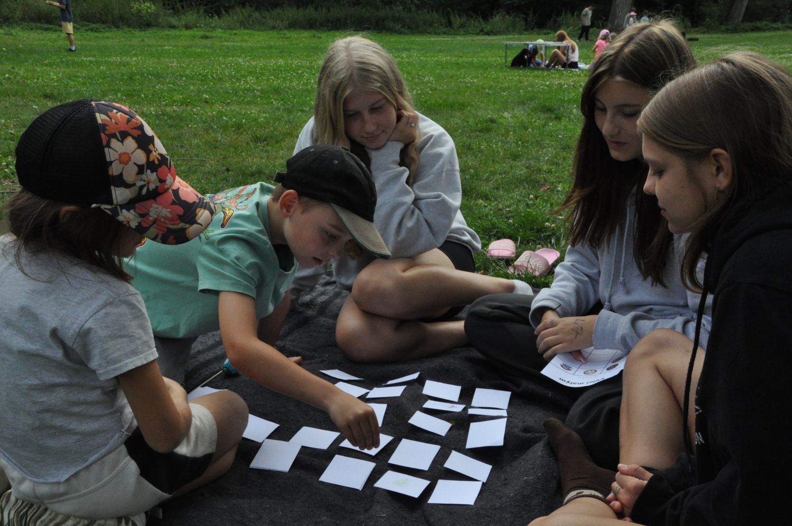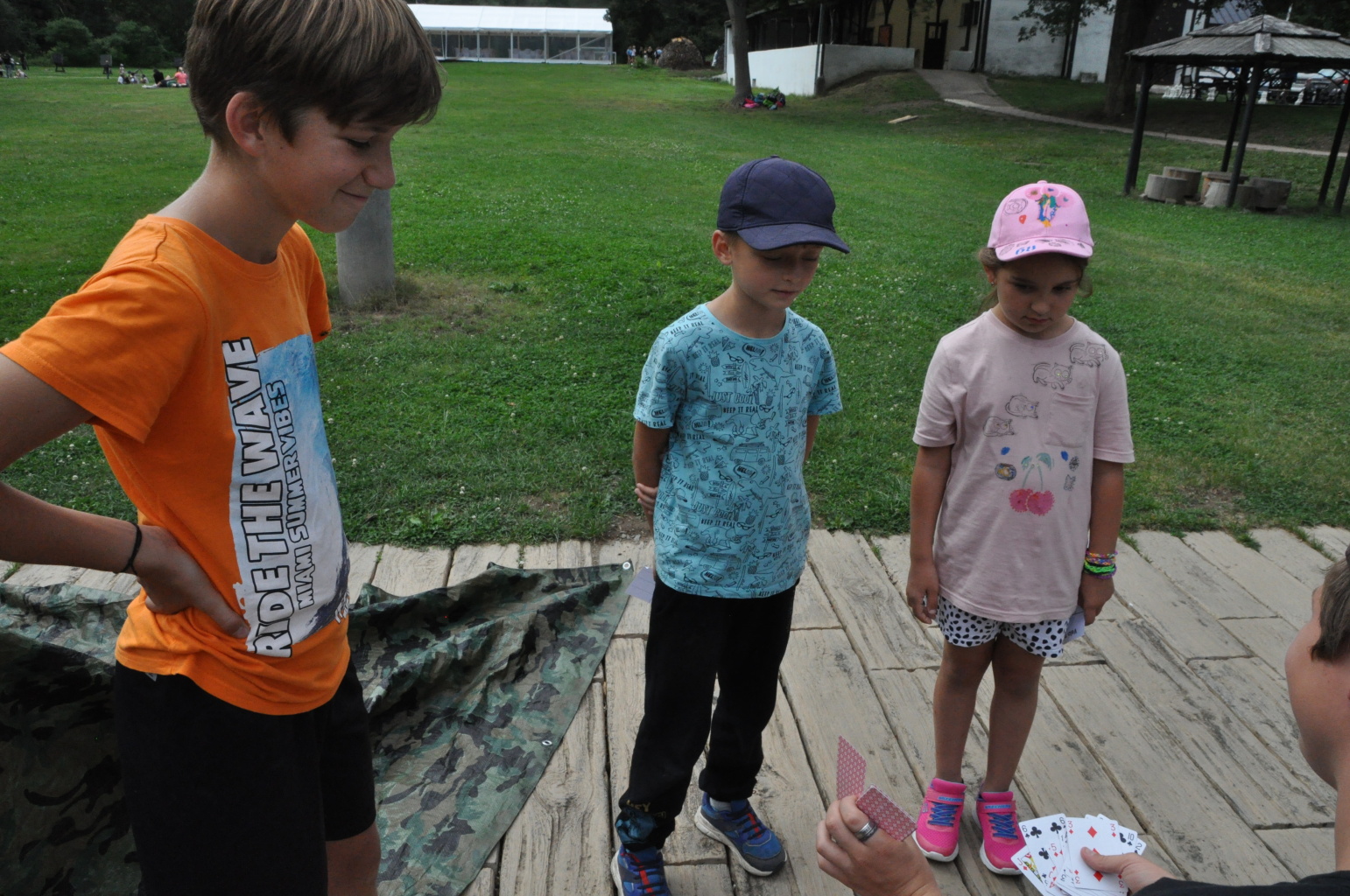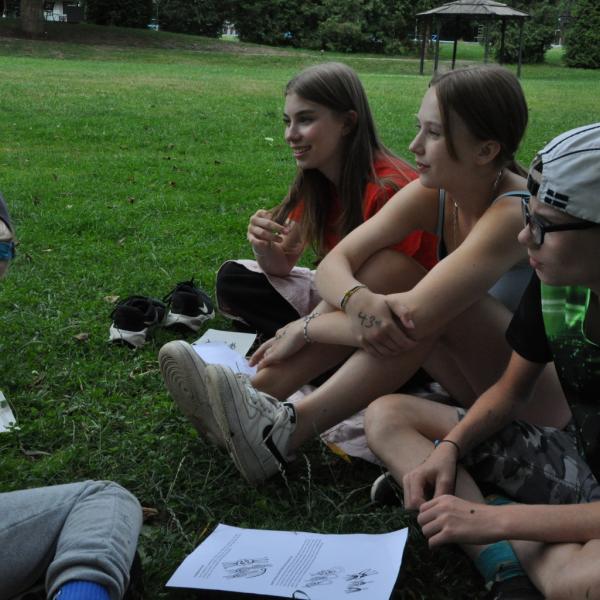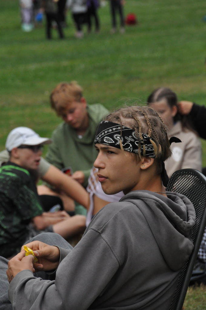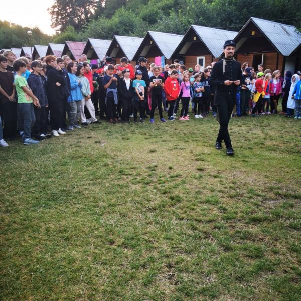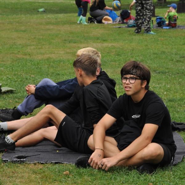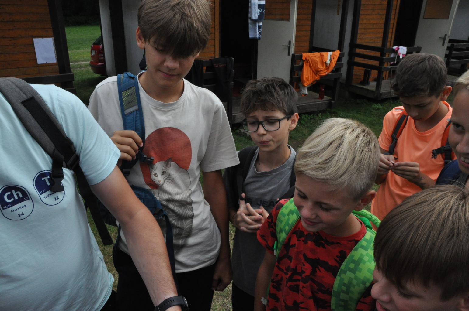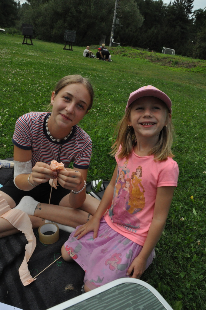 Odpoledne si pak vzaly do své režie nejstarší dva oddíly, které přichystaly moc pěkný program pro nejmenší dva oddíly. Nejmladší kluci a holky měli přichystaná stanoviště, na kterých se jim hoši a děvčata z devítky a desítky věnovali, hráli si s nimi, učili je tábornické dovednosti, stavět ohně, uzlovat apod. Zbytek tábora si pak užíval jednu z posledních možností zahrát si nějaké hry v oddílech. Poslední část tábora, která se nezadržitelně blíží, je totiž zaměřená spíše na táborové dominanty, Ty oddíly, které se cítily být při síle, nazuly toulavé boty a ušlápnout pár kilásků do přírody. Junioři si vzali za cíl návštěvu civilizace a navštívili nedalekou obec Chříč. Ano, je to ta, kam nám od vás chodí pošta. Možnost koupit s v krámku něco na zub byla patrně nejen velkou motivací, ale i náplastí na ušlé kilometry.