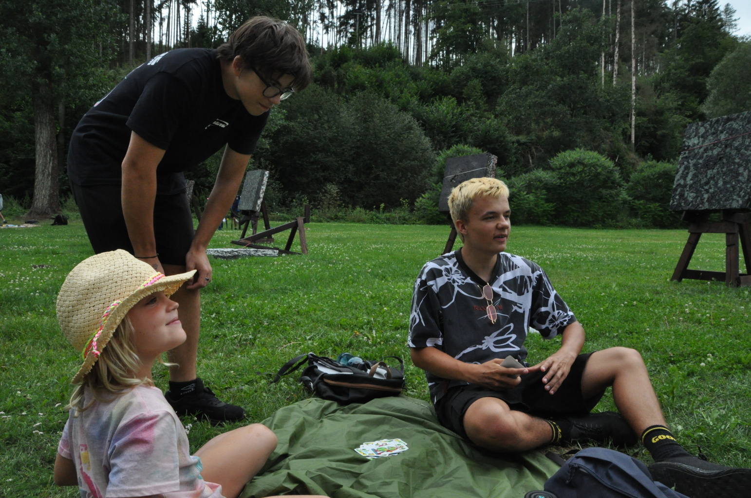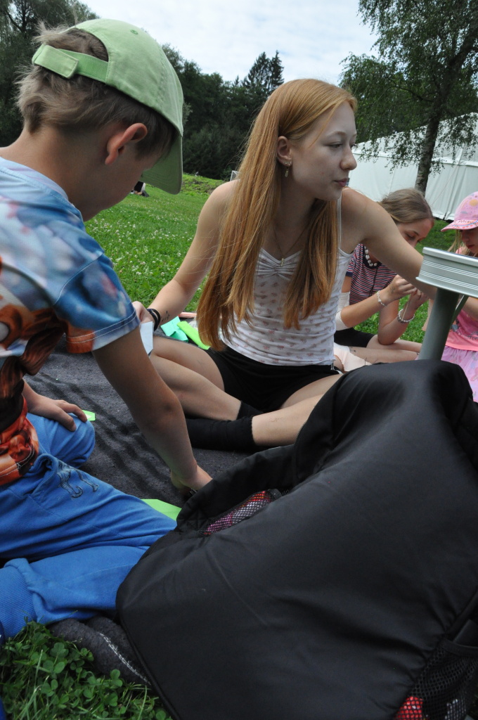 Pondělní ráno bylo takové...pozvolné. Po noční hře, která se týkala všech táborníků od 3. oddílu po juniory, jsme nechali všechny děti dosyta vyspat. Bylo potřeba dobít baterky, a to nejen ty dětské ;). Přiznám se, že z dopoledne nemám moc fotek - akce bylo pomálu, takže o pěkné záběry byla jaksi nouze....