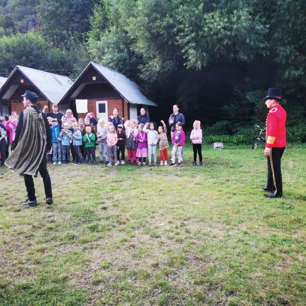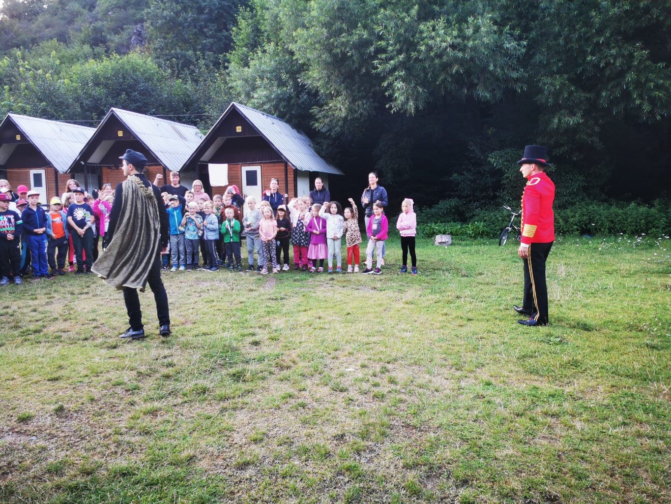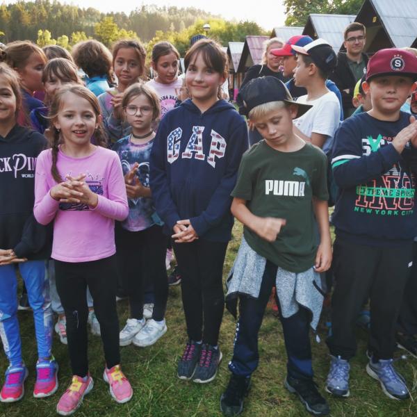 Večer jsme vlastně navázali na ráno a pokračovali jsme v klidnějším programu. Využili jsme manéže a zorganizovali pro nejmenší letní kino. Nechyběla limča a popkorn ;). Velcí měli totéž, ale v amfiteátru. Ani tady nechyběly různé pochutiny. Dětem se to asi líbilo, protože říkaly, že to byl "slušnej chill", což jsem pochopil, že v řeči mého kmene znamená "moc se mi to líbilo" ;).