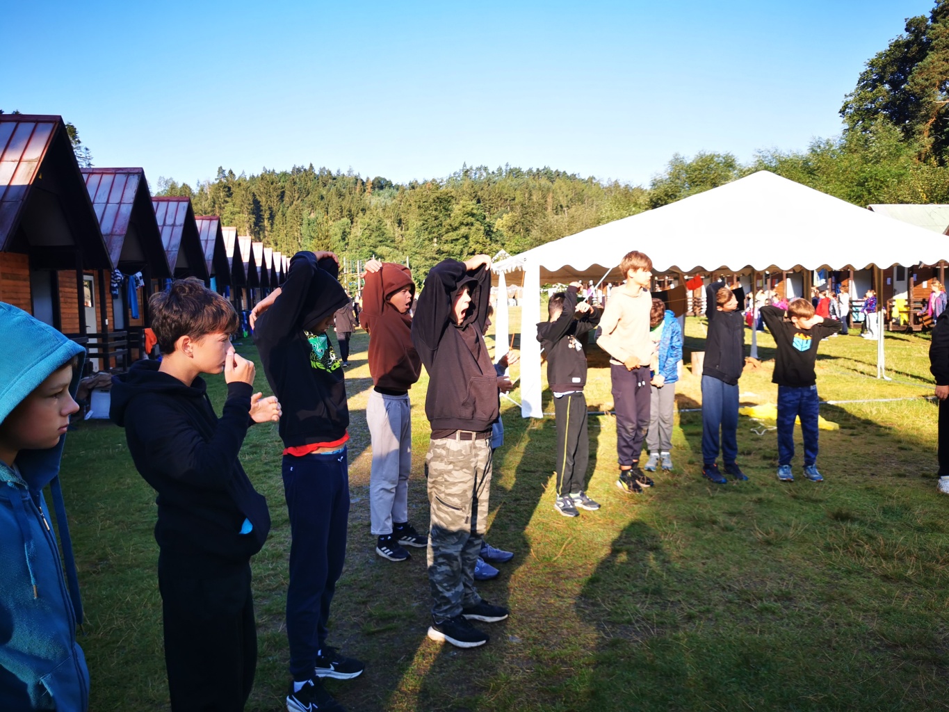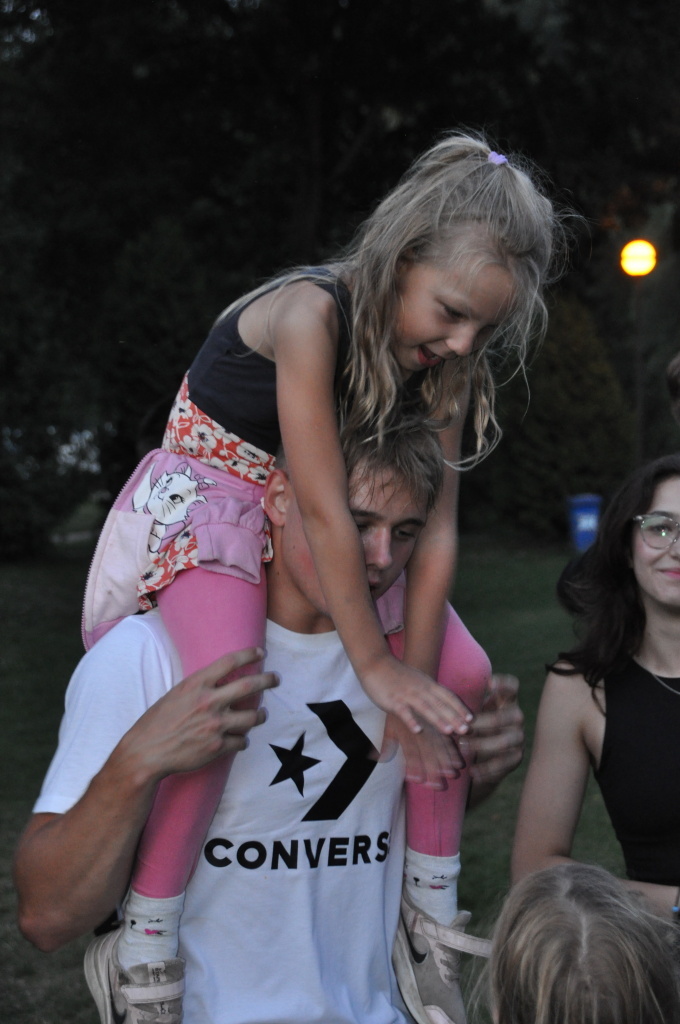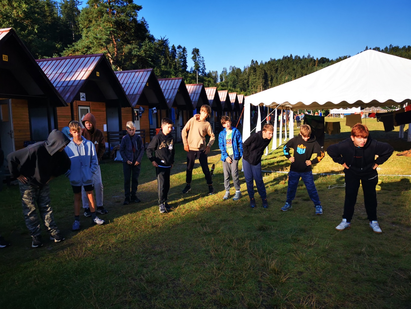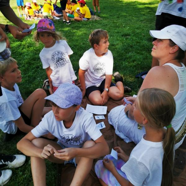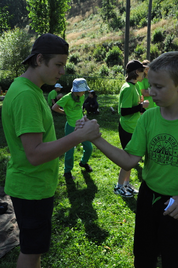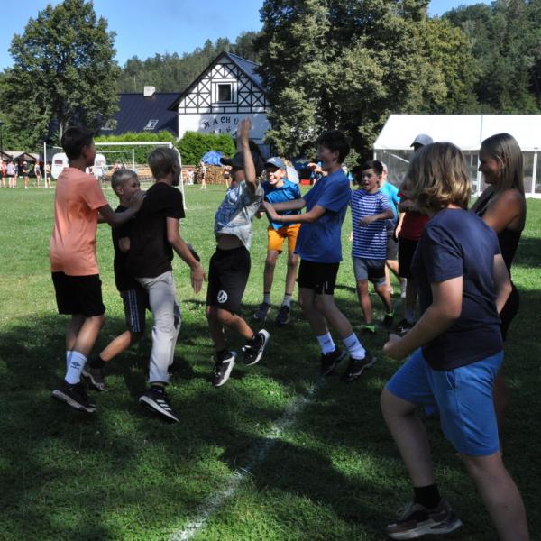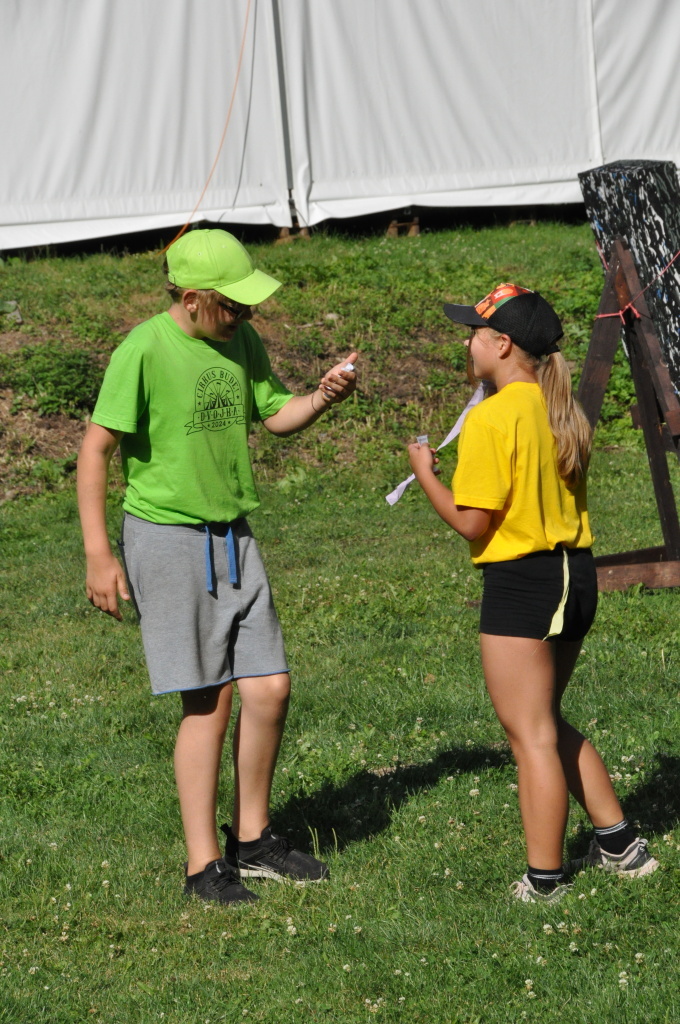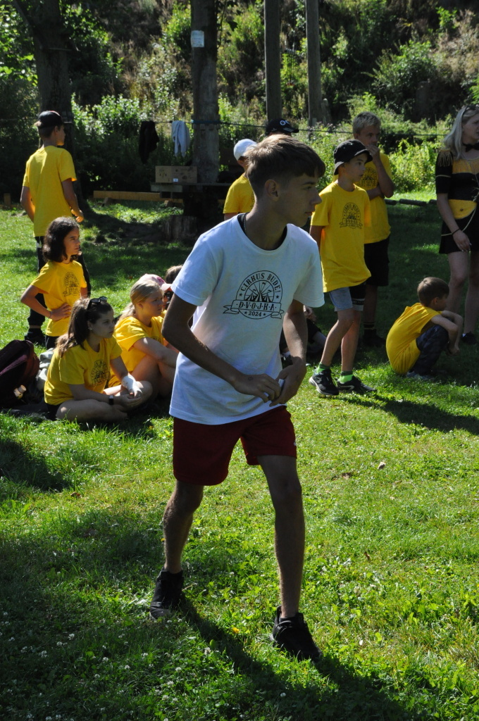 No a večer? Večer jsme samozřejmě zahájili táborové olympijské hry a večer zakončili diskotékou. Ve středu nás čeká celodenní sportovní klání a večer pak vyhodnocení a dekorování těch nejlepších sportovců a jejich výkonů.