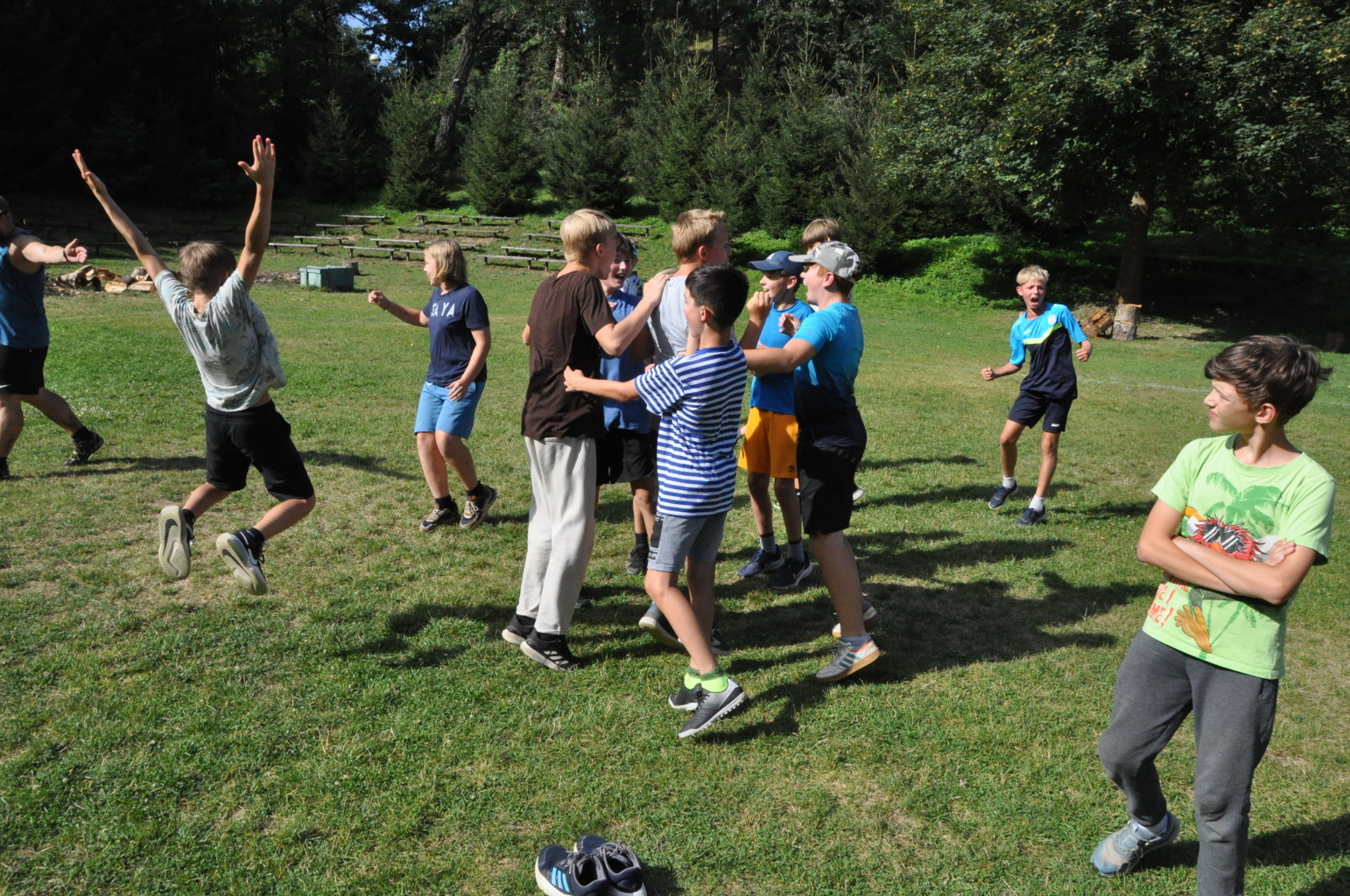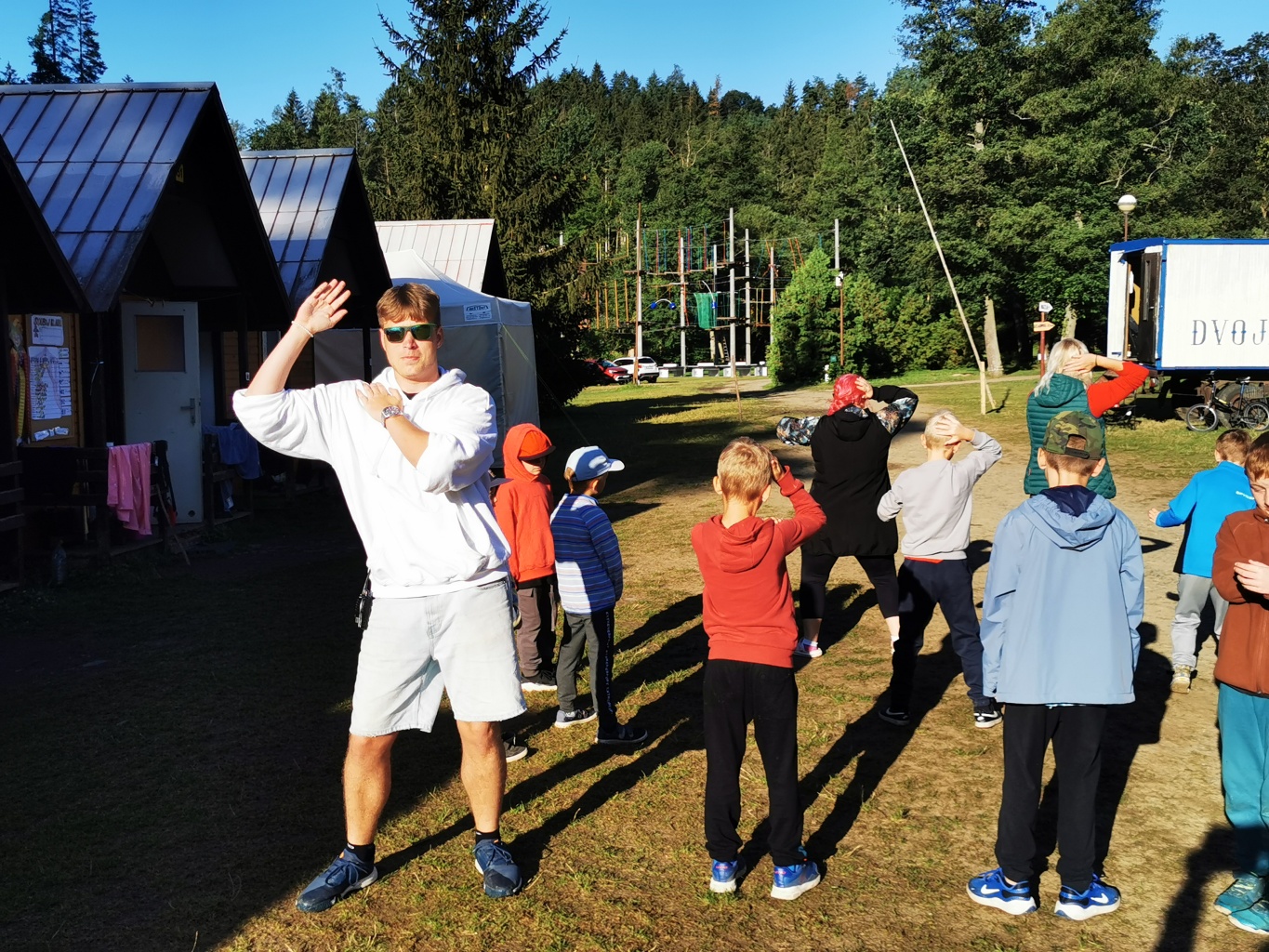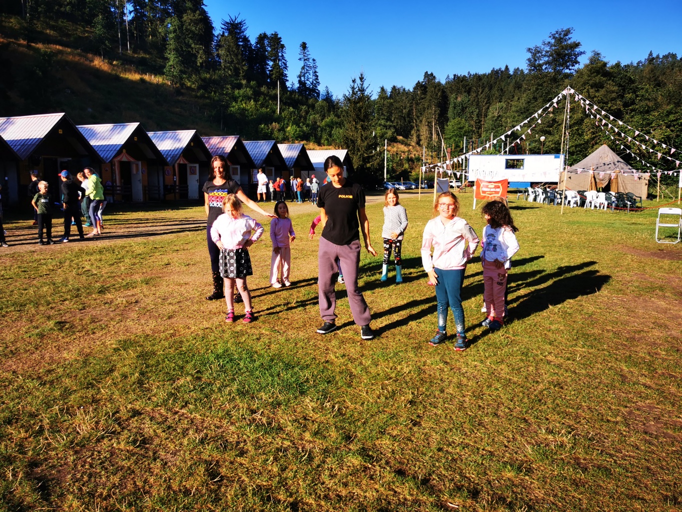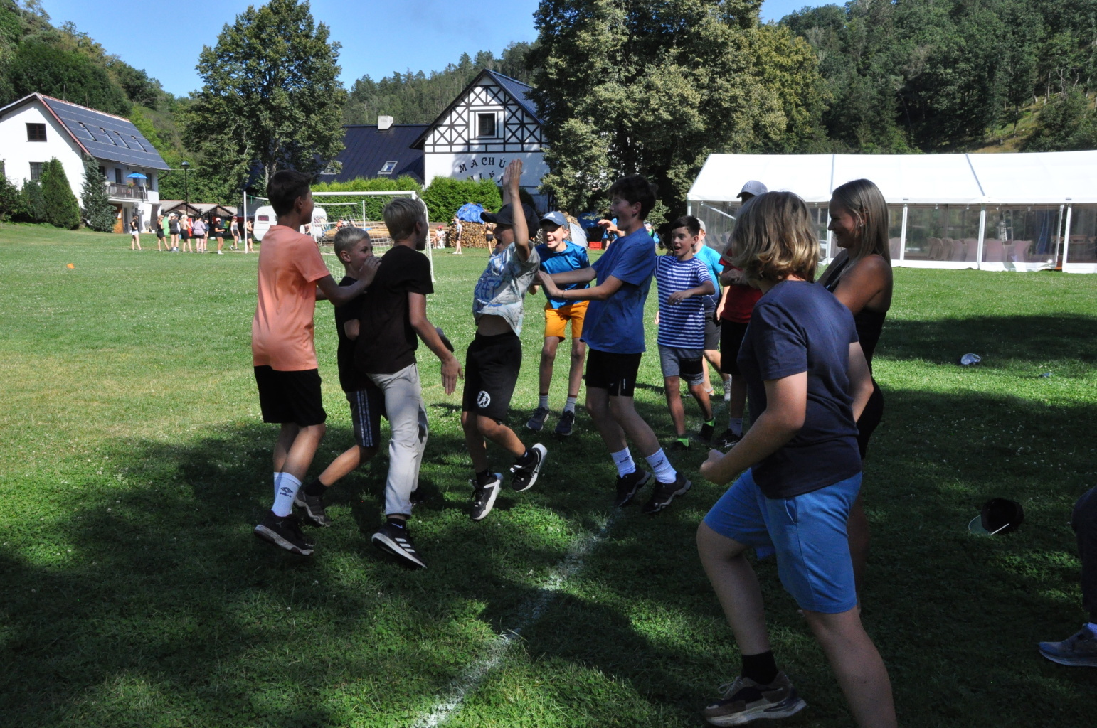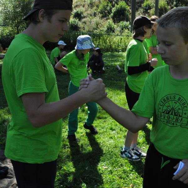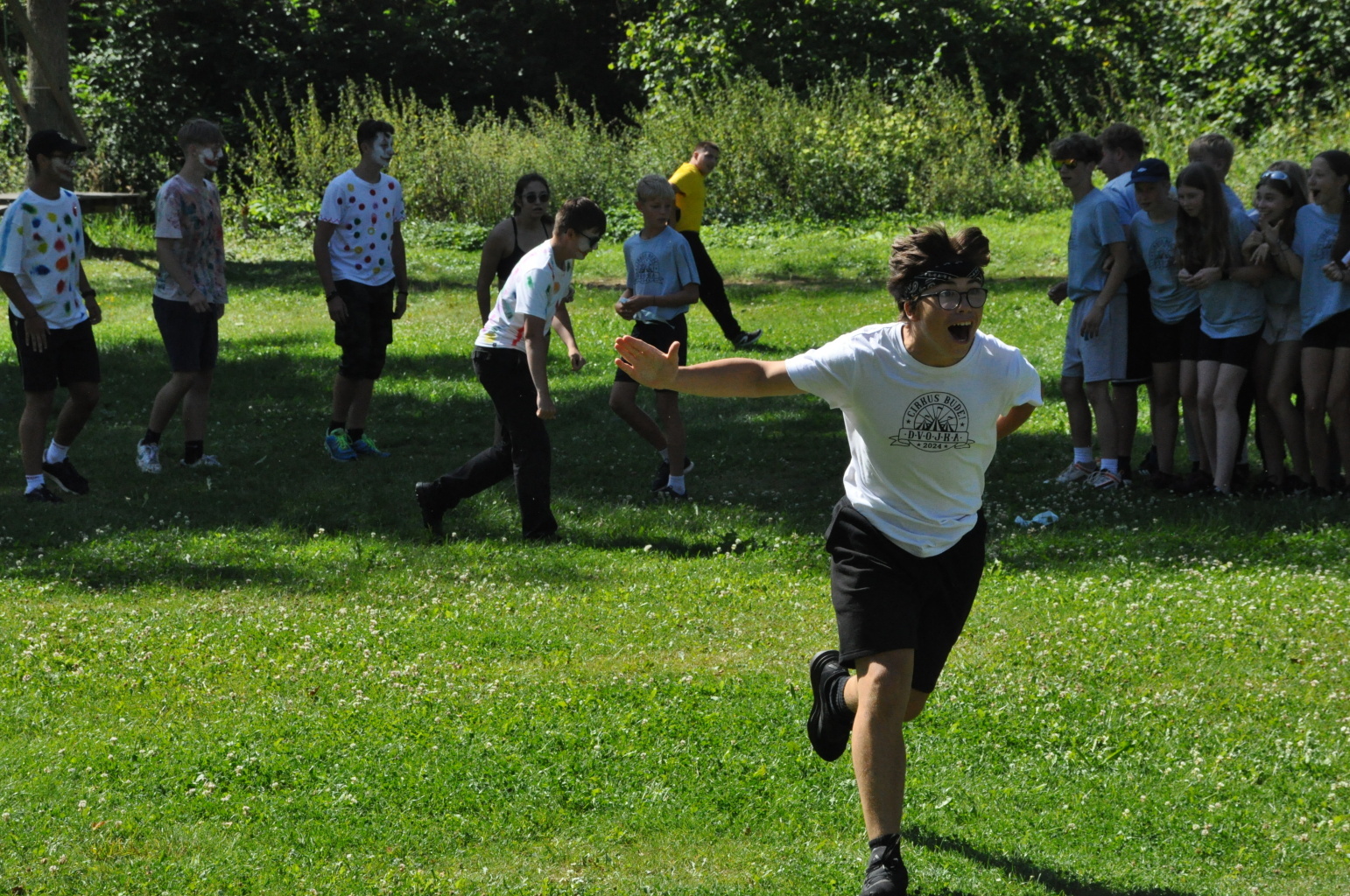 No a večer? Večer jsme samozřejmě zahájili táborové olympijské hry a večer zakončili diskotékou. Ve středu nás čeká celodenní sportovní klání a večer pak vyhodnocení a dekorování těch nejlepších sportovců a jejich výkonů.