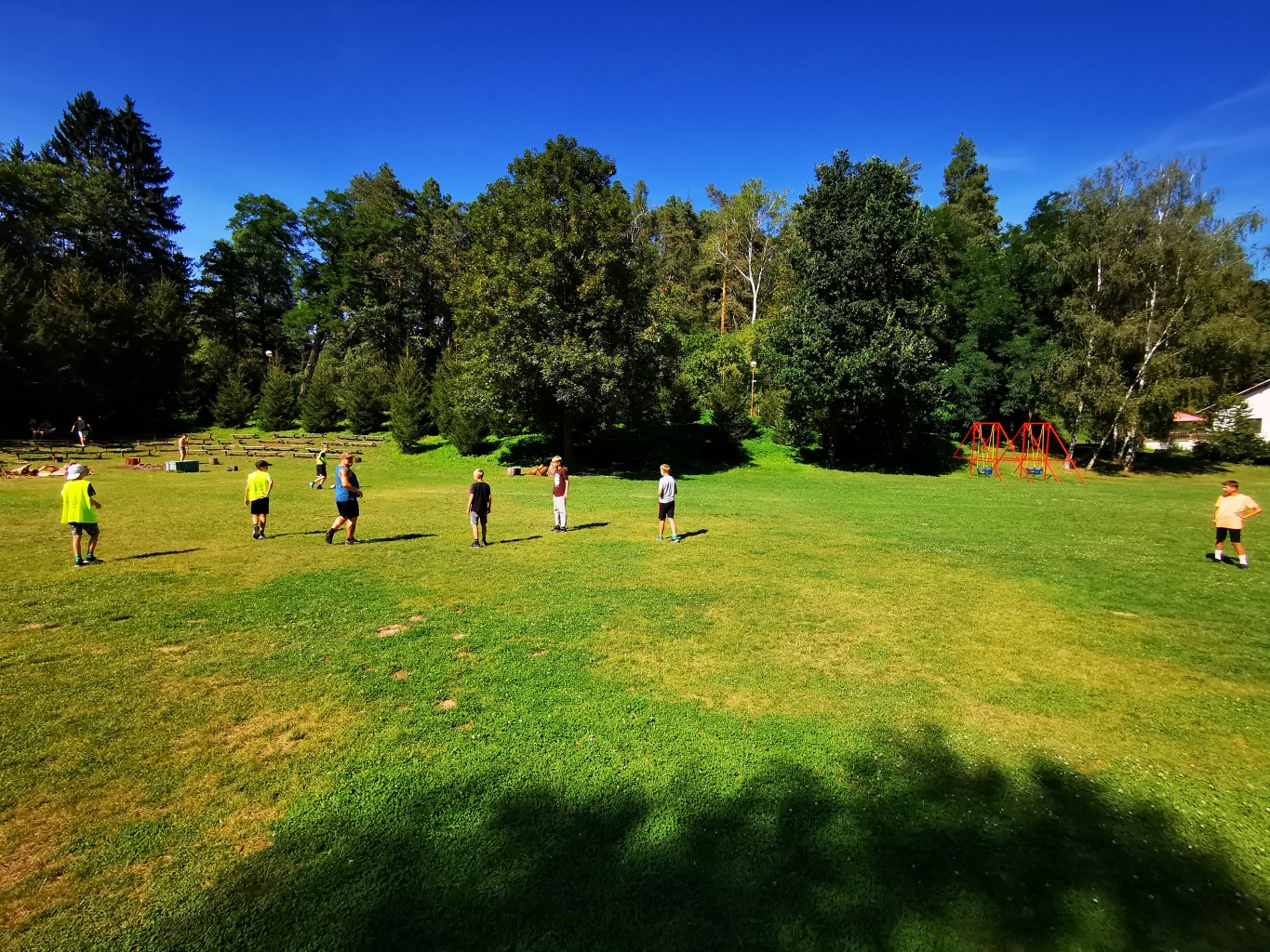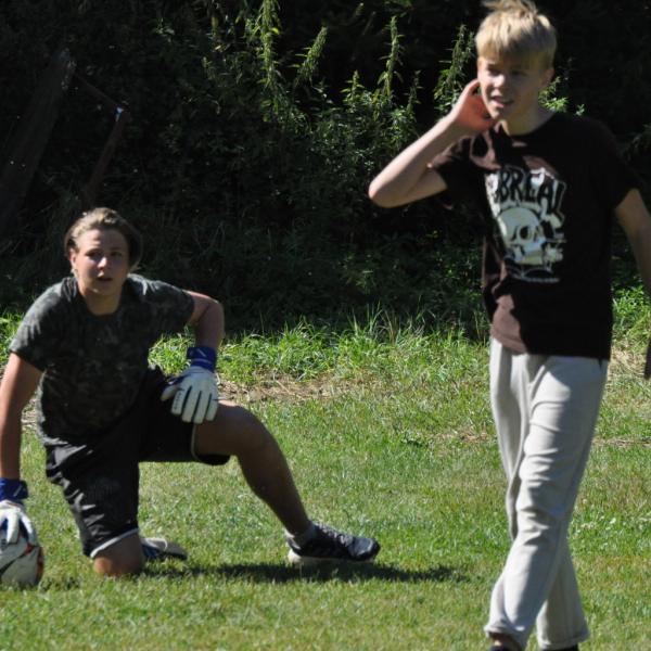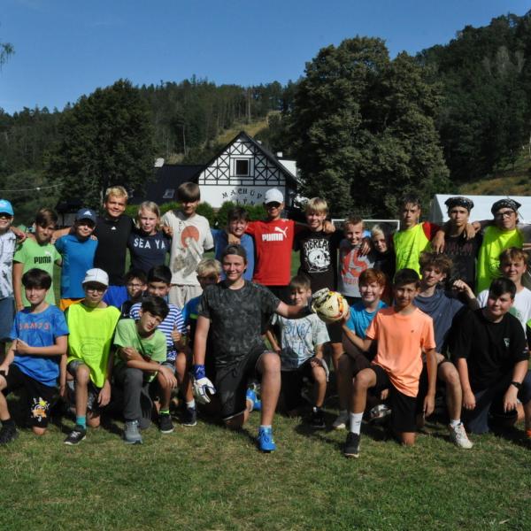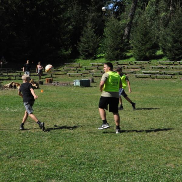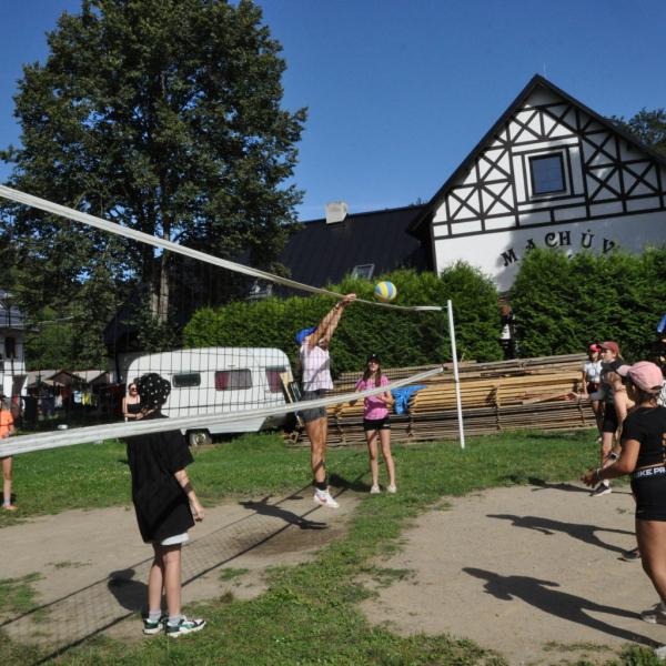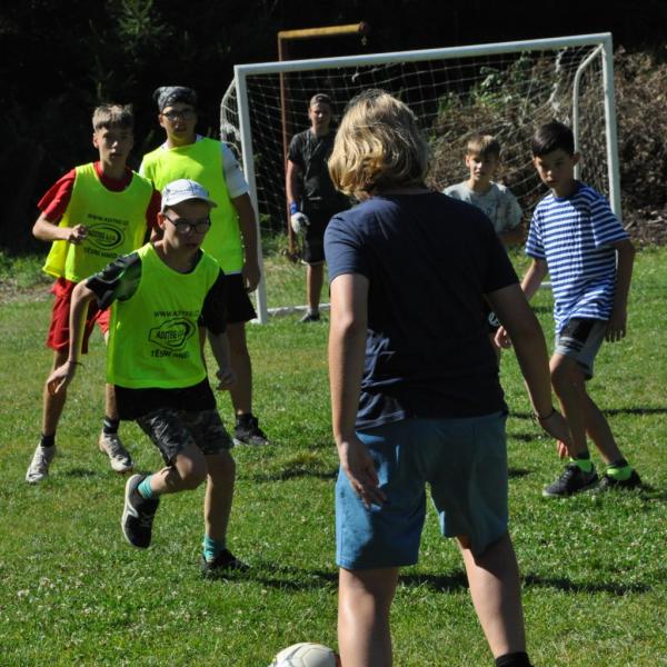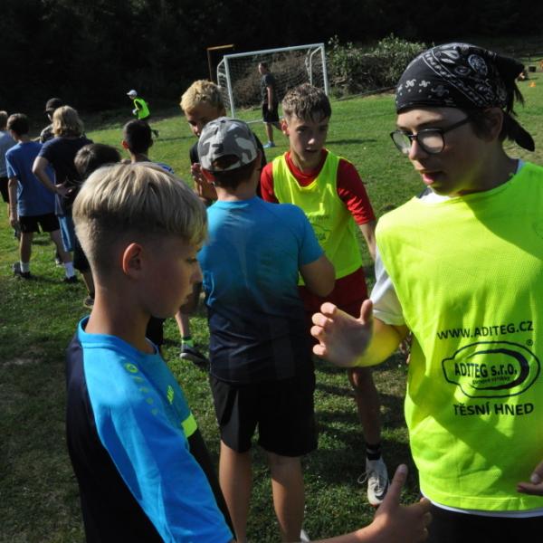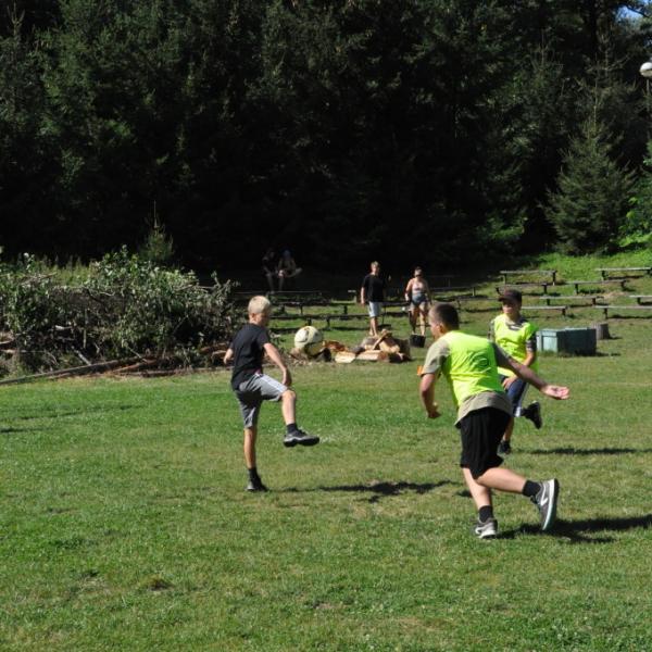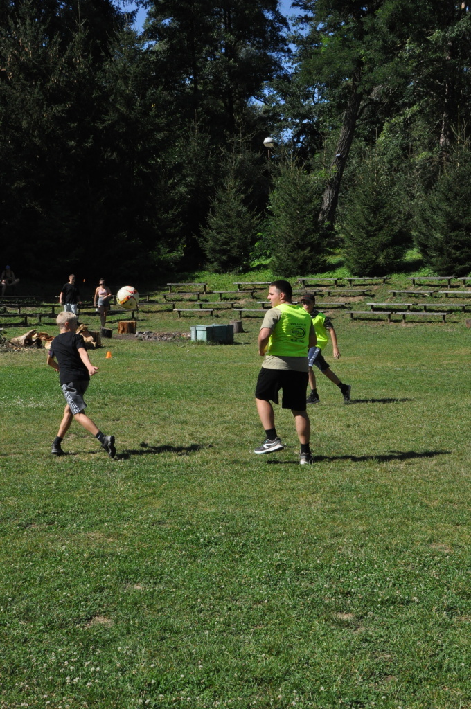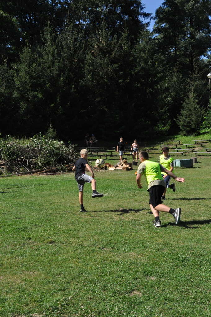 Odpoledne si oddíly druhé kategorie střihly míčový víceboj. Asi poprvé v dějinách tábora (nebo kam až moje děravá paměť sahá) se stalo, aby holky ze sedmičky porazily devítku v přehazce a zároveň kluci z osmičky na penalty zdolali své starší kamarády z oddílu desátého ve fotbale. Takže se slavilo velice na straně podceňovaných a zpytovalo se svědomí na straně favoritů. Tam, kde chyběly centimetry či zkušenosti, rozhodoval tentokrát týmový duch a štěstíčko. Tak už to prostě ve sportu někdy chodí...