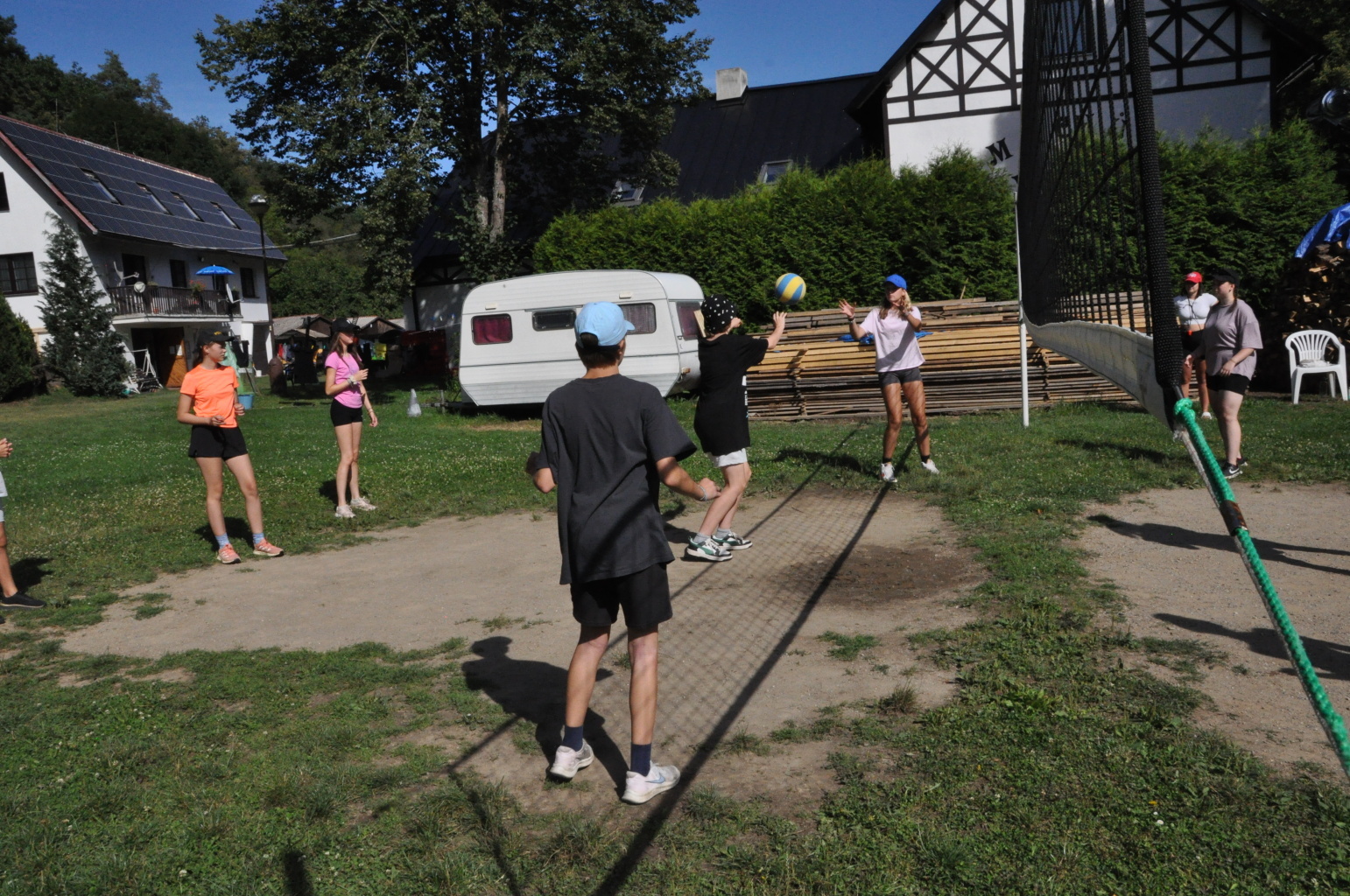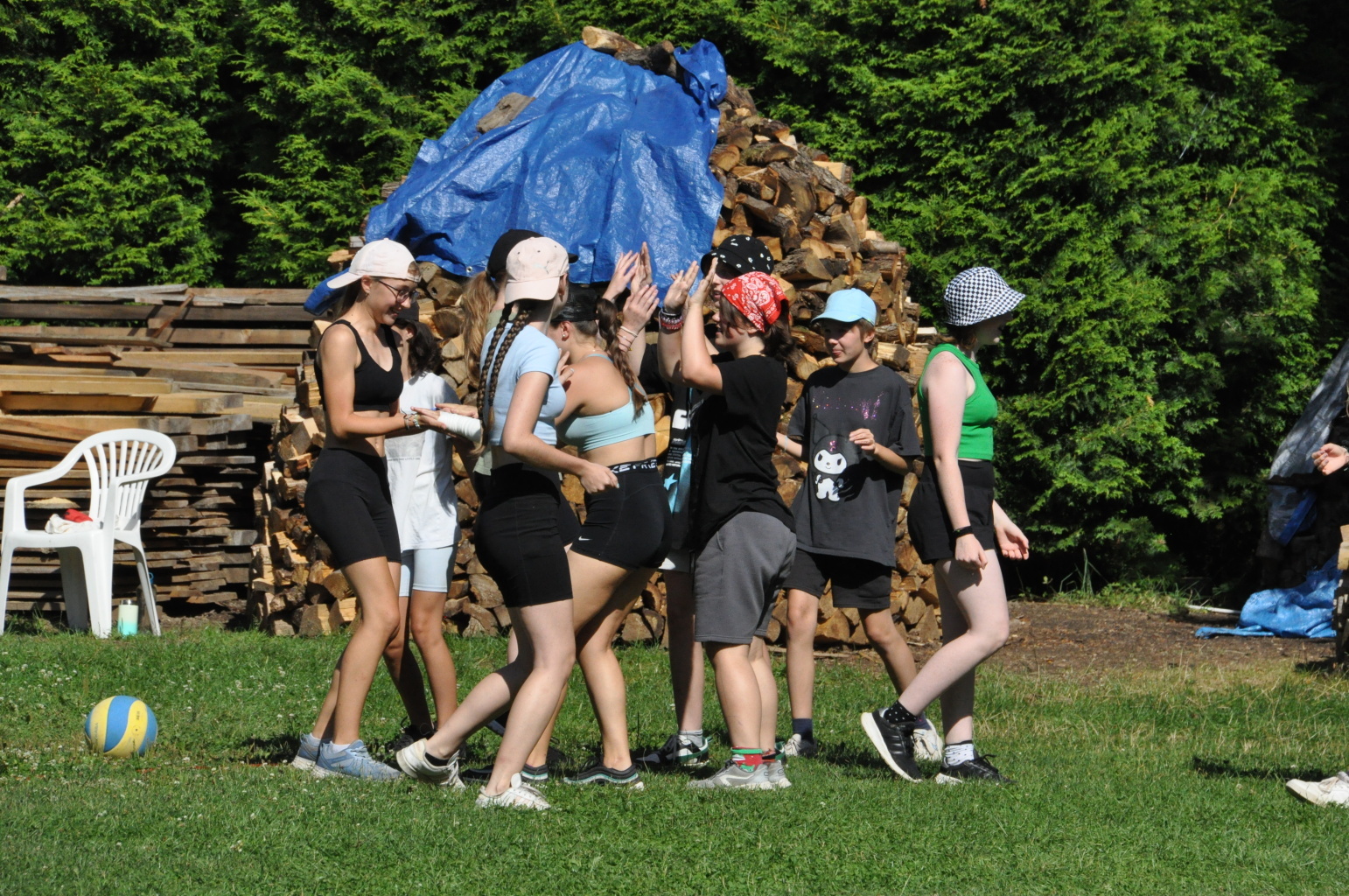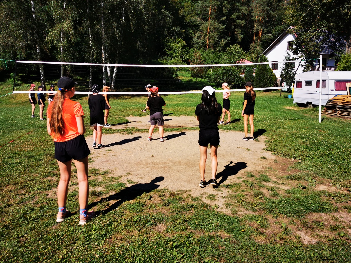 Odpoledne si oddíly druhé kategorie střihly míčový víceboj. Asi poprvé v dějinách tábora (nebo kam až moje děravá paměť sahá) se stalo, aby holky ze sedmičky porazily devítku v přehazce a zároveň kluci z osmičky na penalty zdolali své starší kamarády z oddílu desátého ve fotbale. Takže se slavilo velice na straně podceňovaných a zpytovalo se svědomí na straně favoritů. Tam, kde chyběly centimetry či zkušenosti, rozhodoval tentokrát týmový duch a štěstíčko. Tak už to prostě ve sportu někdy chodí...