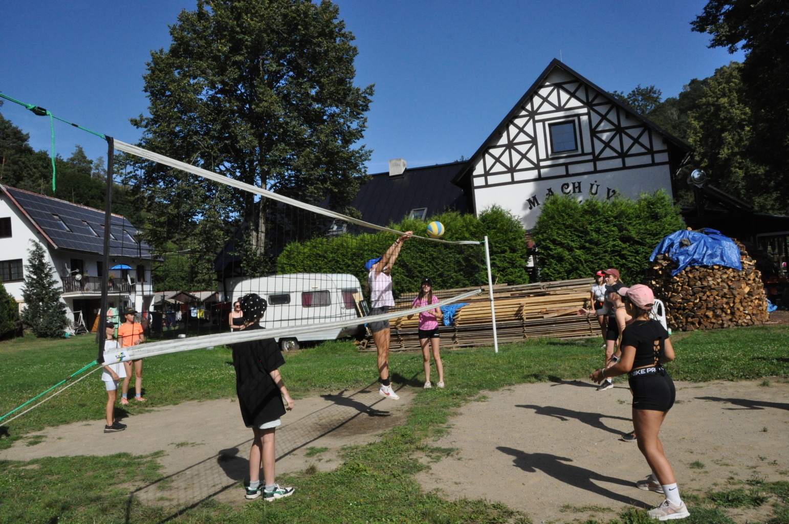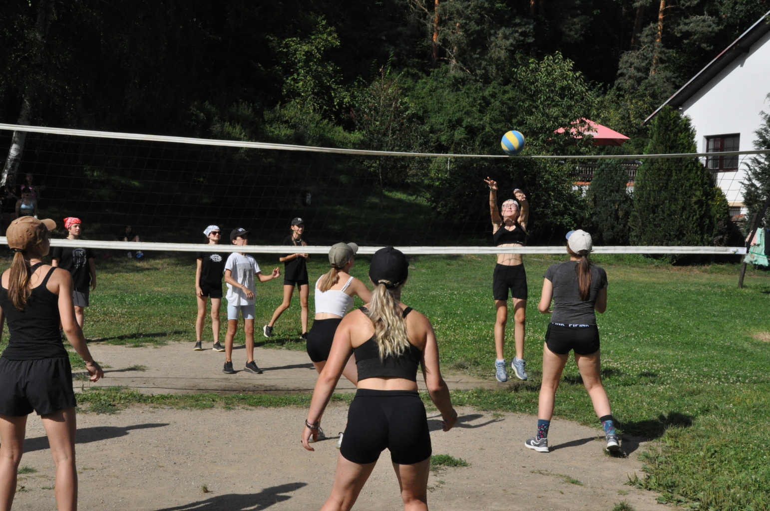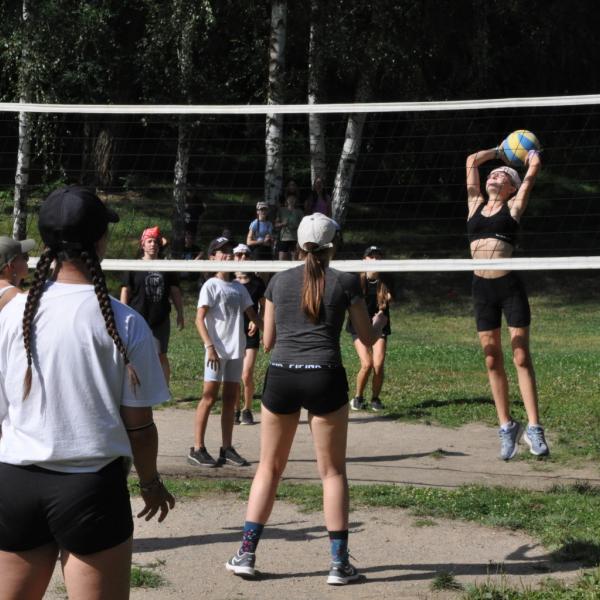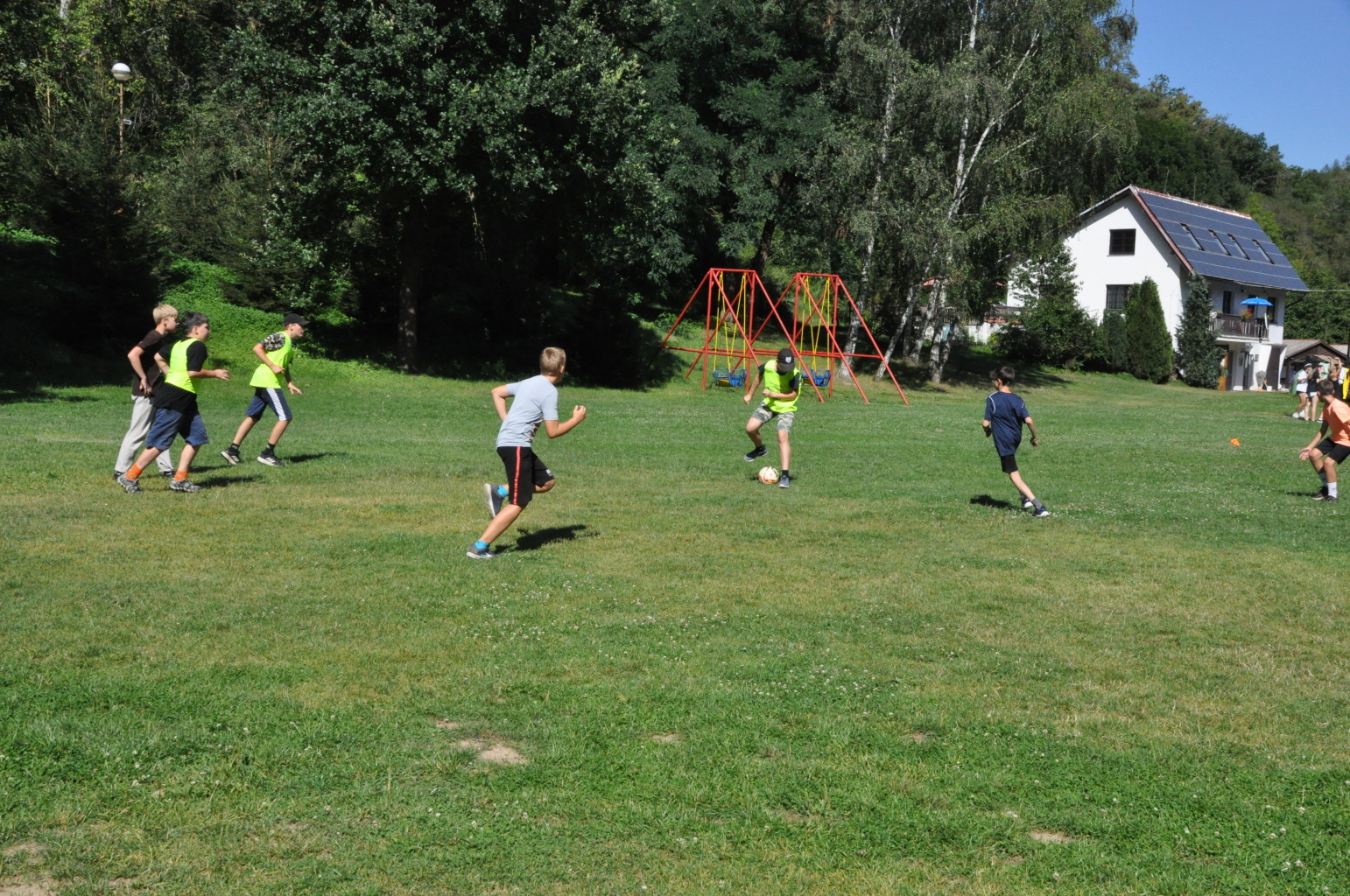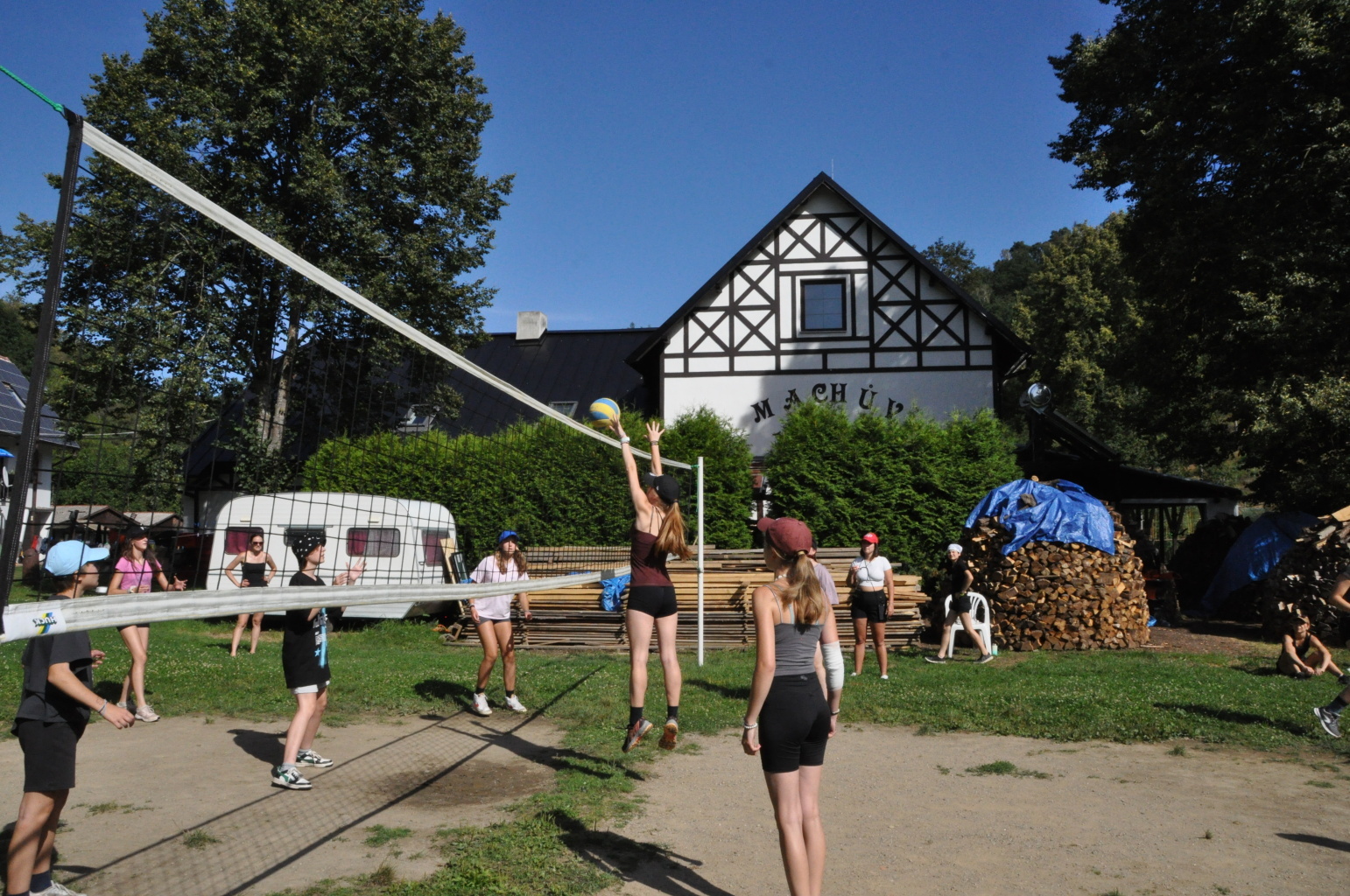 Odpoledne si oddíly druhé kategorie střihly míčový víceboj. Asi poprvé v dějinách tábora (nebo kam až moje děravá paměť sahá) se stalo, aby holky ze sedmičky porazily devítku v přehazce a zároveň kluci z osmičky na penalty zdolali své starší kamarády z oddílu desátého ve fotbale. Takže se slavilo velice na straně podceňovaných a zpytovalo se svědomí na straně favoritů. Tam, kde chyběly centimetry či zkušenosti, rozhodoval tentokrát týmový duch a štěstíčko. Tak už to prostě ve sportu někdy chodí...