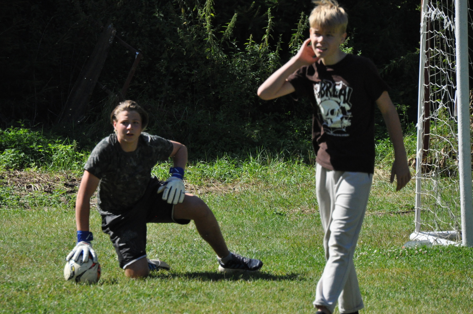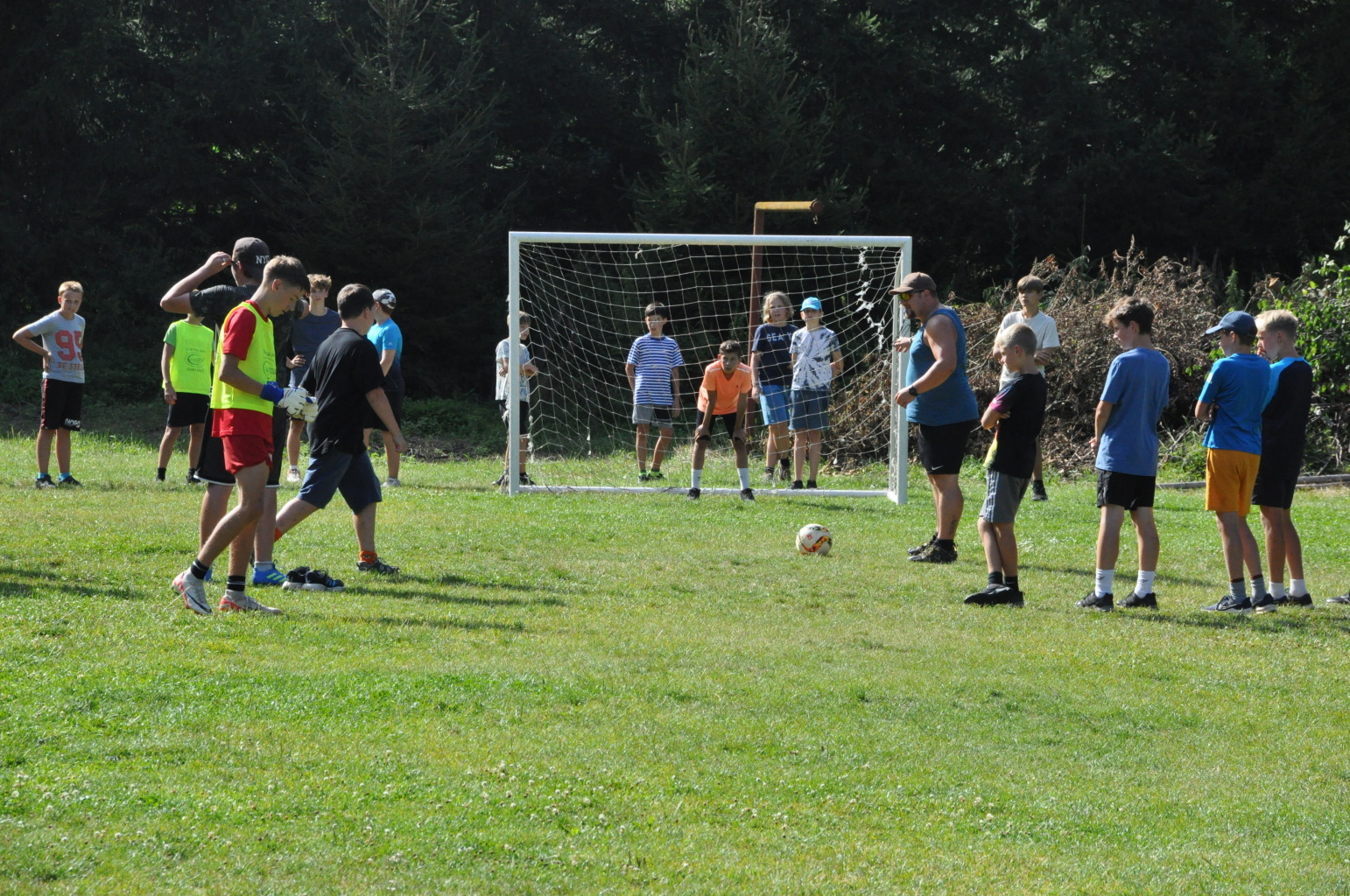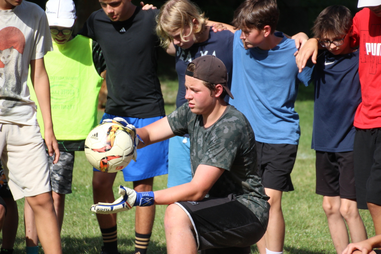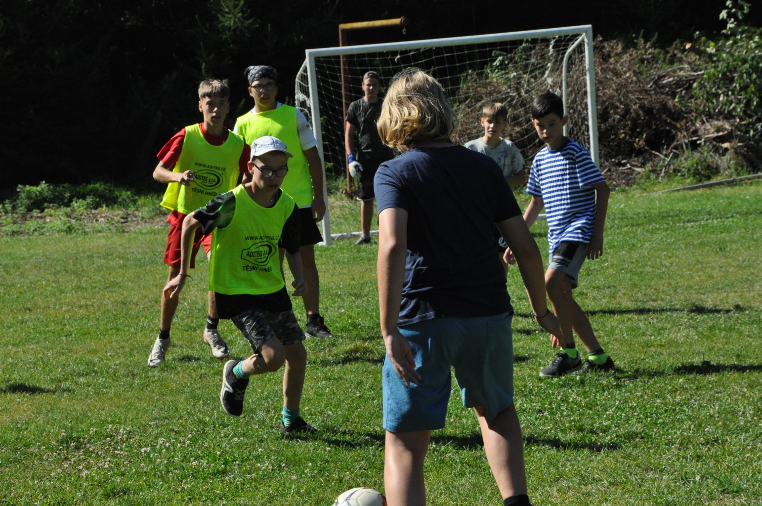 Odpoledne si oddíly druhé kategorie střihly míčový víceboj. Asi poprvé v dějinách tábora (nebo kam až moje děravá paměť sahá) se stalo, aby holky ze sedmičky porazily devítku v přehazce a zároveň kluci z osmičky na penalty zdolali své starší kamarády z oddílu desátého ve fotbale. Takže se slavilo velice na straně podceňovaných a zpytovalo se svědomí na straně favoritů. Tam, kde chyběly centimetry či zkušenosti, rozhodoval tentokrát týmový duch a štěstíčko. Tak už to prostě ve sportu někdy chodí...