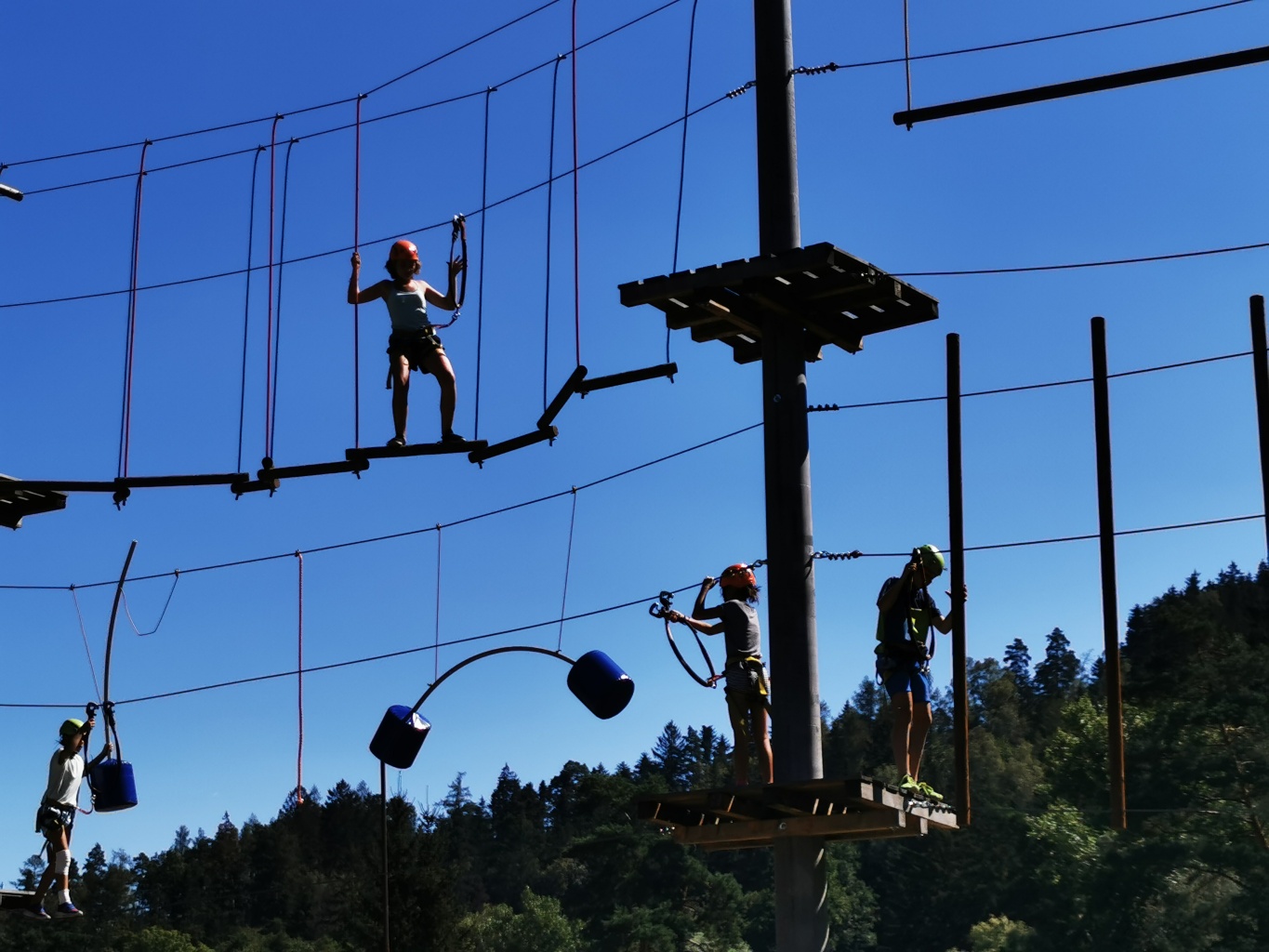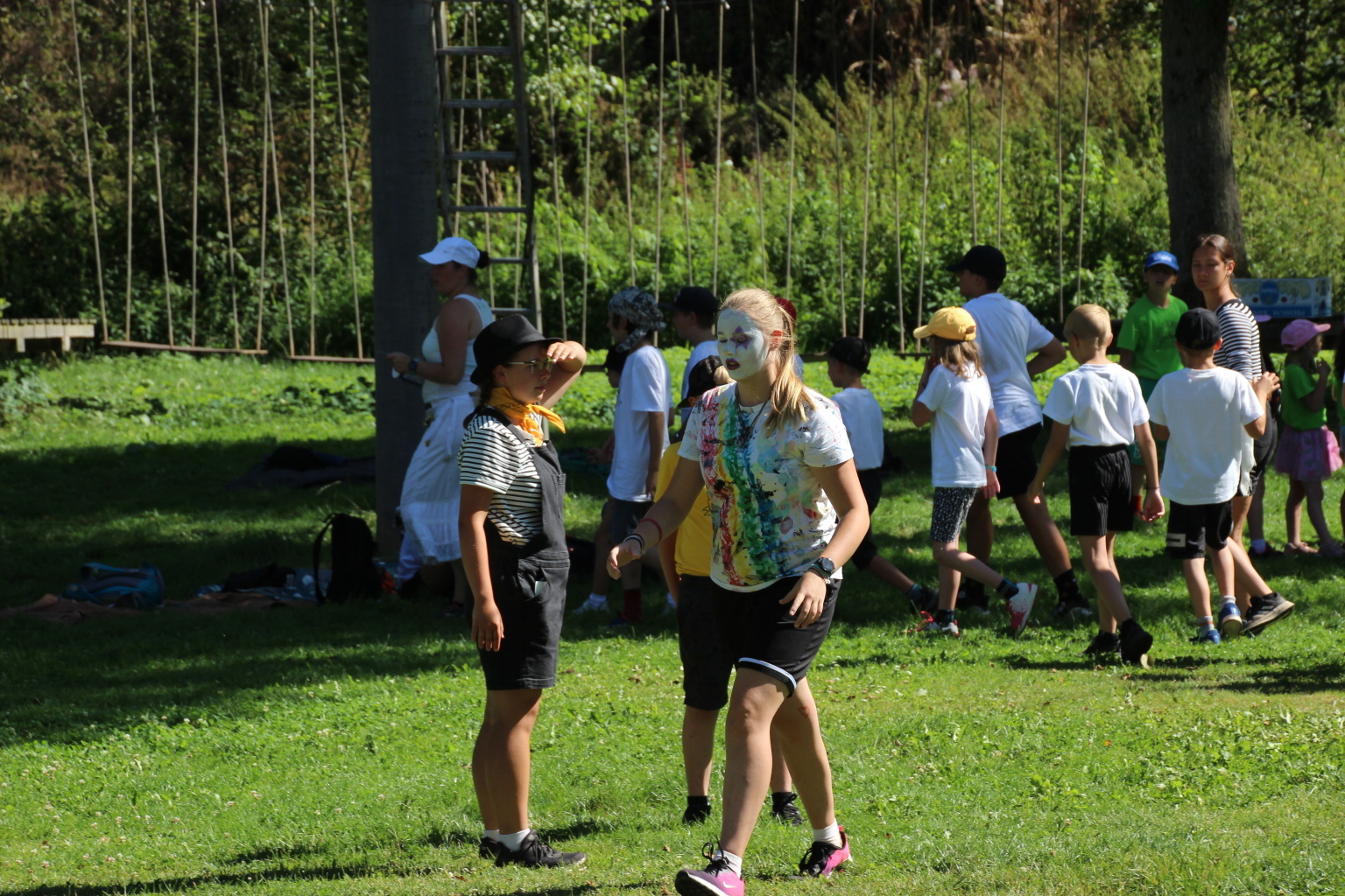 po odpočinkovém pondělí jsme do toho v úterý zase pořádně šlápli. Dopoledne si skočila děvčata z pátého oddílu na lanáč, takže si můžete prohlédnout dole nějaké ty fotečky ;). Velcí kamarádi si zahráli v pořadí již čtvrtou etapu CETEH, která nás zavedla do sousedního Německa. Byla to etapa napínavá a náročná. Bylo zapotřebí skloubit nejen fyzickou zdatnost cirkusáků, ale přidat i nějaký ten "tríček" z ranku strategického a taktického. Děti tyhle komplexní hry moc baví, jak bylo vidět nejen z jejich reakcí, ale i z fotek (doufám ;) ). Odpoledne si samozřejmě CETEH zahráli i malí kamarádi.