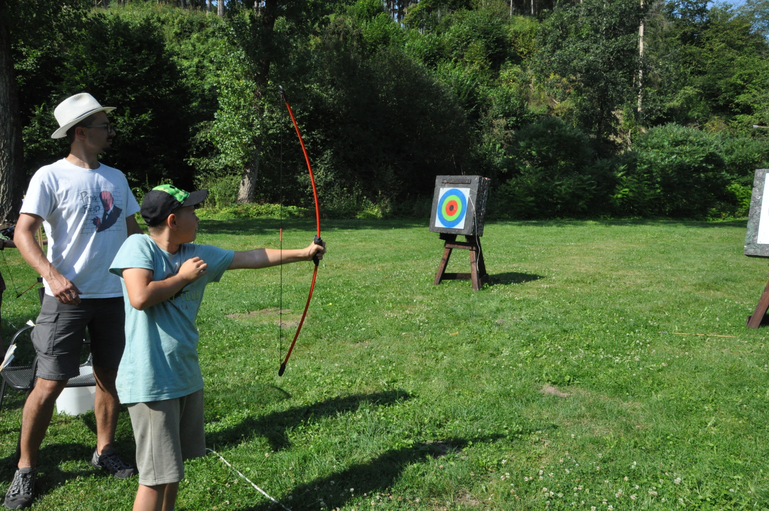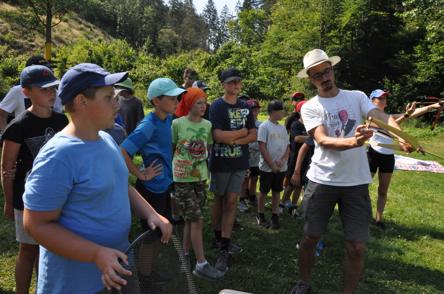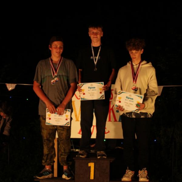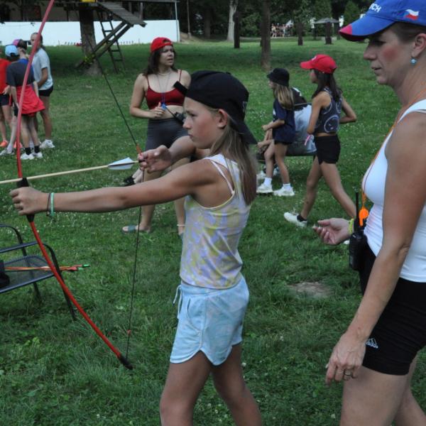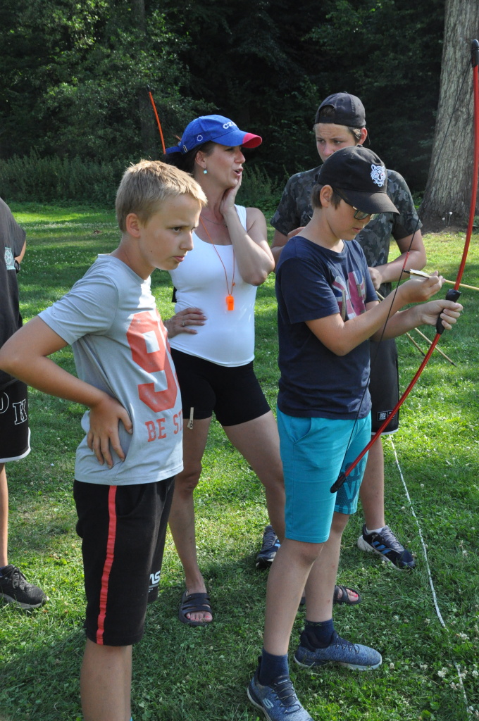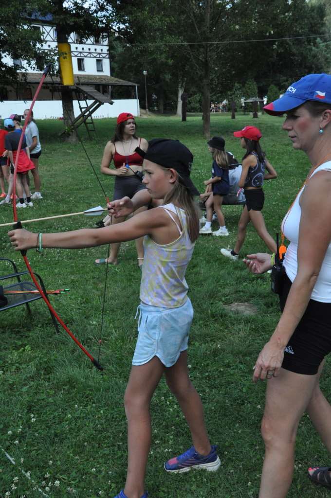 když sport, tak olympijský, když olympijský, tak táborový, a když táborový, tak jedině na Dvojce! Přesně v tomto duchu jsme si totiž užili celou středu - olympijským sportováním. Ve třech věkových kategoriích se děti utkaly v disciplínách běh, vrh koulí, hod granátem, plavání, střelba ze vzduchovky a střelba z luku. Všichni se samozřejmě snažili, nicméně jak už to tak ve sportu (i v životě) bývá, ne každý dosáhl na pomyslnou "bednu". Všichni sportovci však naprosto ctili olympijskou myšlenku a na stadionech tak nebyla ani stopa po zášti či nesportovním chování. Večer jsme provolali slávu vítězům a vzdali čest poraženým, sfoukli jsme olympijský oheň a po galavečeru, který byl zpestřen kulturními vystoupeními našich mladých talentů, jsem šli spát.