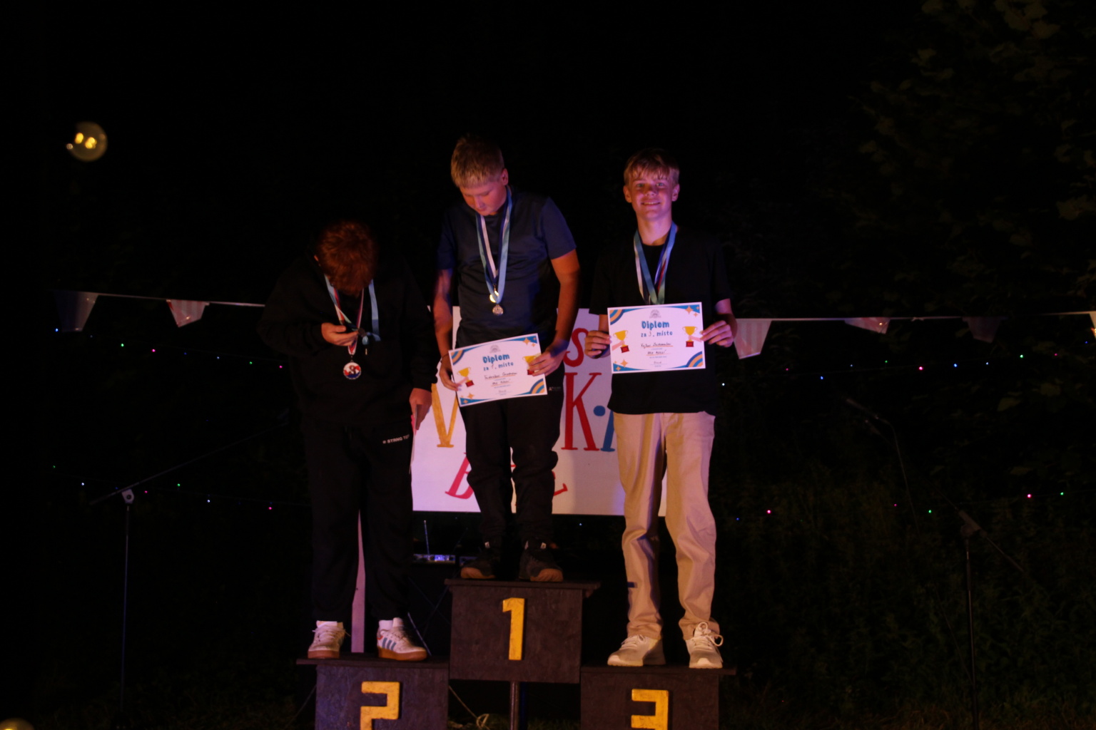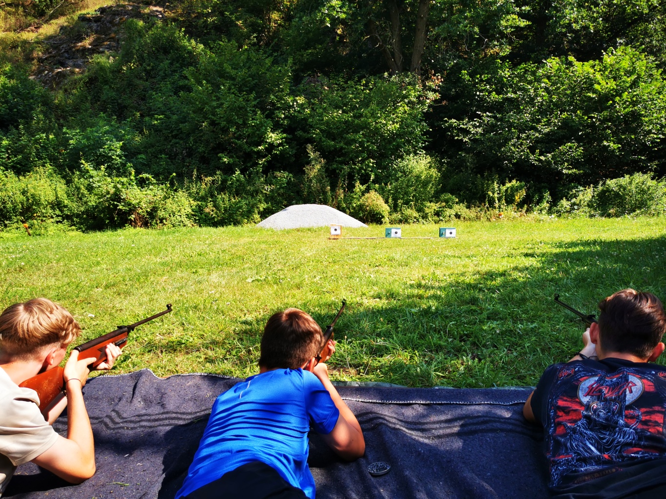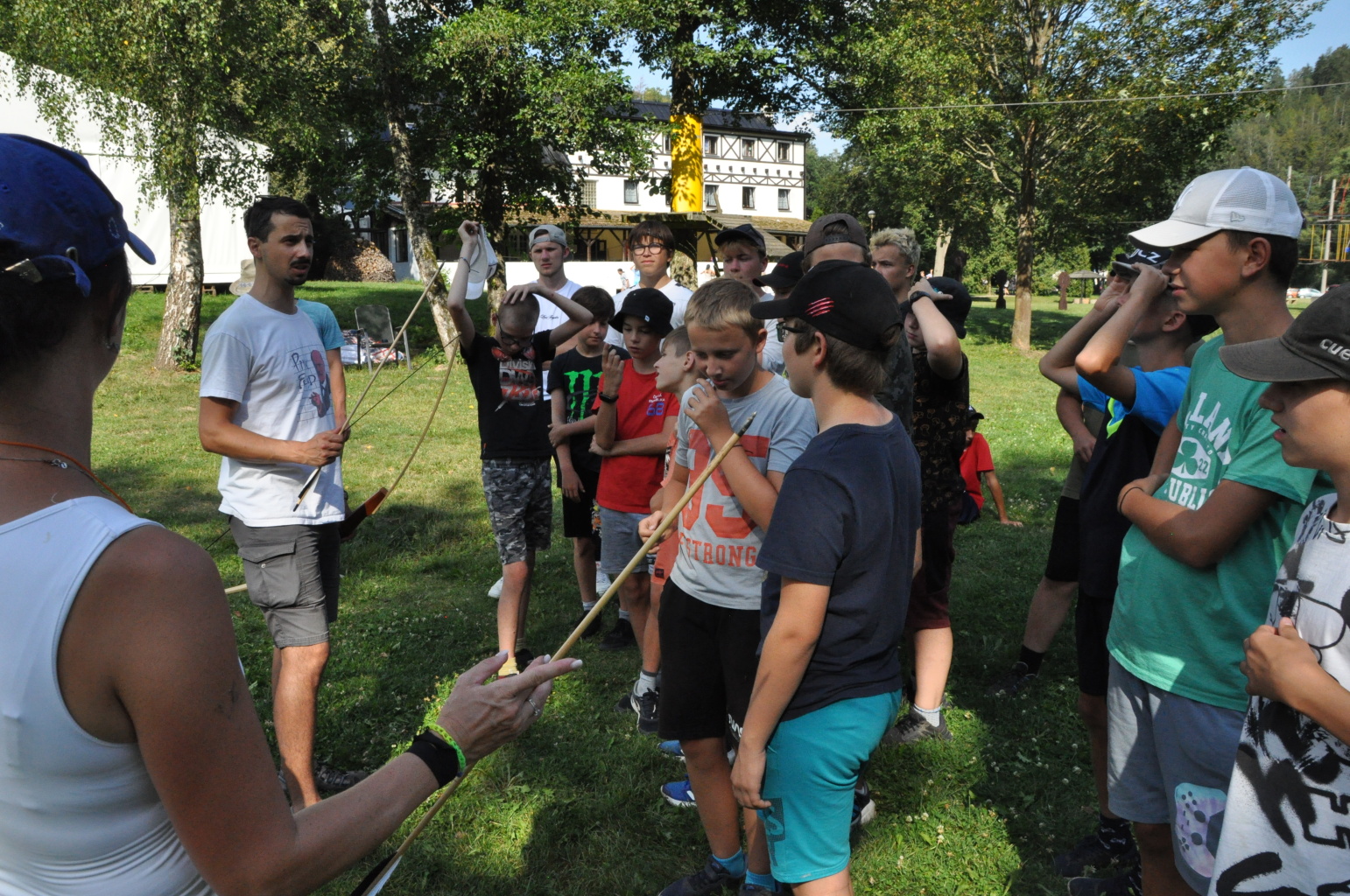 když sport, tak olympijský, když olympijský, tak táborový, a když táborový, tak jedině na Dvojce! Přesně v tomto duchu jsme si totiž užili celou středu - olympijským sportováním. Ve třech věkových kategoriích se děti utkaly v disciplínách běh, vrh koulí, hod granátem, plavání, střelba ze vzduchovky a střelba z luku. Všichni se samozřejmě snažili, nicméně jak už to tak ve sportu (i v životě) bývá, ne každý dosáhl na pomyslnou "bednu". Všichni sportovci však naprosto ctili olympijskou myšlenku a na stadionech tak nebyla ani stopa po zášti či nesportovním chování. Večer jsme provolali slávu vítězům a vzdali čest poraženým, sfoukli jsme olympijský oheň a po galavečeru, který byl zpestřen kulturními vystoupeními našich mladých talentů, jsem šli spát.