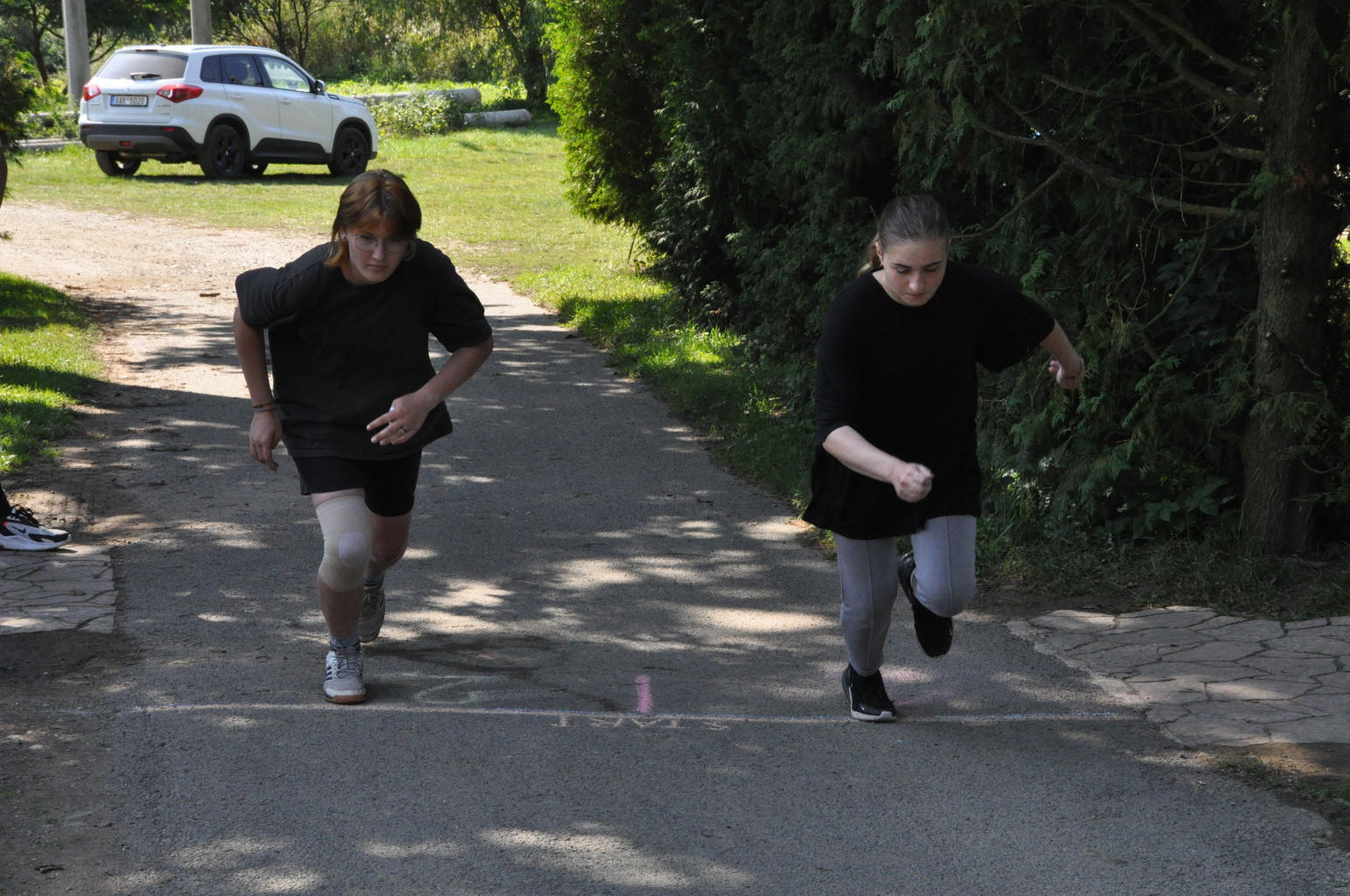 K tomu těšení.... ne že bychom se na vás netěšili, ale klidně bychom si to tu prodloužili ;). Myslím, že se tomu říká "smíšené pocity". Domů se chce i nechce a tyhle pocity budou s blížící se nedělí jen sílit. Konec tábora a odjezd domů už je tak nějak "cítit ve vzduchu". Děti začínají být více nepozorné, my máme méně a méně sil vtiskávat všemu tomu táborovému dění nějaký řád. Únava, která se za těch 12 dní tábora nastřádala, si začíná vybírat svou daň, jak na straně dospělých, tak dětí. Jako bychom byly v pomyslném závodě na cílové rovince. Cíl už se blíží, nohy těžknou, ale víme, že ze sebe všichni musíme nyní vydat to nejlepší a závod zdárně dotáhnout.