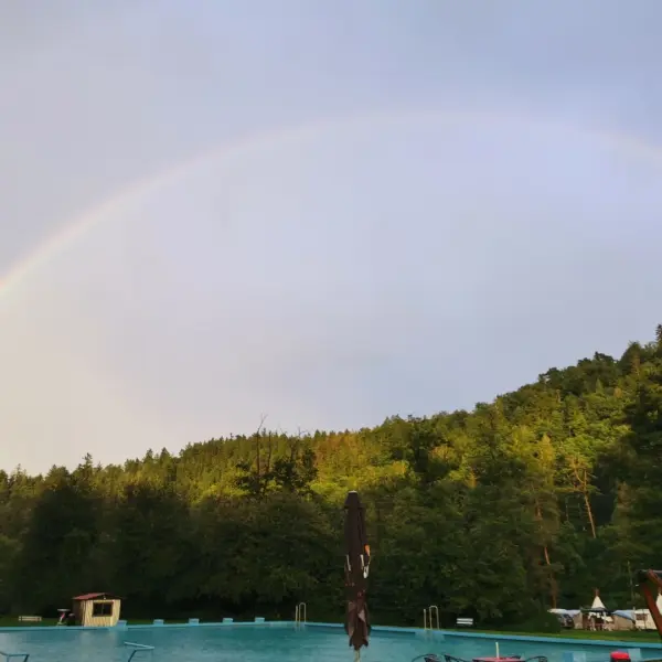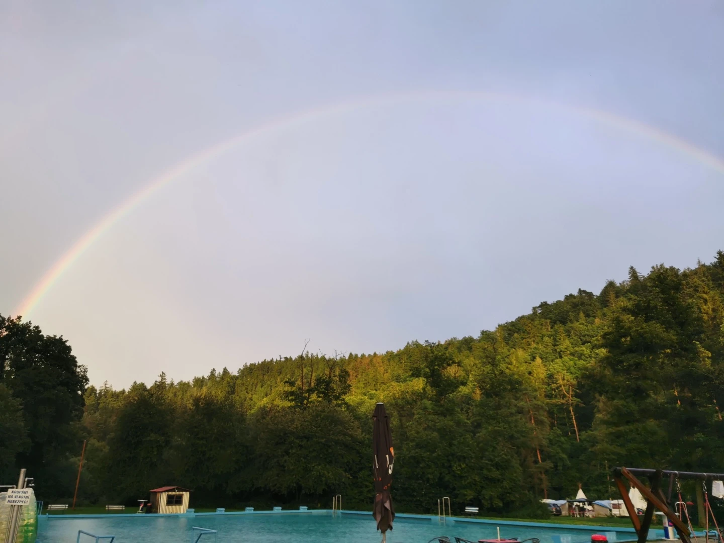 Mimochodem, klasika - jakmile jsme v rychlosti sbalili techniku a děti se schovaly do chatek, během deseti minut bylo po dešti a nad údolím potoka se vybarvila překrásná duha. To se chce tlouct hlavou o zeď, v těchto chvílích…. ;).
