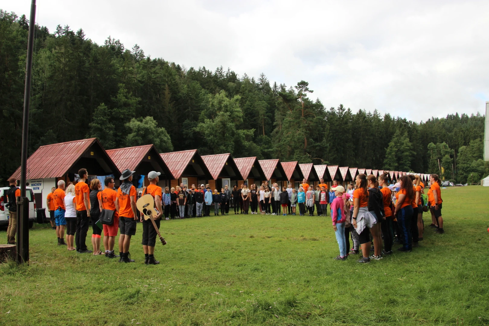 Jestli se na nás počasí chtělo vyřádit, zvládlo to v noci ze soboty na neděli. Deště ale k ránu ubylo a poeta by řekl, že se na nás ráno smálo zalité sluncem ;). Budíček nám nemohl zazpívat nikdo jiný než Pavel Bobek se svým Nedělním ránem, který k našemu táboru a nedělnímu vstávání neodmyslitelně patří.