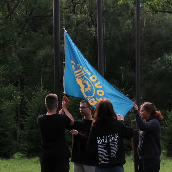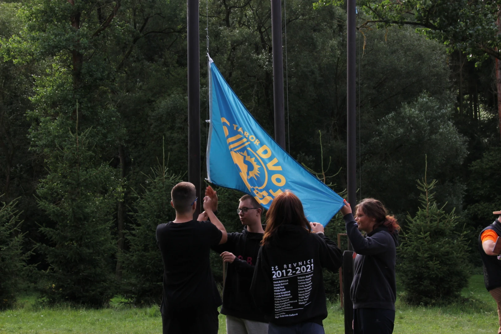Jako správní táborníci jsme na prvním ranním slavnostním nástupu vztyčili jak českou, tak naší táborovou vlajku. A potěšili jsme se informací, že na olympiádě máme v oštěpu dvě medaile. Bravo, kluci, jste borci! Snad váš úspěch bude inspirací pro naše táborové olympijské hry. I když hod oštěpem mezi naše táborové disciplíny nepatří ;).
