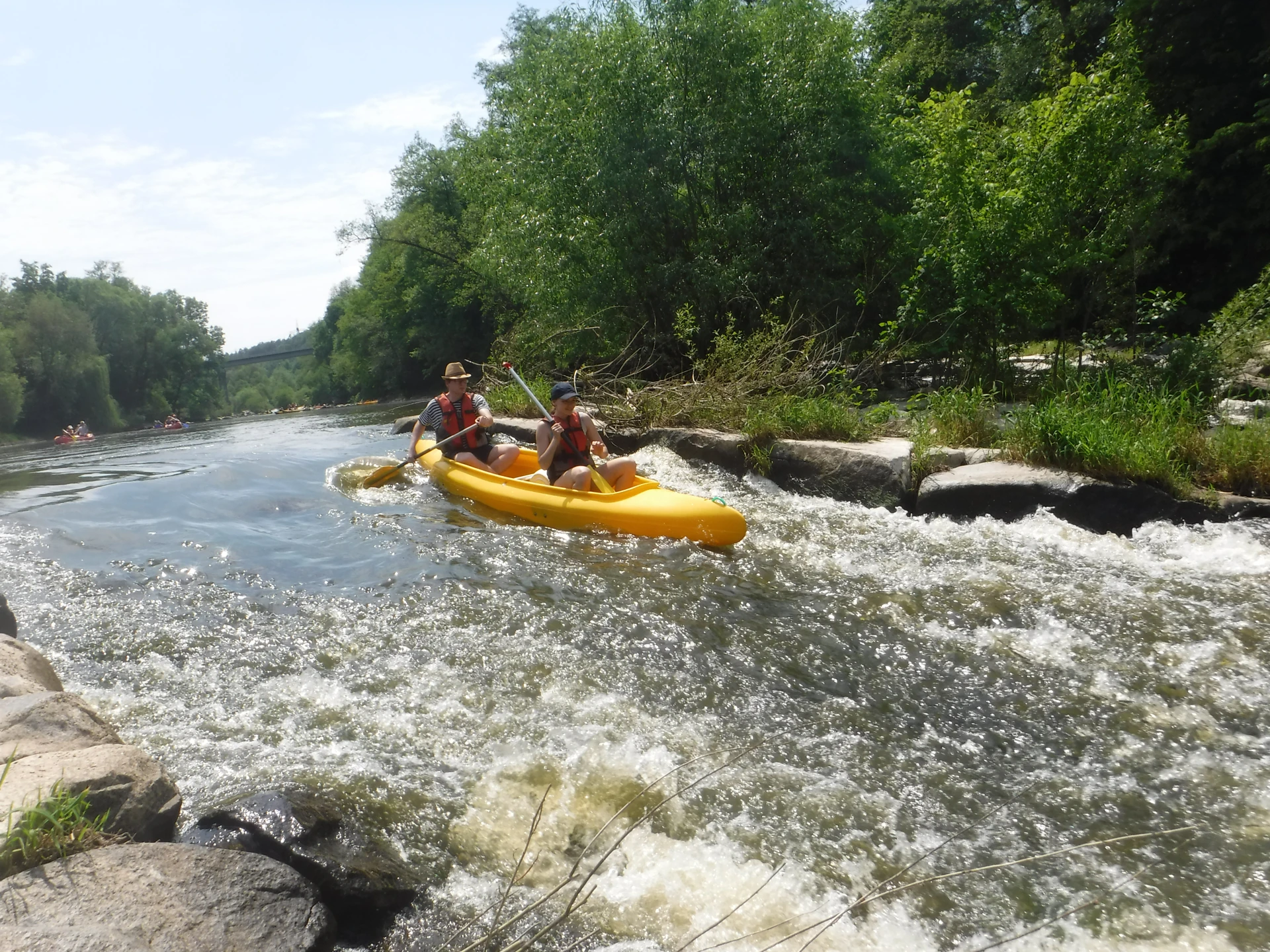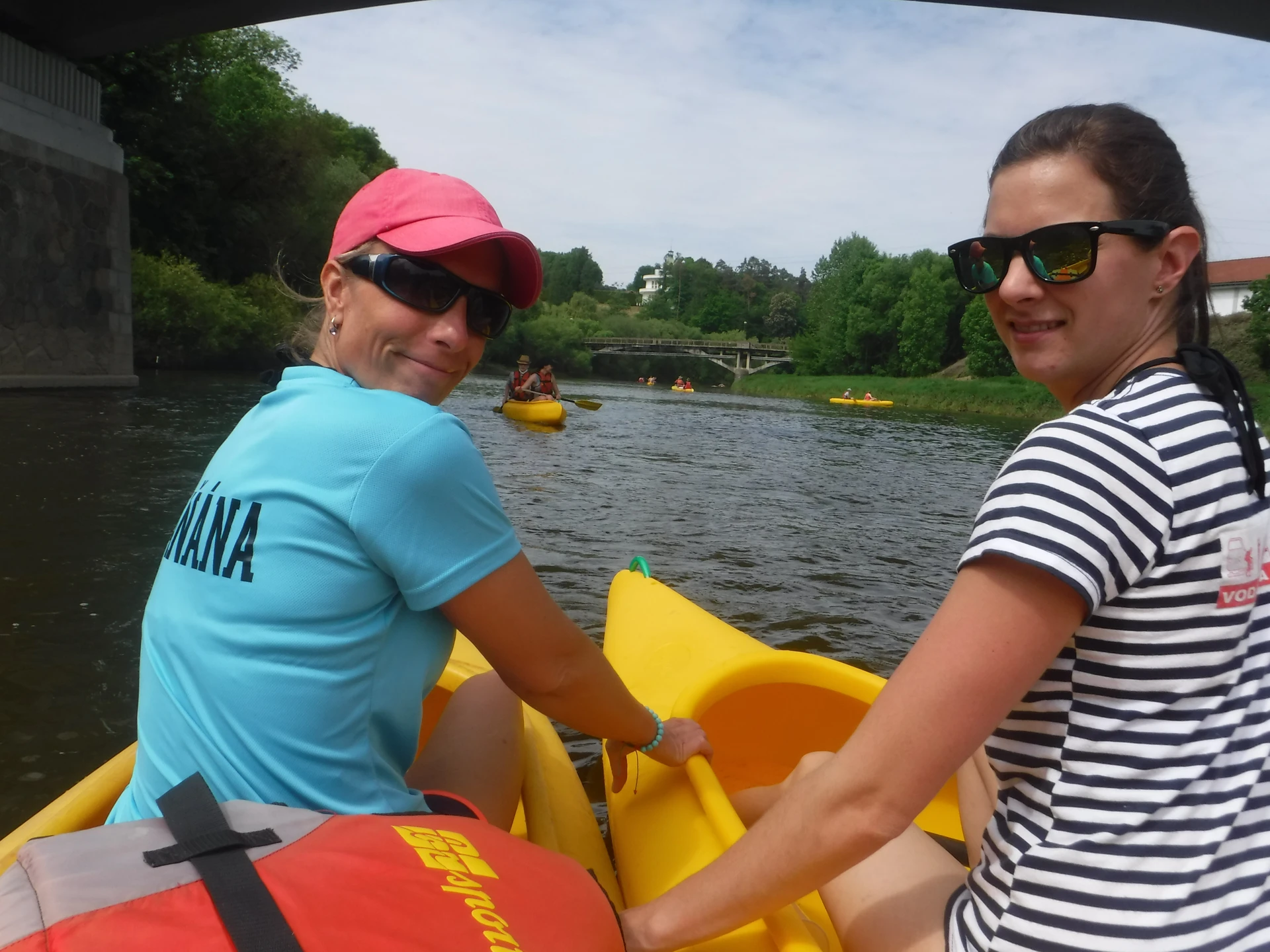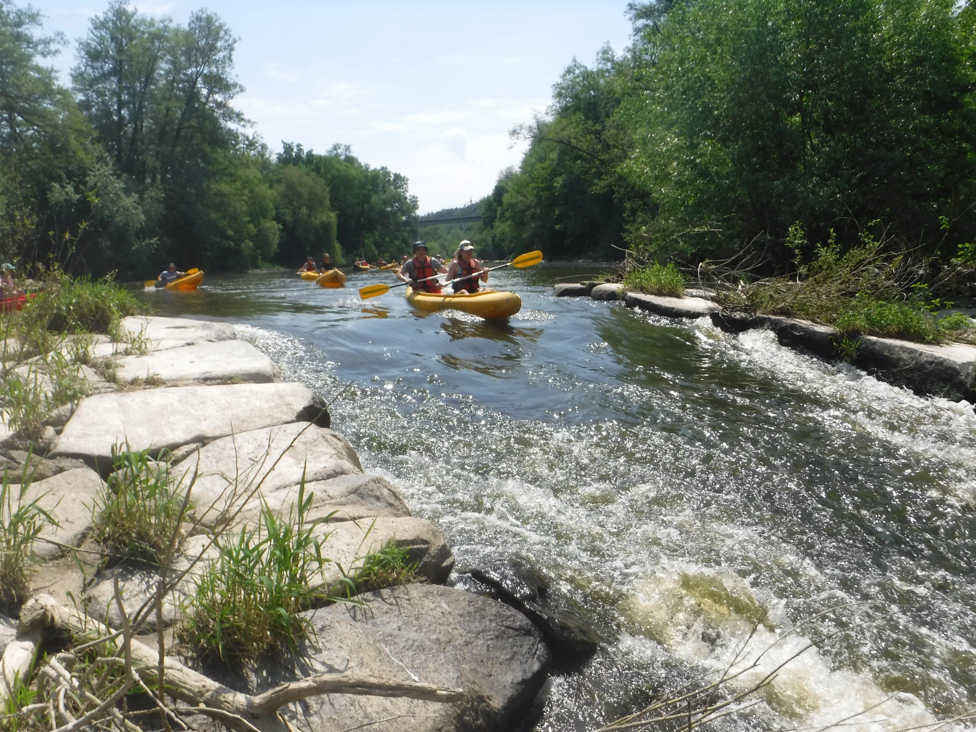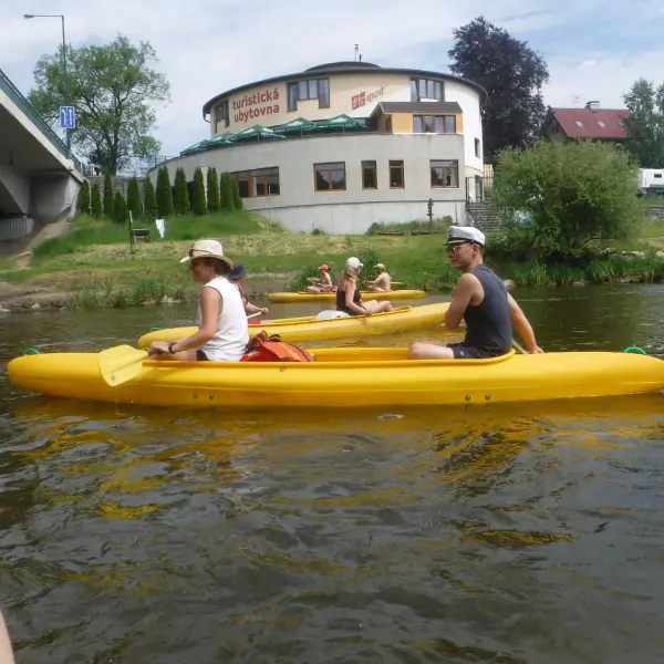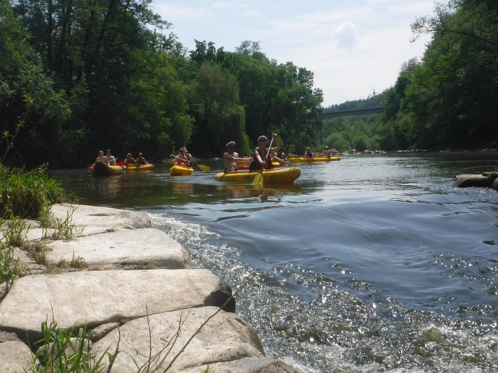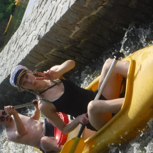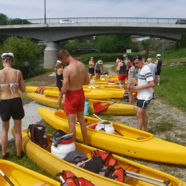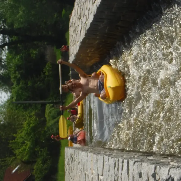 Přálo nám počasí i řeka sama. Zejména tím, že bylo slunečno a byl také dostatek vody, a tak jsme letos ani nedrhli o dno. Naopak! Jindy zdálky patrné kameny se letos ponořily těsně pod hladinu a v nejnevhodnějších okamžicích se nerozpakovaly některé z nás obrátit nedobrovolně dnem vzhůru… Nikde jinde, než mezi přáteli a kamarády, nenajdete více posměváčků, to si buďte jistí! Takže zatímco ze dna lodě lovíte mokrou housku a nacucané triko, dozvídáte se mnohé o vašem kormidelnickém stylu. Přitom na vodě každý ví, že za všechno zlé může jen a výhradně háček!