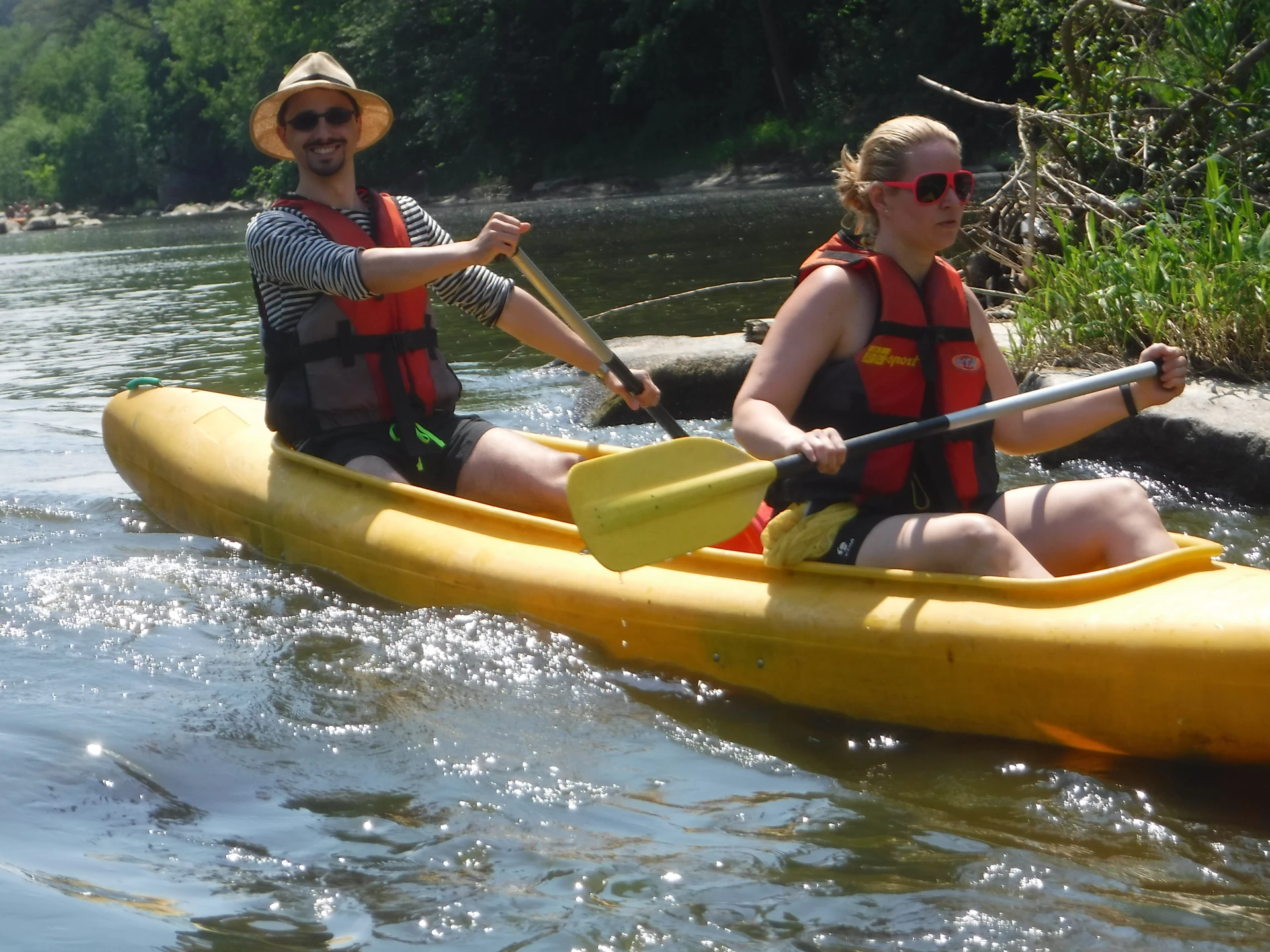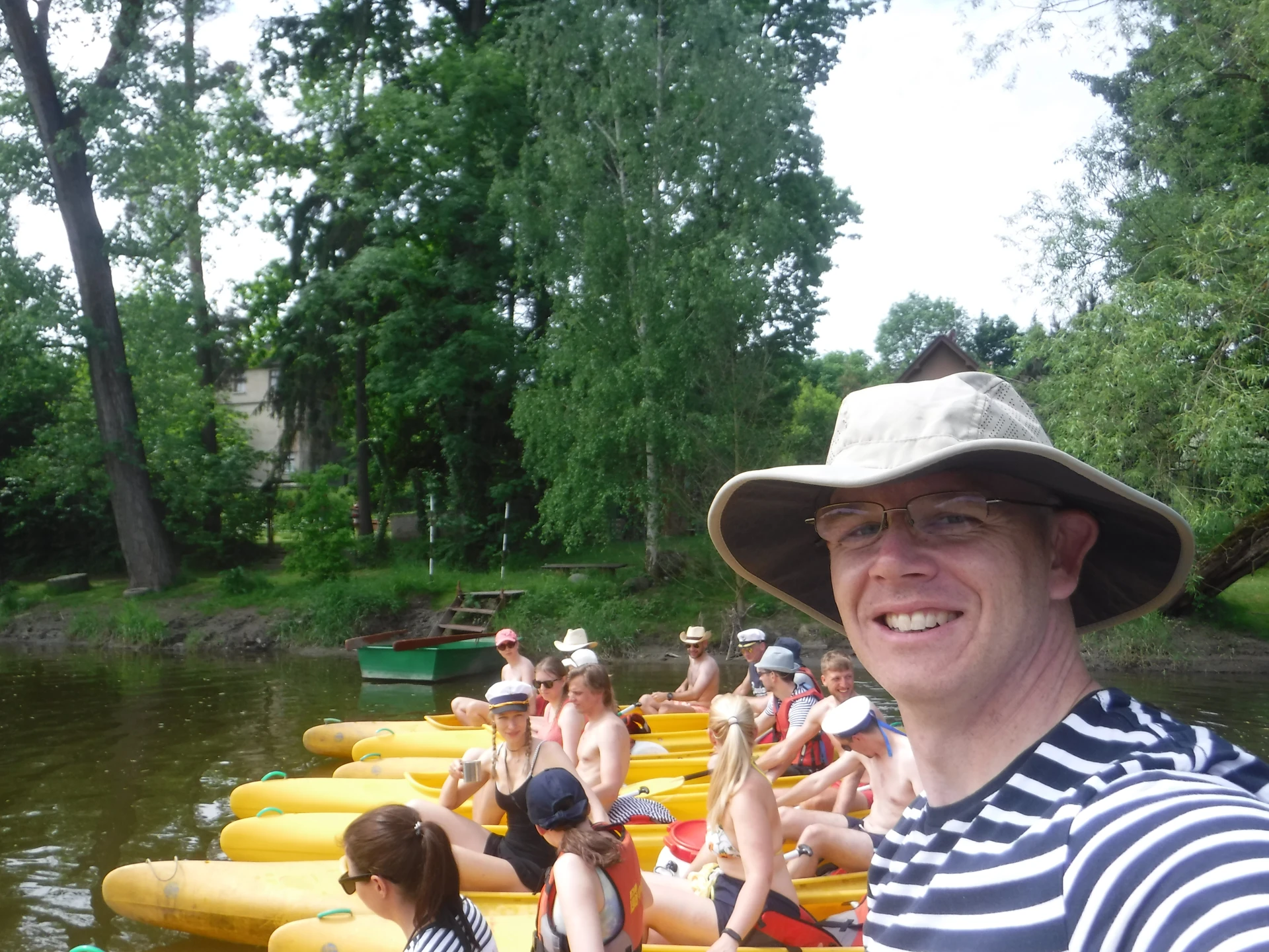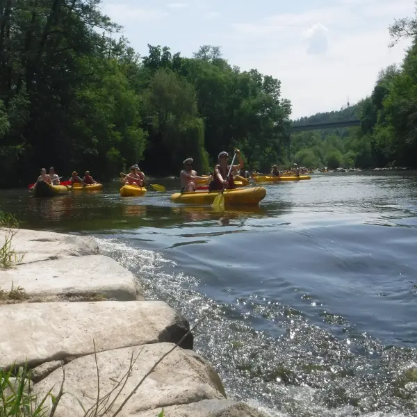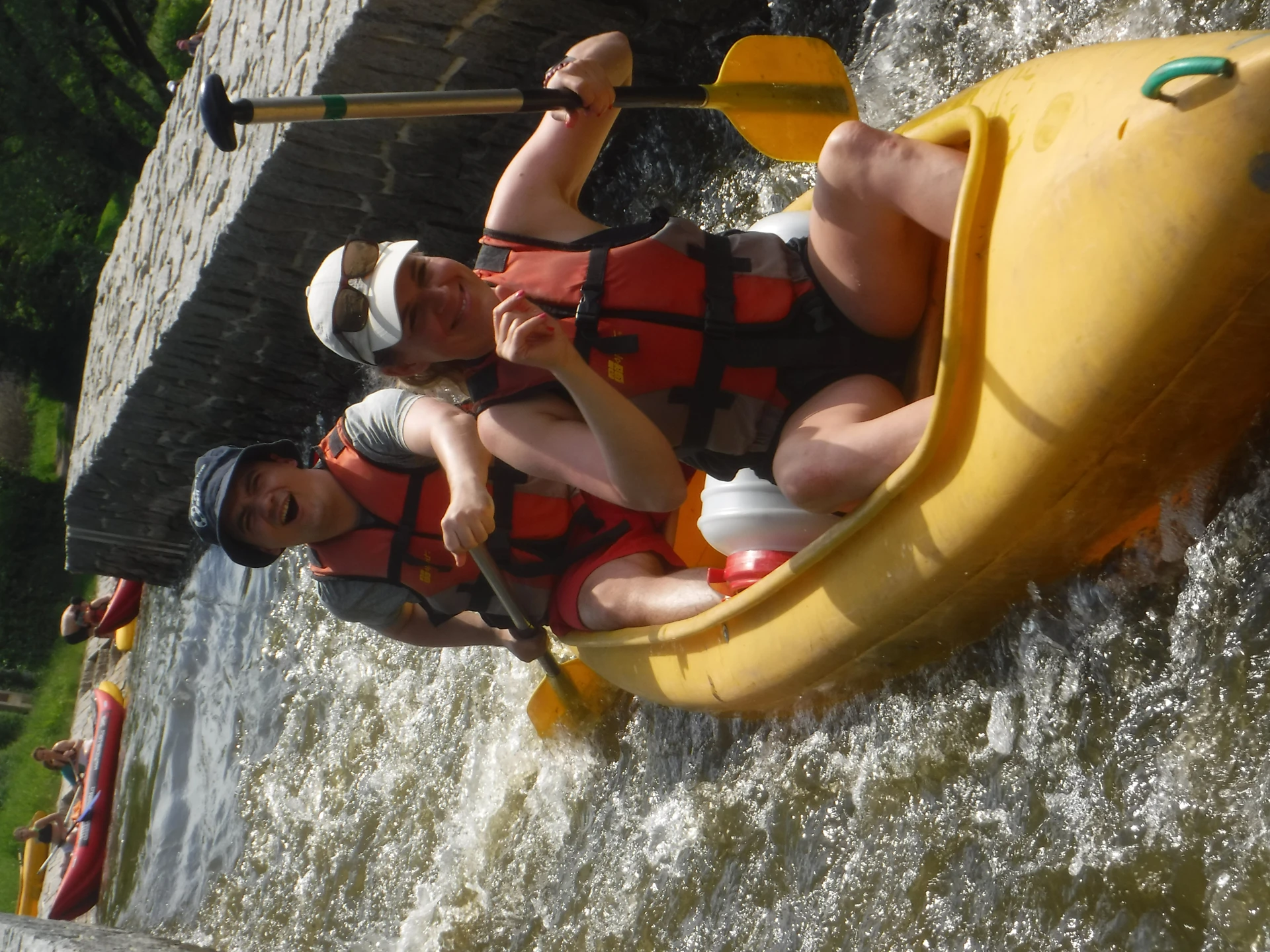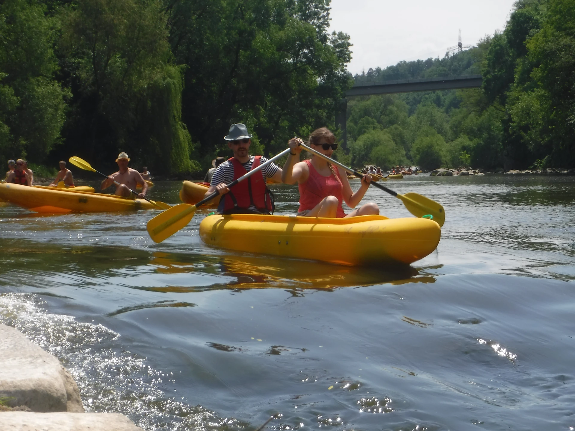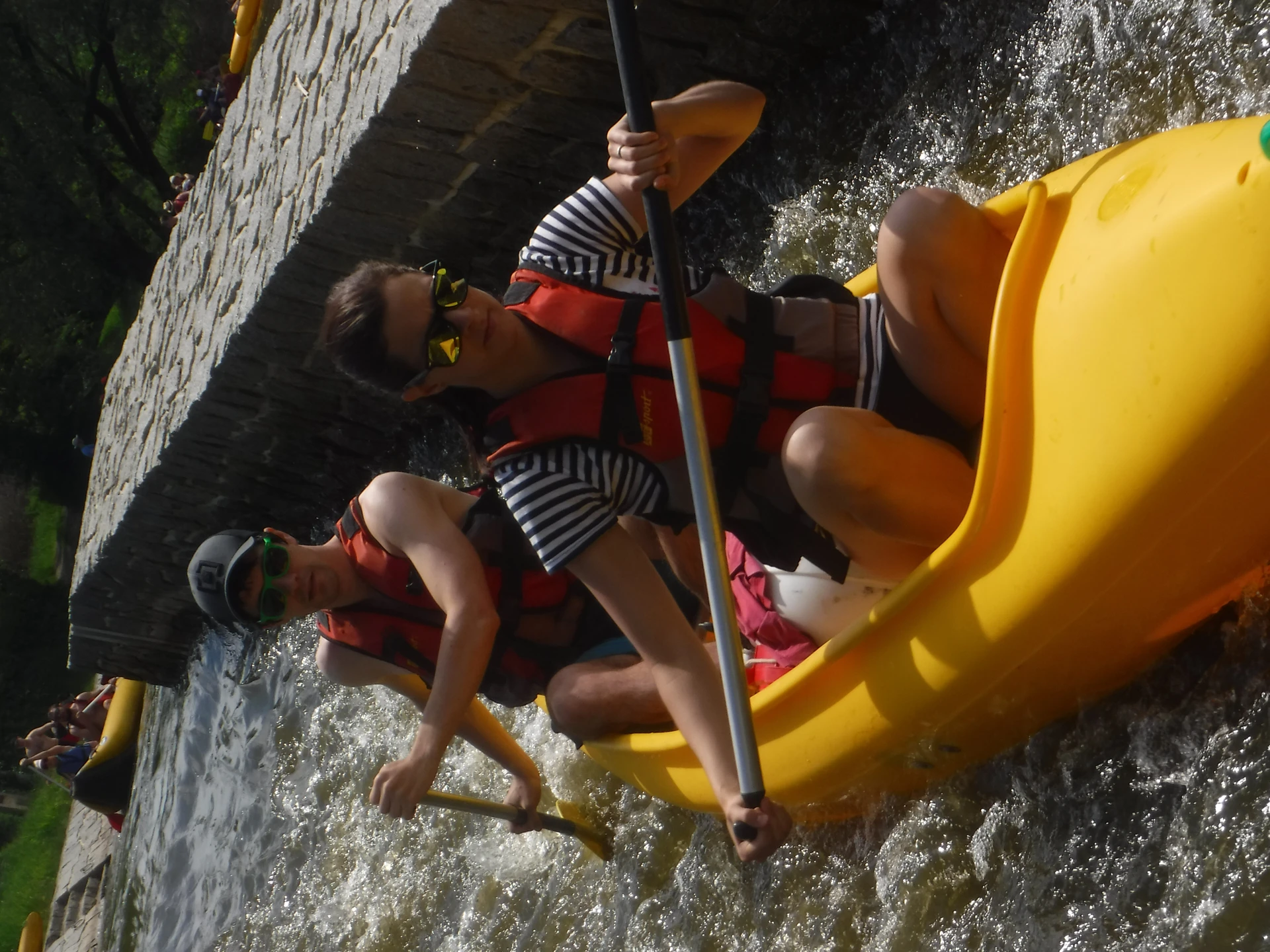 Přálo nám počasí i řeka sama. Zejména tím, že bylo slunečno a byl také dostatek vody, a tak jsme letos ani nedrhli o dno. Naopak! Jindy zdálky patrné kameny se letos ponořily těsně pod hladinu a v nejnevhodnějších okamžicích se nerozpakovaly některé z nás obrátit nedobrovolně dnem vzhůru… Nikde jinde, než mezi přáteli a kamarády, nenajdete více posměváčků, to si buďte jistí! Takže zatímco ze dna lodě lovíte mokrou housku a nacucané triko, dozvídáte se mnohé o vašem kormidelnickém stylu. Přitom na vodě každý ví, že za všechno zlé může jen a výhradně háček!