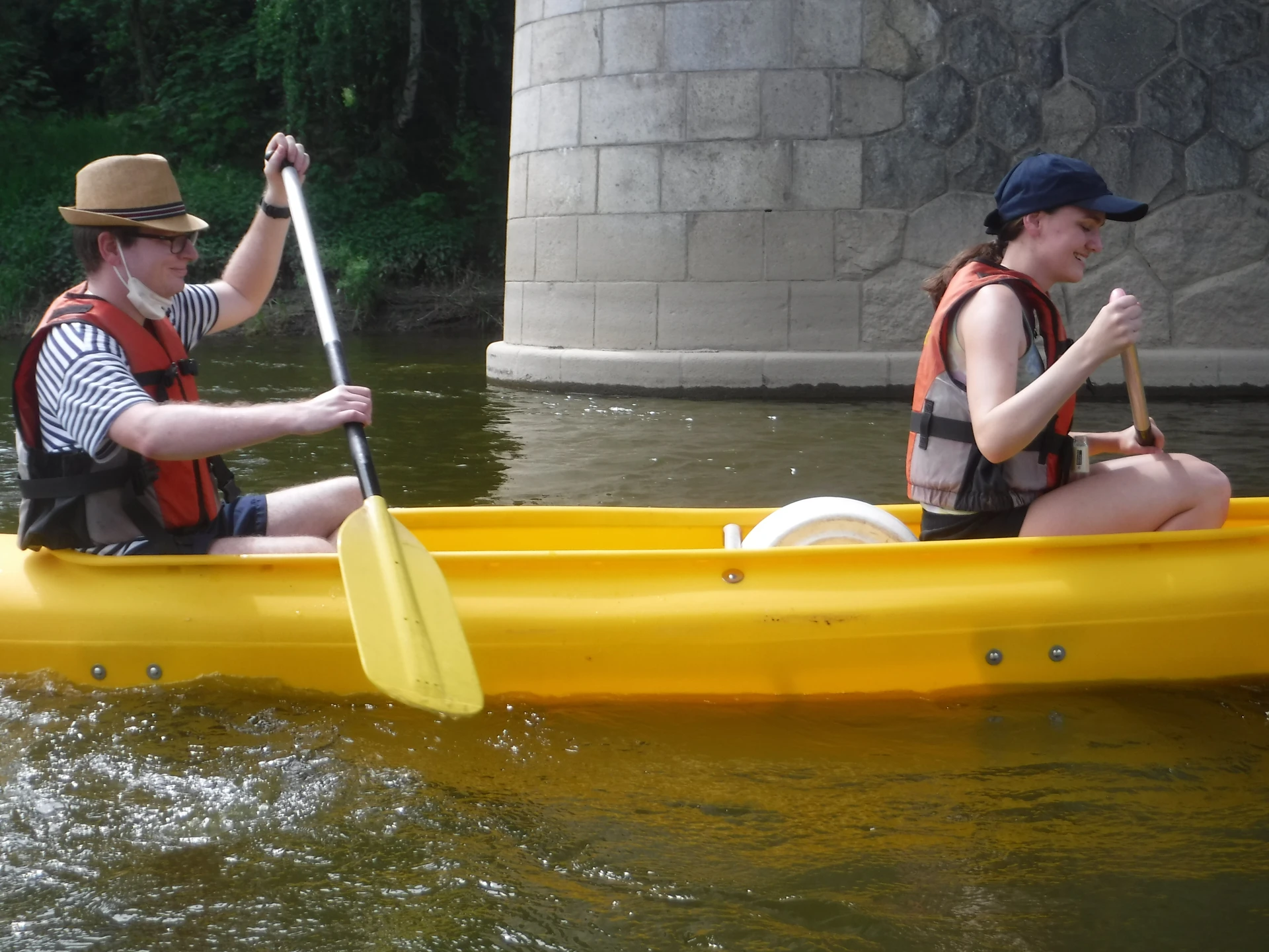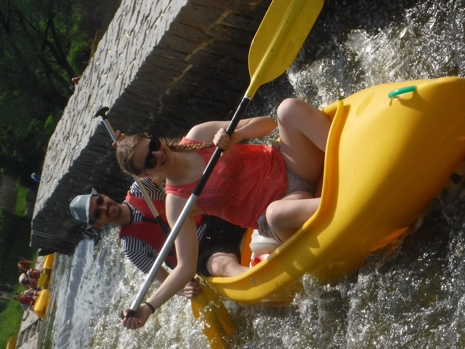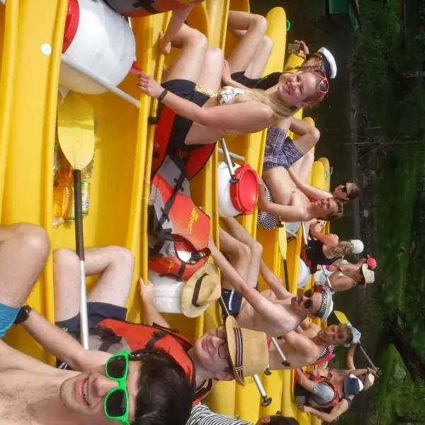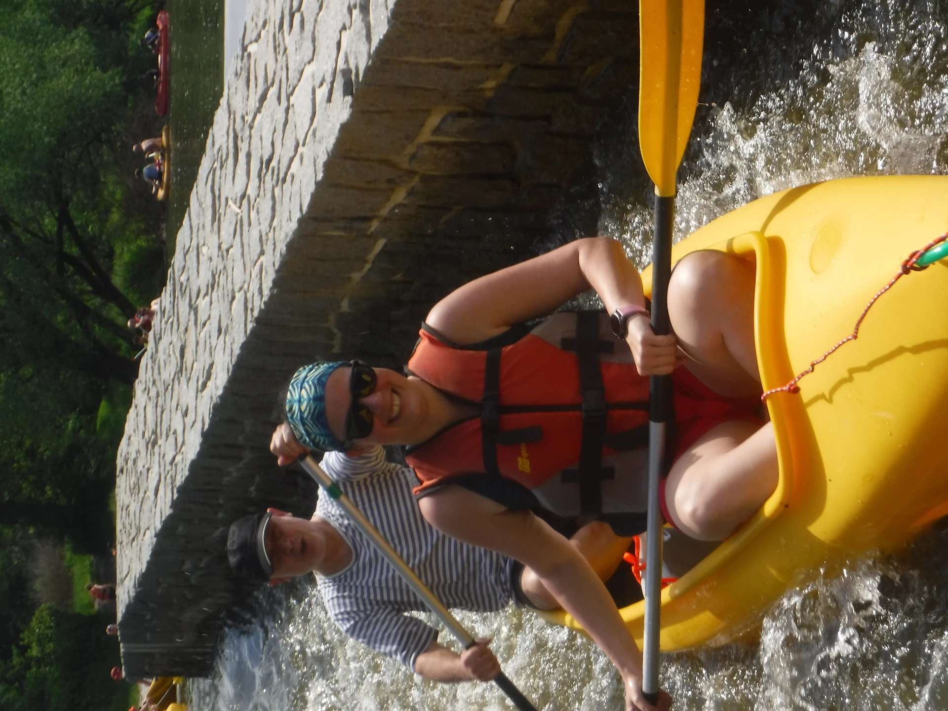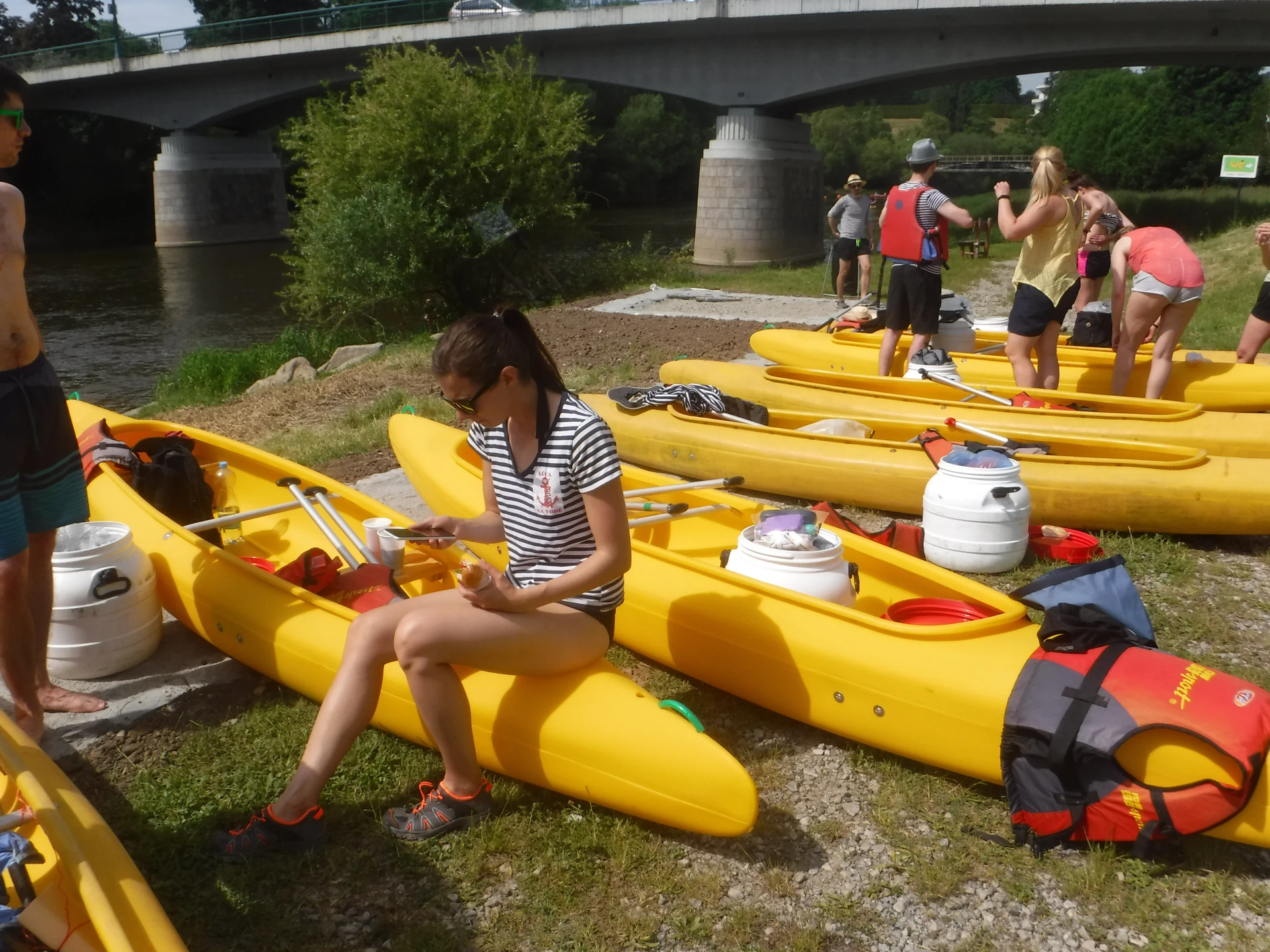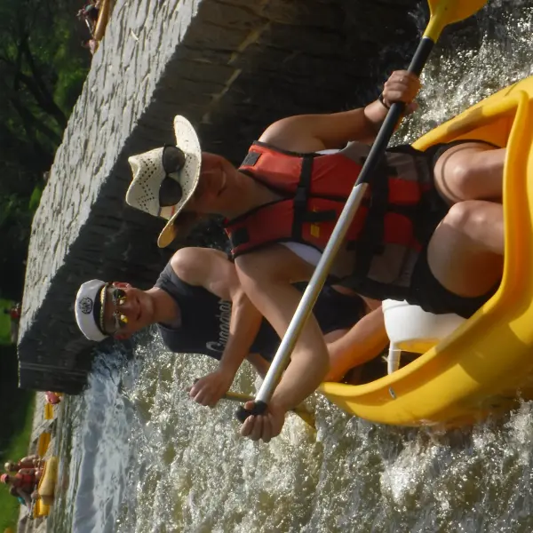 Přálo nám počasí i řeka sama. Zejména tím, že bylo slunečno a byl také dostatek vody, a tak jsme letos ani nedrhli o dno. Naopak! Jindy zdálky patrné kameny se letos ponořily těsně pod hladinu a v nejnevhodnějších okamžicích se nerozpakovaly některé z nás obrátit nedobrovolně dnem vzhůru… Nikde jinde, než mezi přáteli a kamarády, nenajdete více posměváčků, to si buďte jistí! Takže zatímco ze dna lodě lovíte mokrou housku a nacucané triko, dozvídáte se mnohé o vašem kormidelnickém stylu. Přitom na vodě každý ví, že za všechno zlé může jen a výhradně háček!