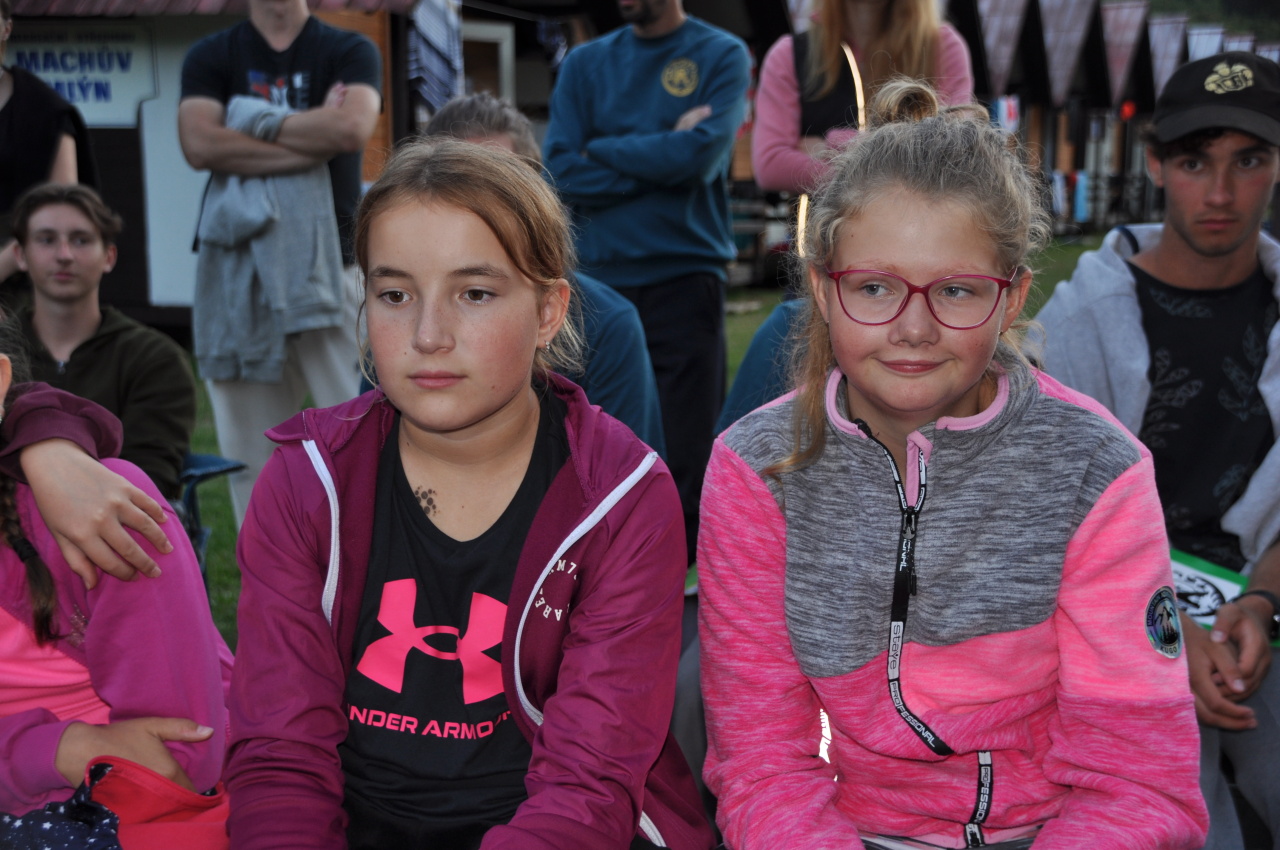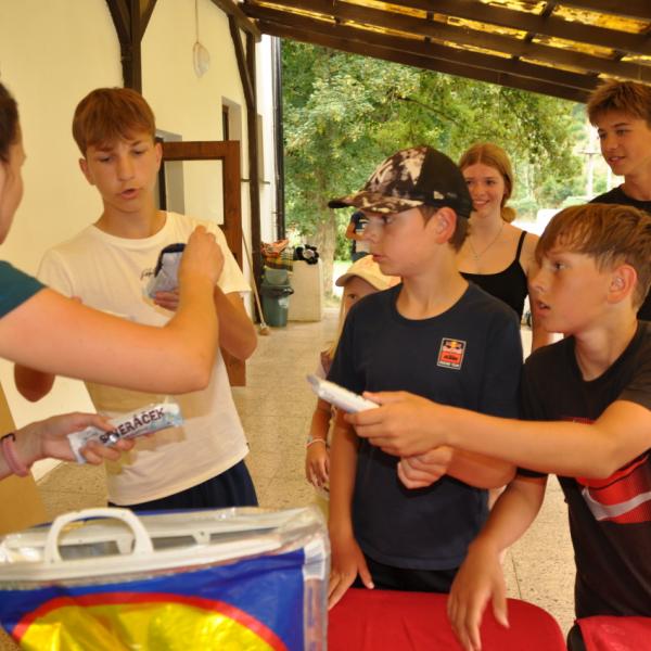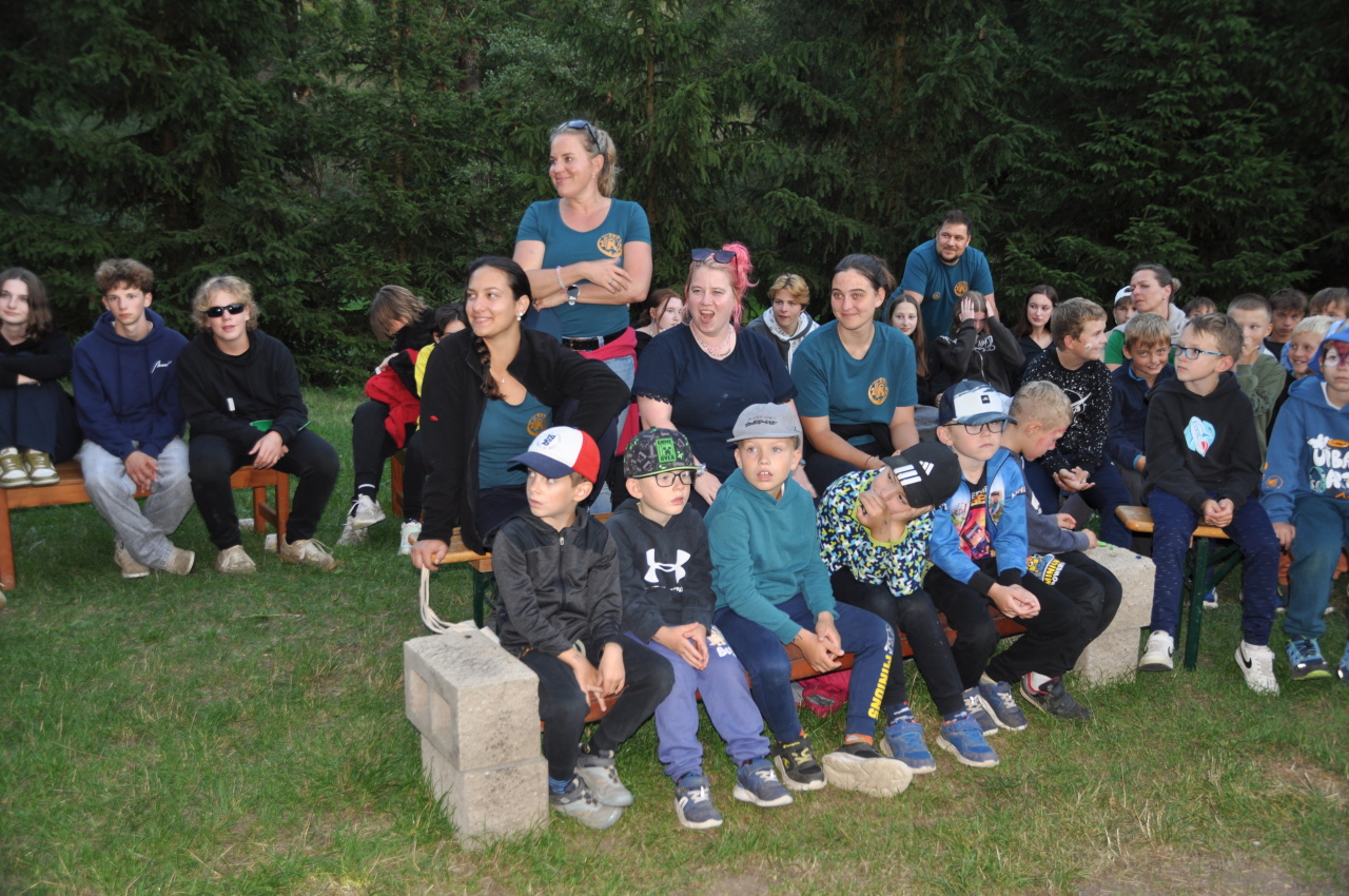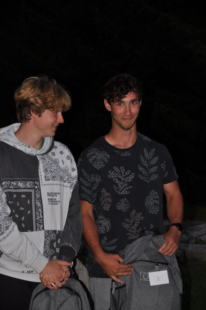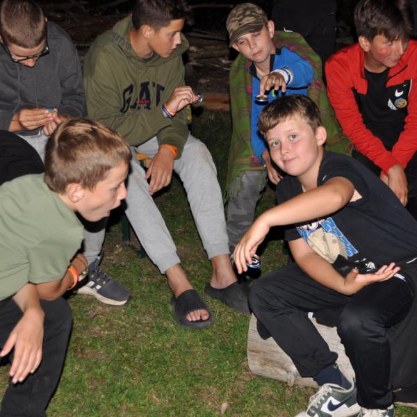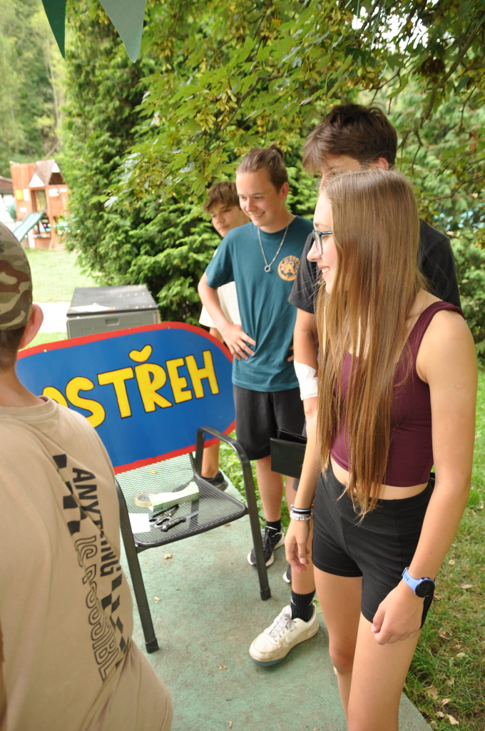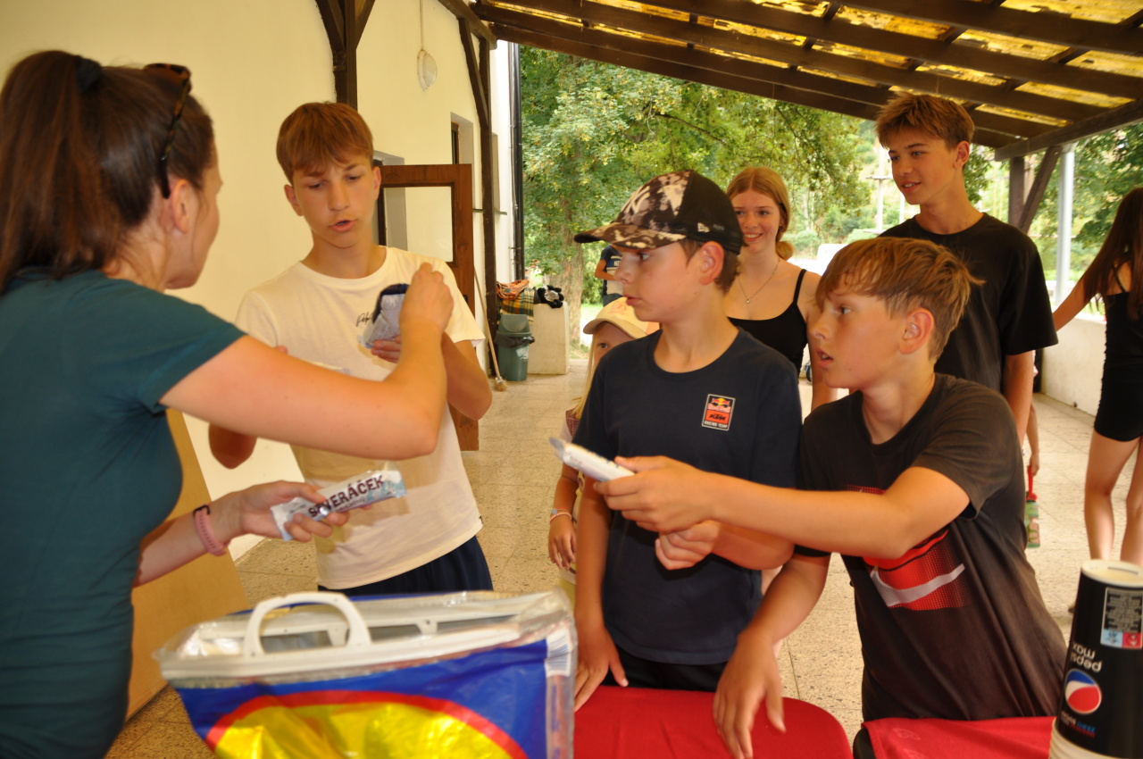 Večer jsme si udělali poslední táborák, zazpívali si "ty naše" a vyhlásili jsme nejlepší táborníky roku 2025. Pak jsme se předáním táborových triček rozloučili s našimi nejstaršími kamarády z devátého a desátého oddílu, kteří po prázdninách nastupují na střední školu a přichází tak o možnost v dalším roce jet jako táborník s námi na Dvojku. Na druhou stranu se jim otevírá možnost užít si náš tábor v pozici juniorů, tak uvidíme, kolik z nich tuto exkluzivní možnost v příštím roce využije.