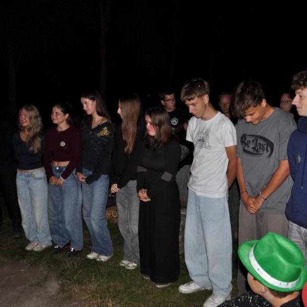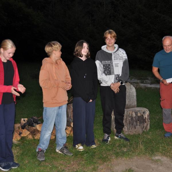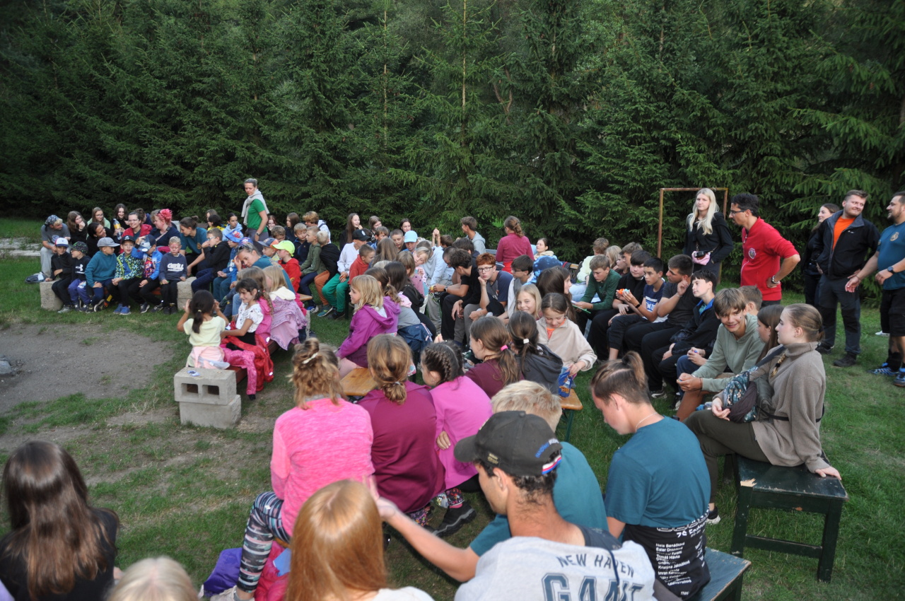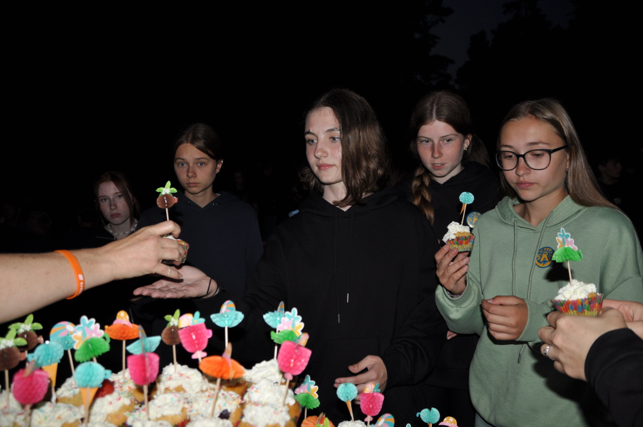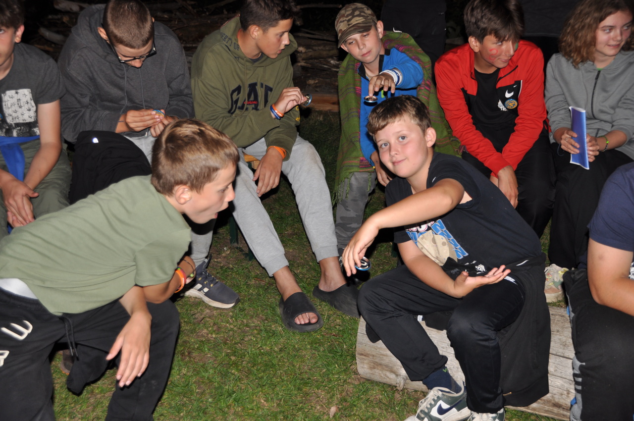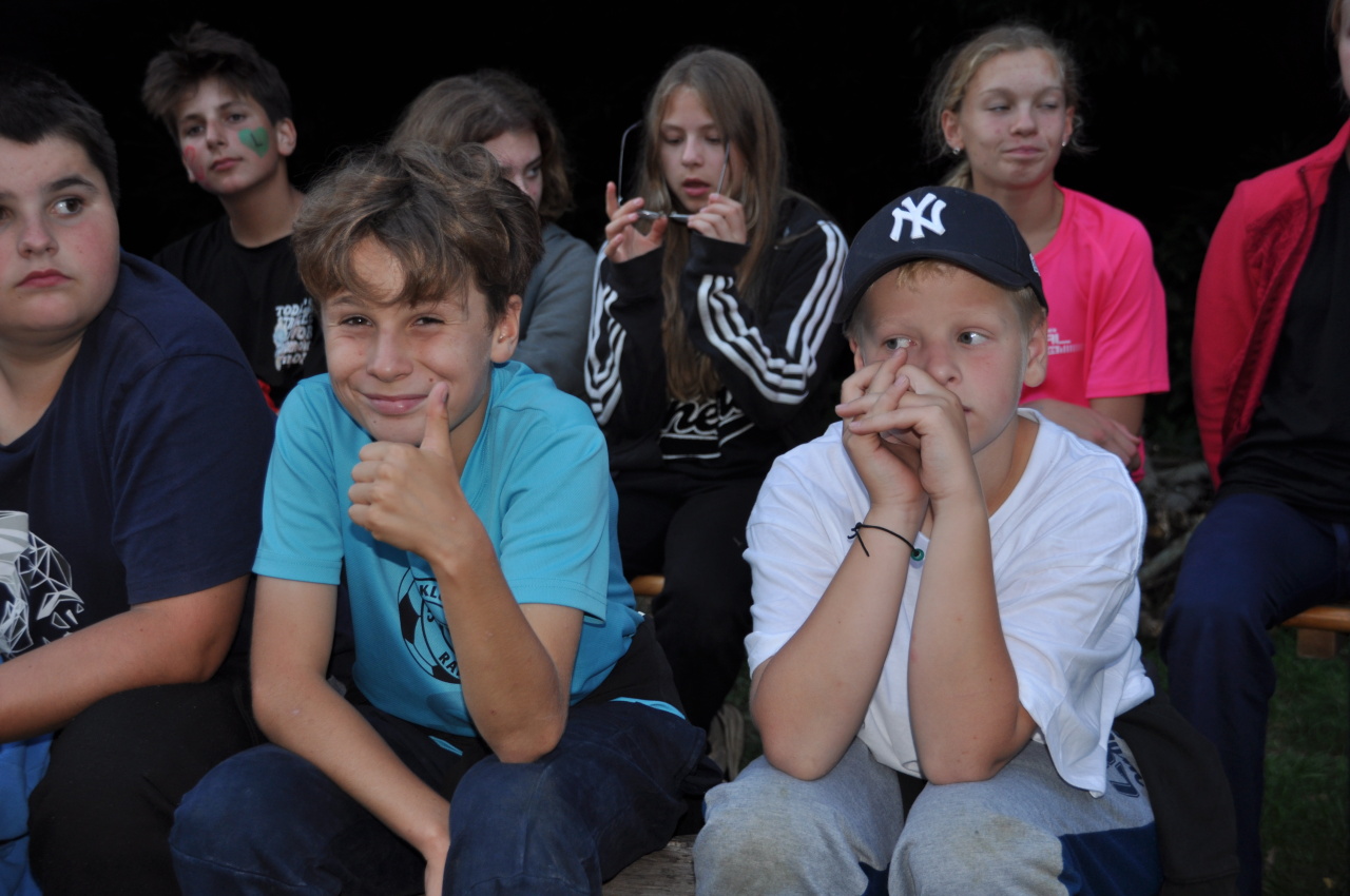 Večer jsme si udělali poslední táborák, zazpívali si "ty naše" a vyhlásili jsme nejlepší táborníky roku 2025. Pak jsme se předáním táborových triček rozloučili s našimi nejstaršími kamarády z devátého a desátého oddílu, kteří po prázdninách nastupují na střední školu a přichází tak o možnost v dalším roce jet jako táborník s námi na Dvojku. Na druhou stranu se jim otevírá možnost užít si náš tábor v pozici juniorů, tak uvidíme, kolik z nich tuto exkluzivní možnost v příštím roce využije.