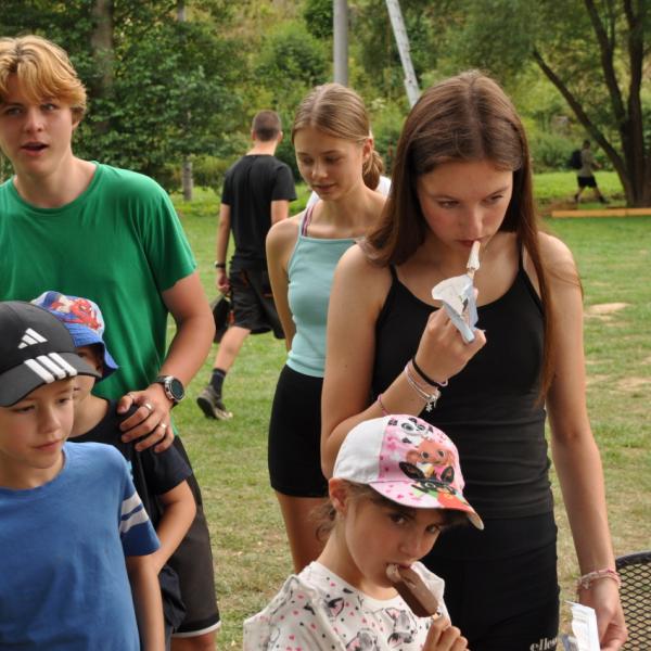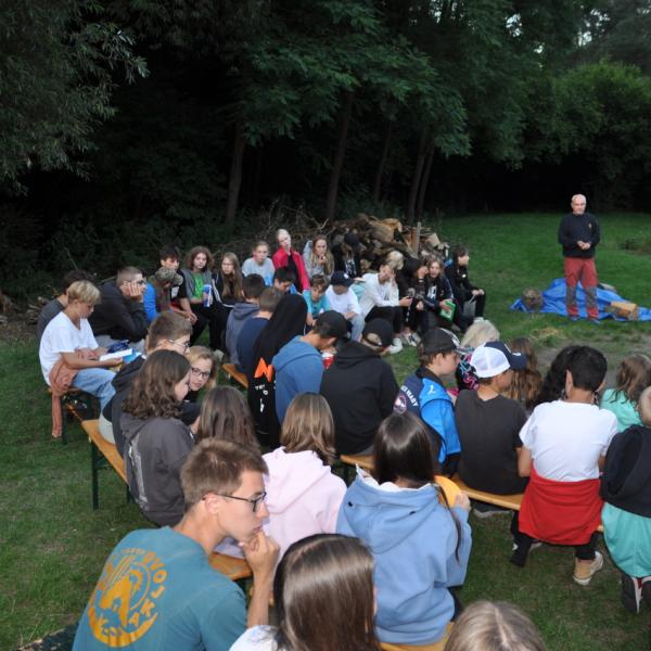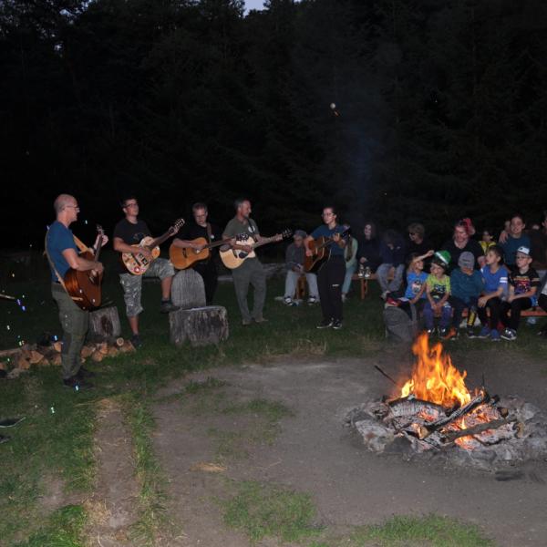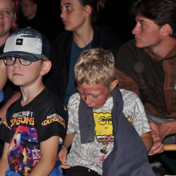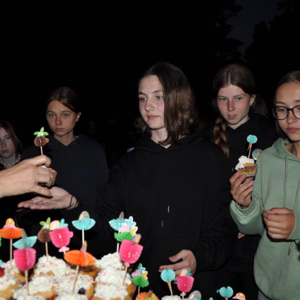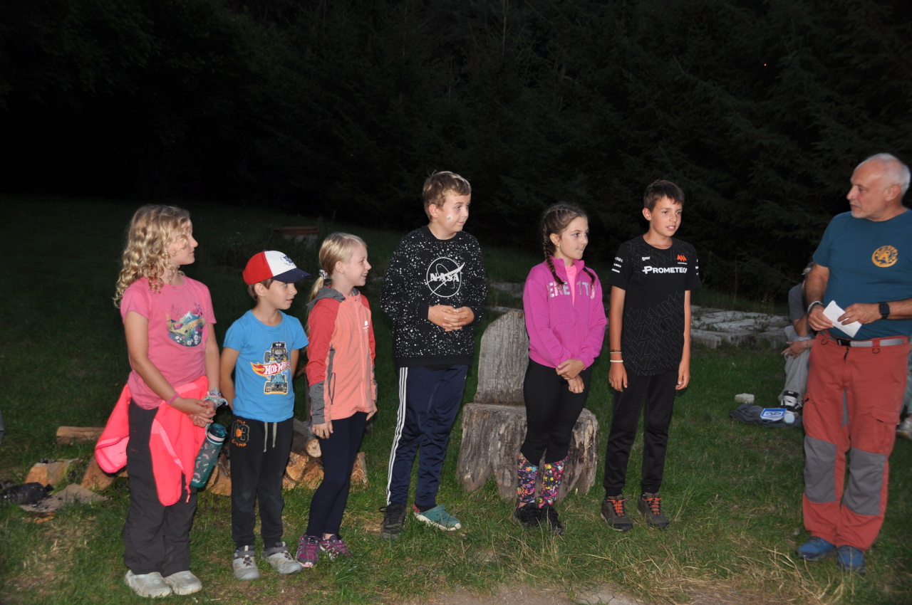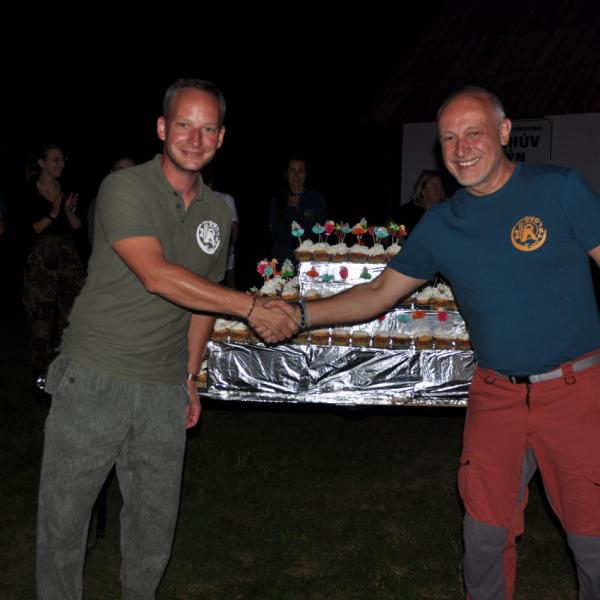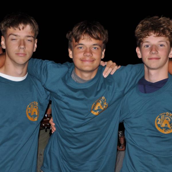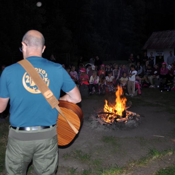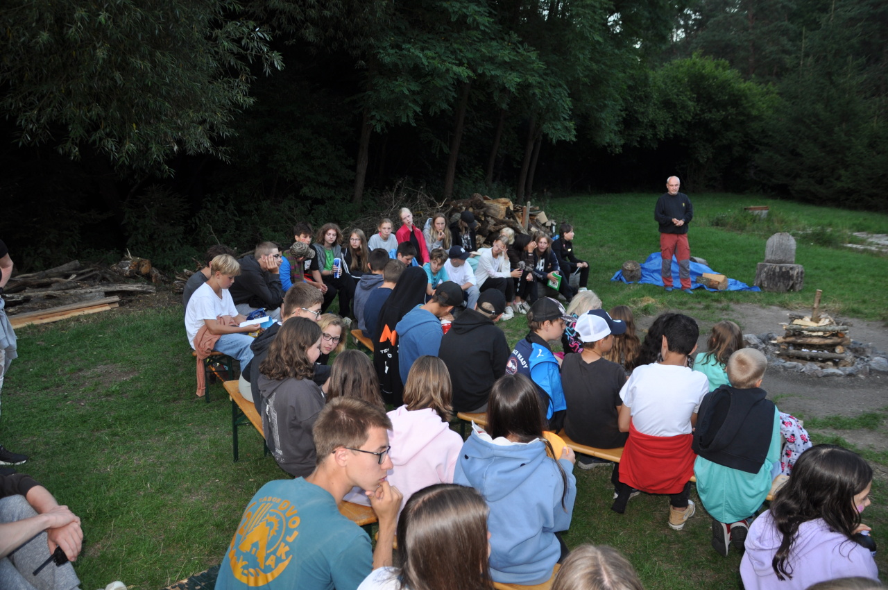 Večer jsme si udělali poslední táborák, zazpívali si "ty naše" a vyhlásili jsme nejlepší táborníky roku 2025. Pak jsme se předáním táborových triček rozloučili s našimi nejstaršími kamarády z devátého a desátého oddílu, kteří po prázdninách nastupují na střední školu a přichází tak o možnost v dalším roce jet jako táborník s námi na Dvojku. Na druhou stranu se jim otevírá možnost užít si náš tábor v pozici juniorů, tak uvidíme, kolik z nich tuto exkluzivní možnost v příštím roce využije.