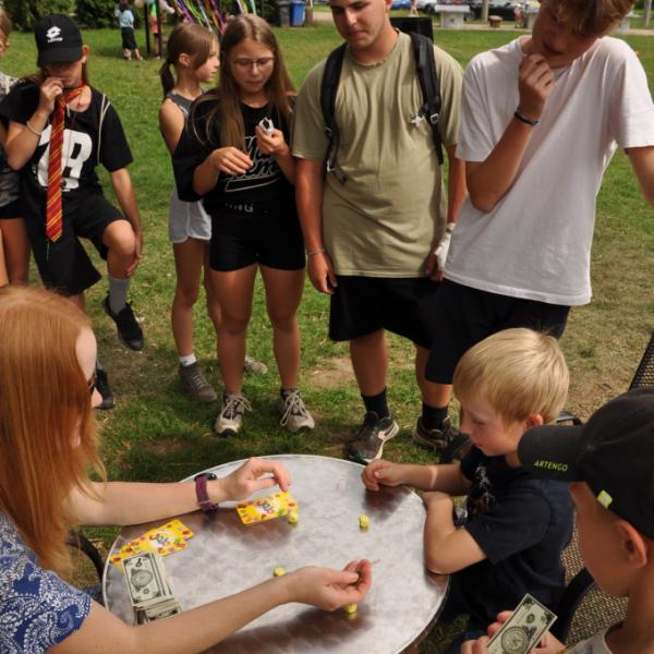 My jsme se v soboru rozloučili s Dvojkou jak nejlépe jsme mohli a uměli. Dopoledne jsme převážně uklízeli a balili (zábava nic moc, ale udělat se to musí). Odpoledne už to byla pohříchu lepší zábava, protože k nám přijela pouť. Mno, nebyla ro skutečná, opravdová pouť, jak ji znáte, ale pouť táborová. Na skoro dvou desítkách atrakcí si mohli táborníci vysoutěžit táborové penízky a ty pak utrácet v krámku. K tomu nanuk, točená limonáda, popkorn, hudba, sluníčko, no koho by to nebavilo!