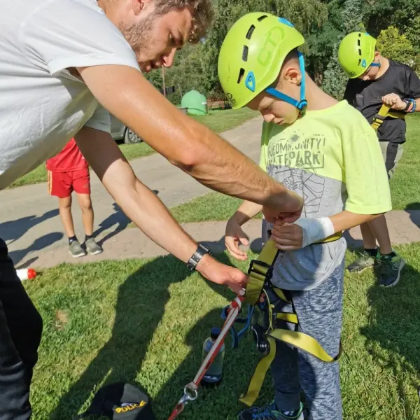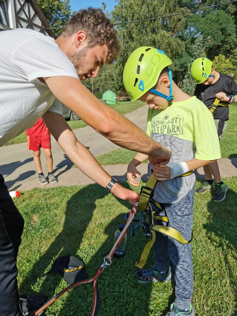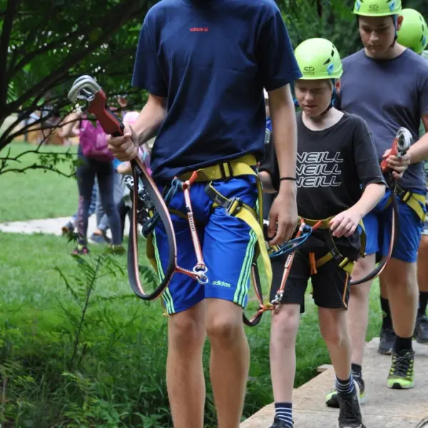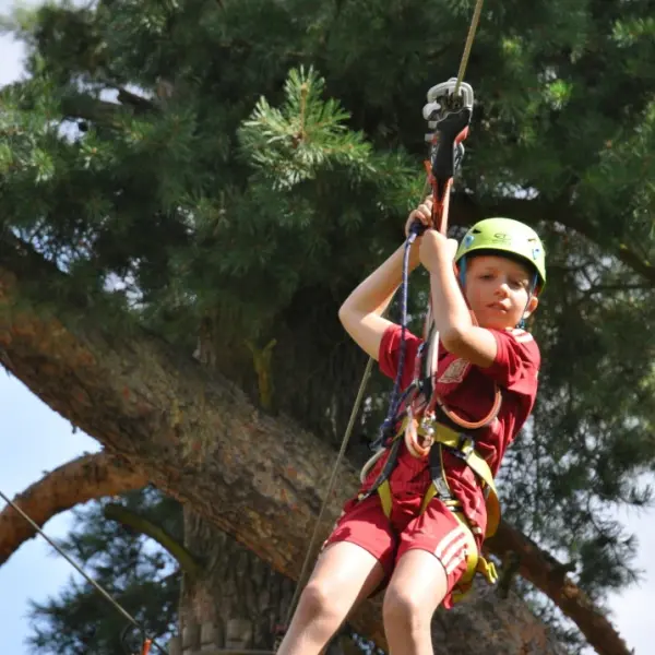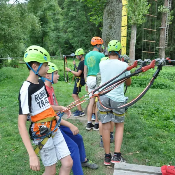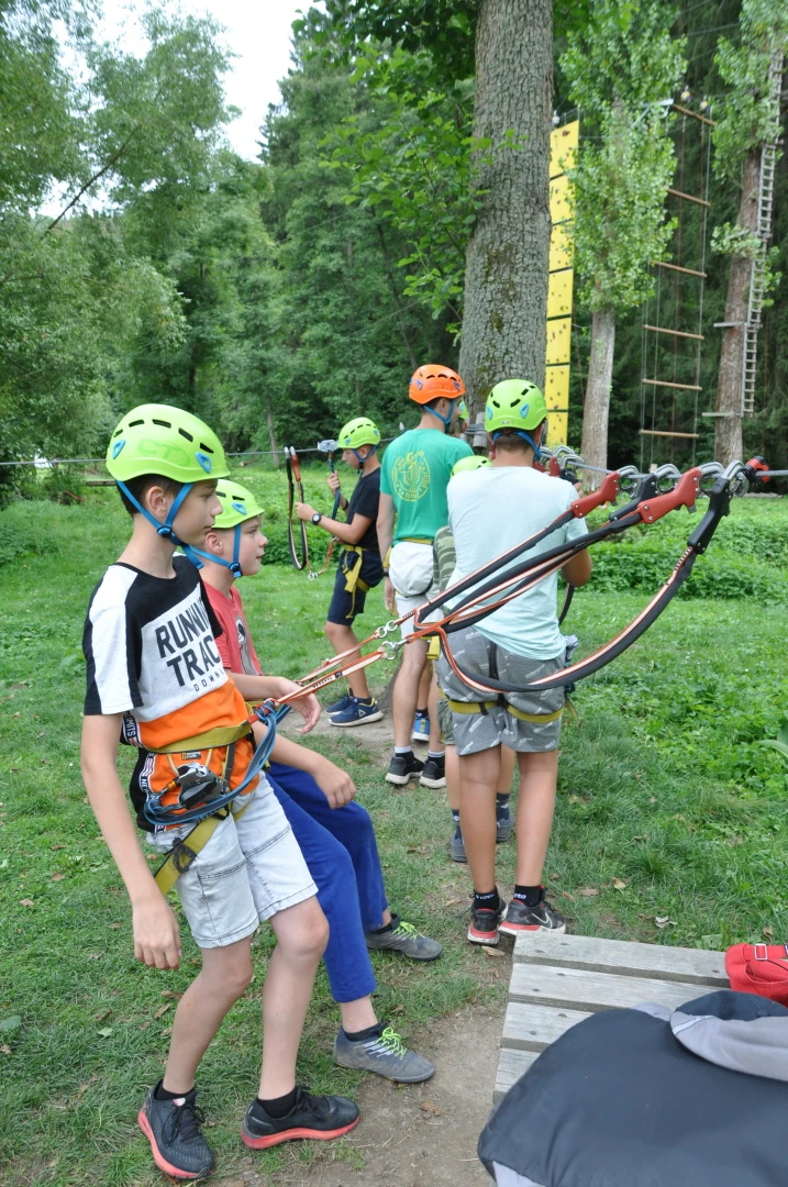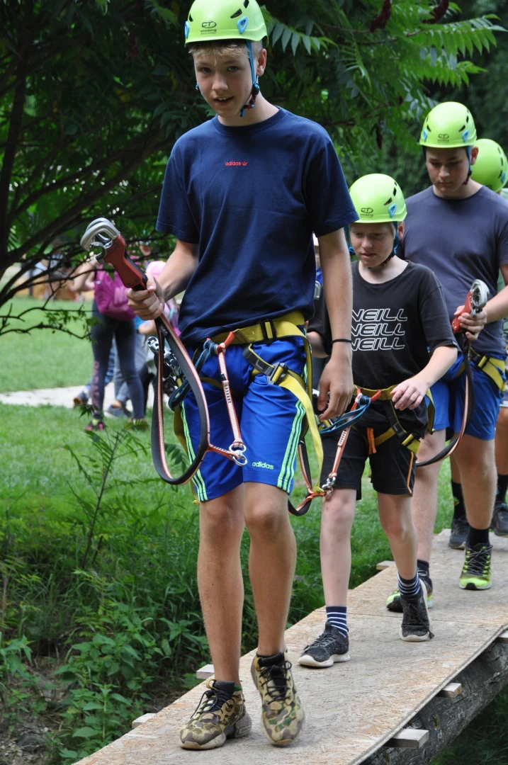 Lanové centrum má velký úspěch! Dneska i devítiletí kluci zdárně prolezli celé centrum včetně nejtěžších překážek a dali si dlouhý skluz. Jsou to pašáci.
