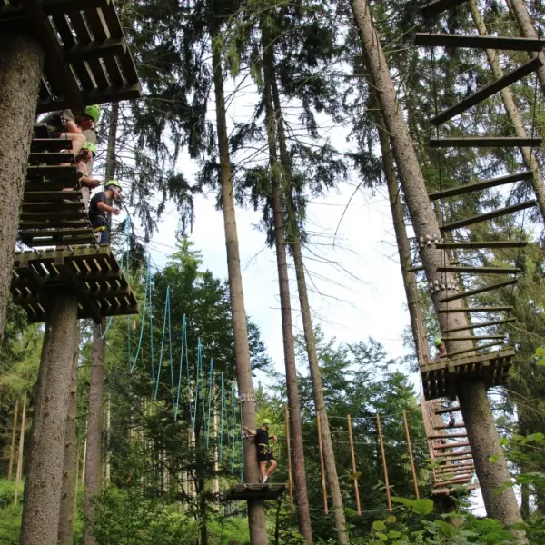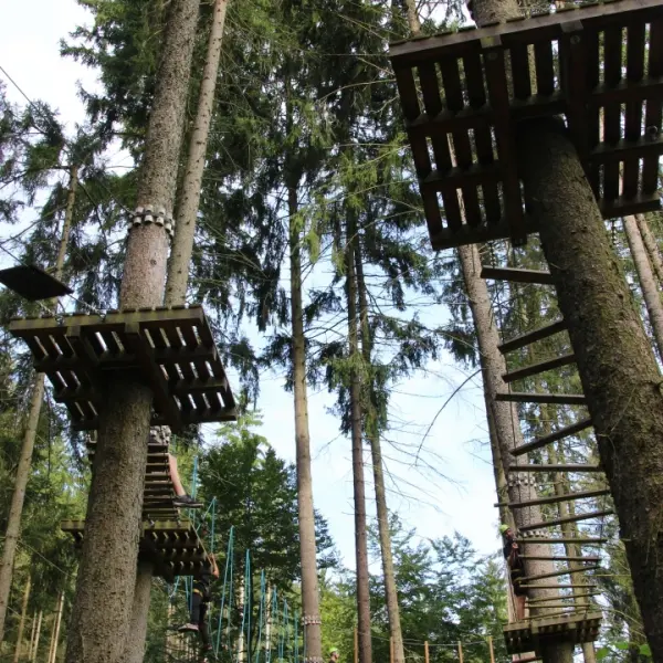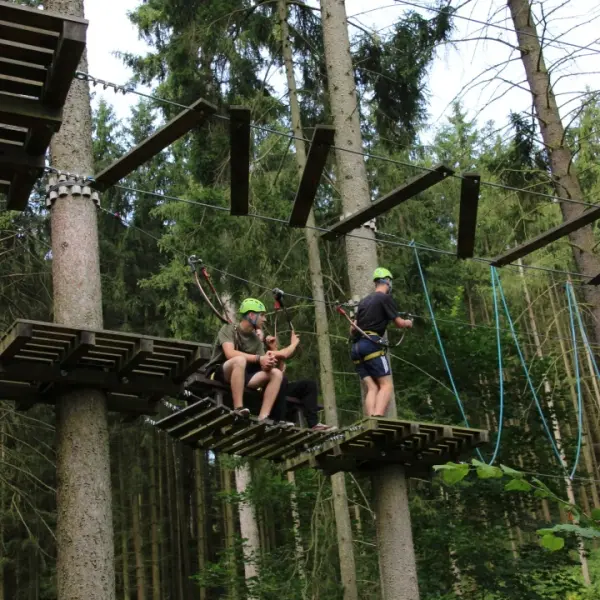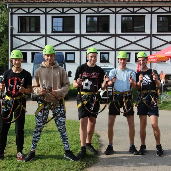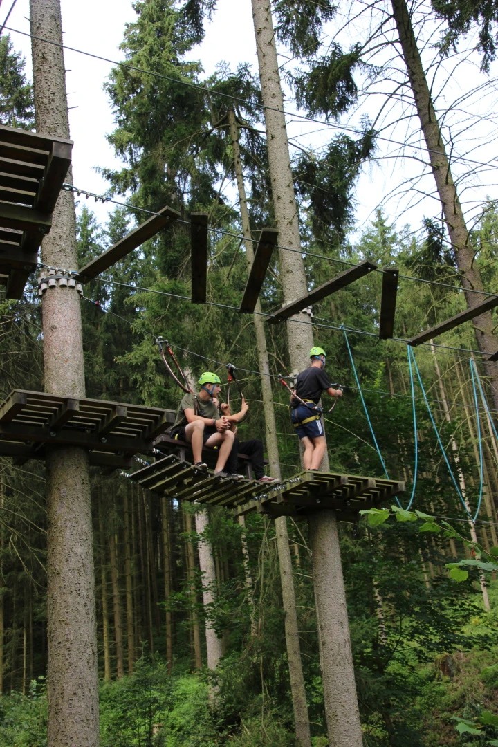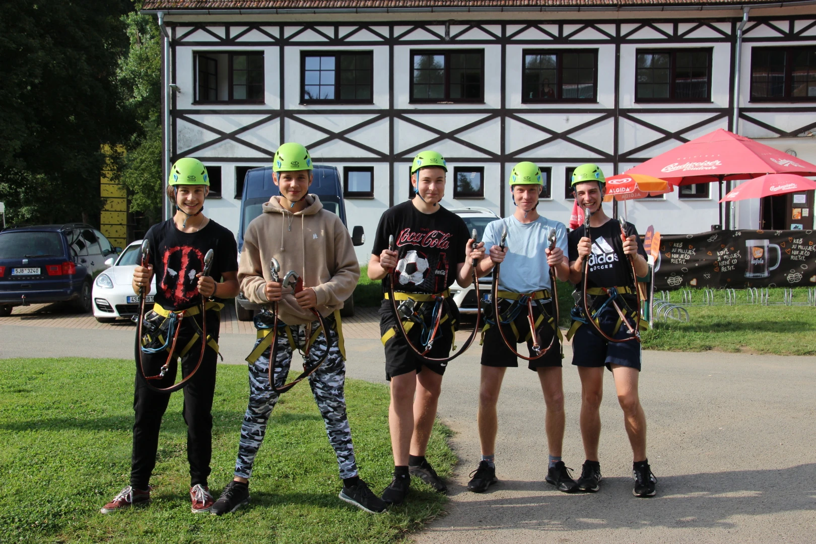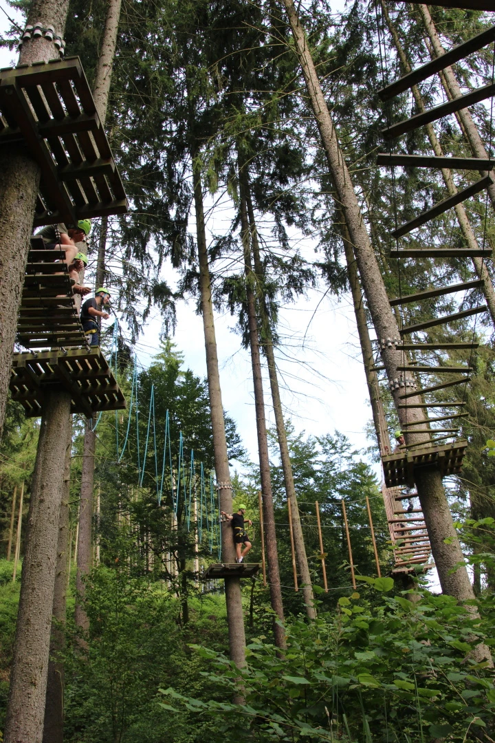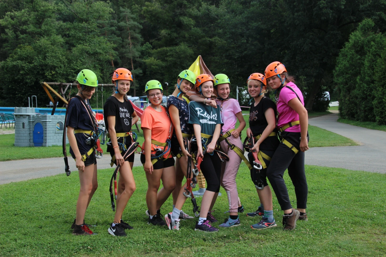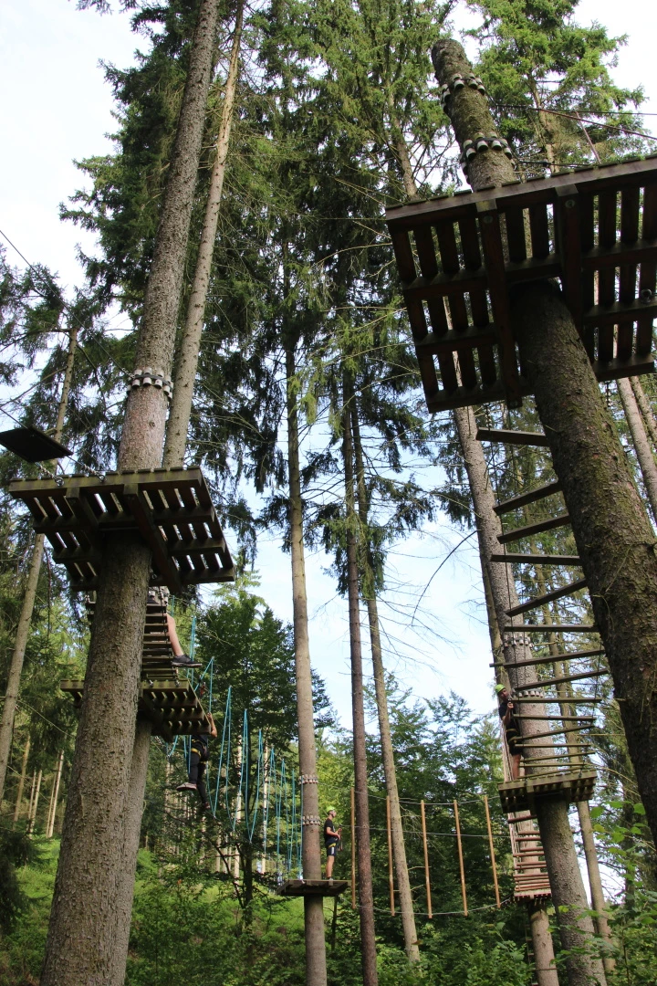 Dneska (tedy v úterý, kdo ví, kdy se nám podaří opět připojit online a tenhle textík vylepit na web) jsme rozjeli lanové centrum. A je to parádní zážitek, můžeme všem jen doporučit. O děti se stará profesionální instruktor, takže děti se naučí i lézt do úvazku, správně se jistit apod. A když jedete 5 metrů nad střechami chatiček na několik desítek metrů dlouhém skluzu, je to vážně pecka!