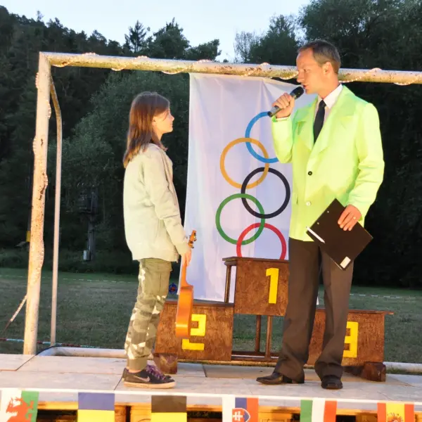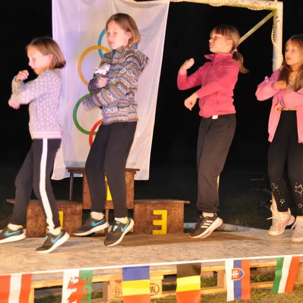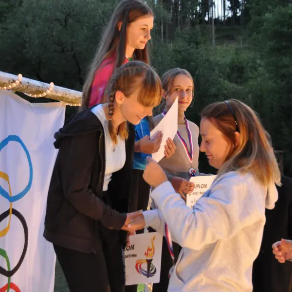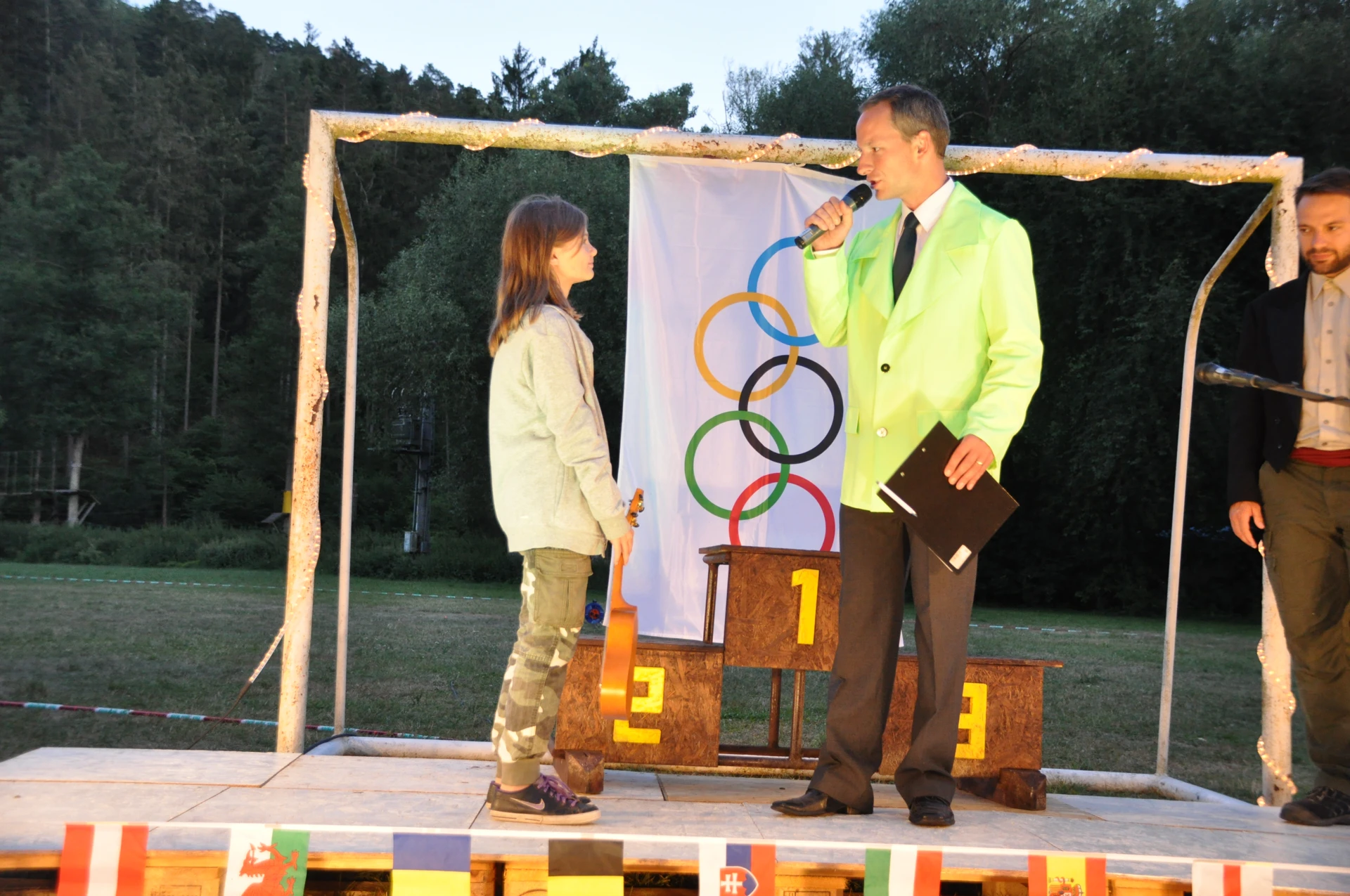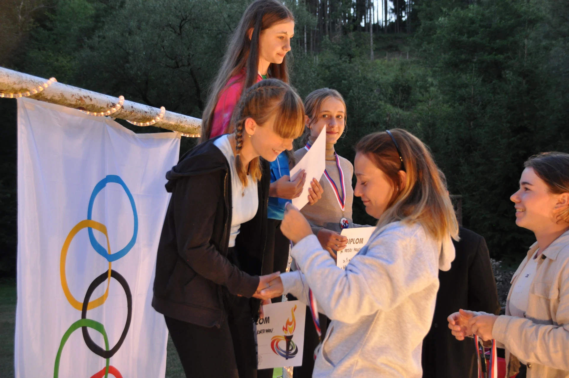 Po večeři jsme oblékli slavnostní garderoby a s napětím sledovali galavečer „Sportovec roku“, při kterém byli ohodnoceni nejúspěšnější sportovci. Zlatým hřebem bylo vyhlášení sportovce roku v každé kategorii – tedy toho, kdo nasbíral nejvíce medailí ze všech disciplín. Večerem nás doprovázela dechberoucí umělecká vystoupení našich kamarádů a celý olympijský den jsme úspěšně ukončili za mohutného aplausu…
