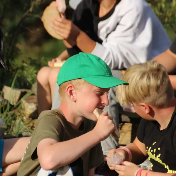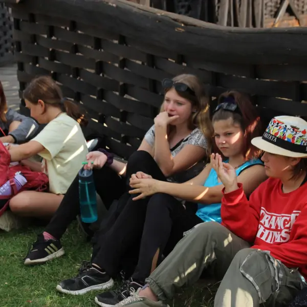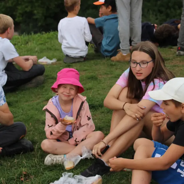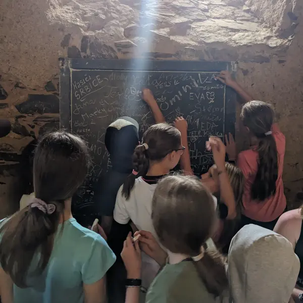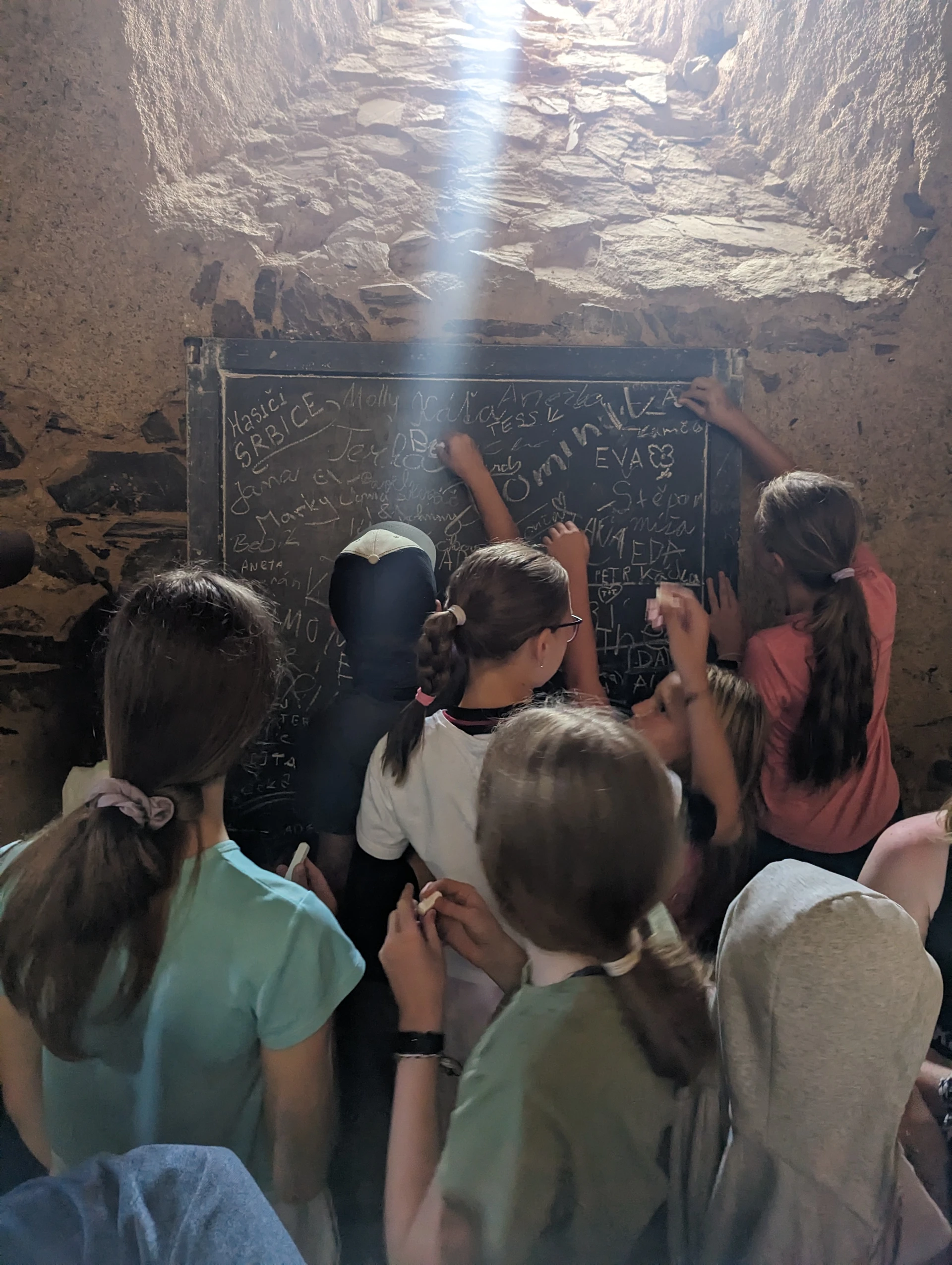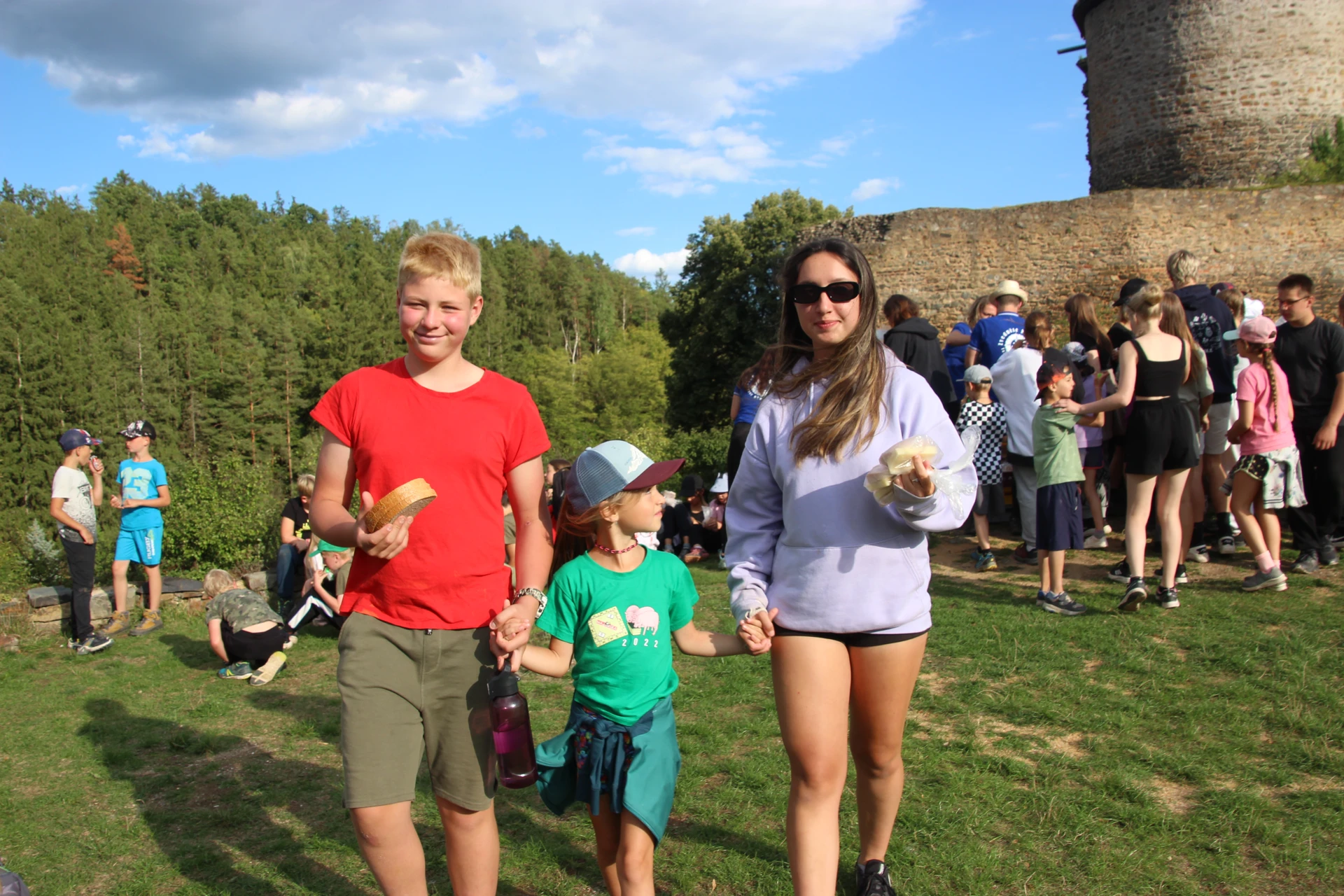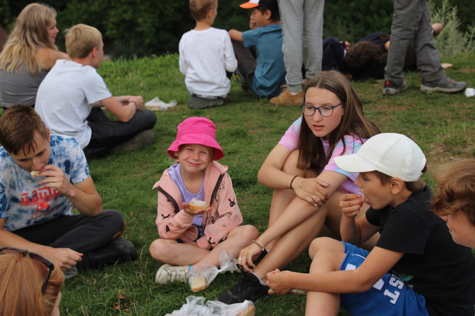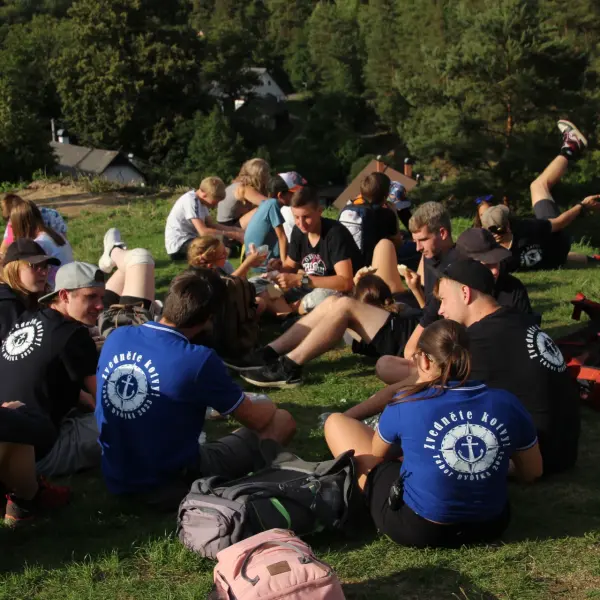 Už sama cesta byla dobrodružná. Přestože se po předchozích deštích cesta jevila být často blátivá a brody na první pohled nevypadaly jako schůdné suchou nohou, zvládli VŠICHNI naši kamarádi dorazit několikakilometrovou trasu se zcela suchými botkami. Vděčíme za to nejen odpovědným vedením našich dospělých kamarádů, ale také týmovému duchu, kdy se starší táborníci mnohdy spontánně chápali role pomahačů a přenašečů. My dospělí táborníci jsme na ně byli hrdí!