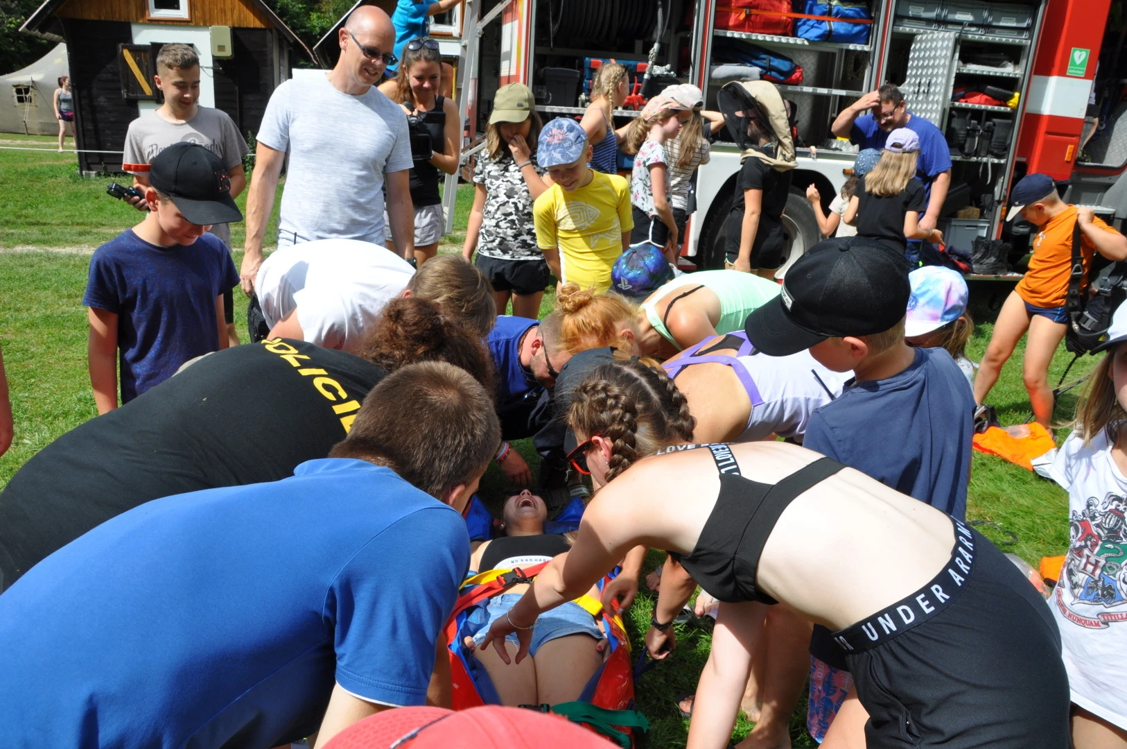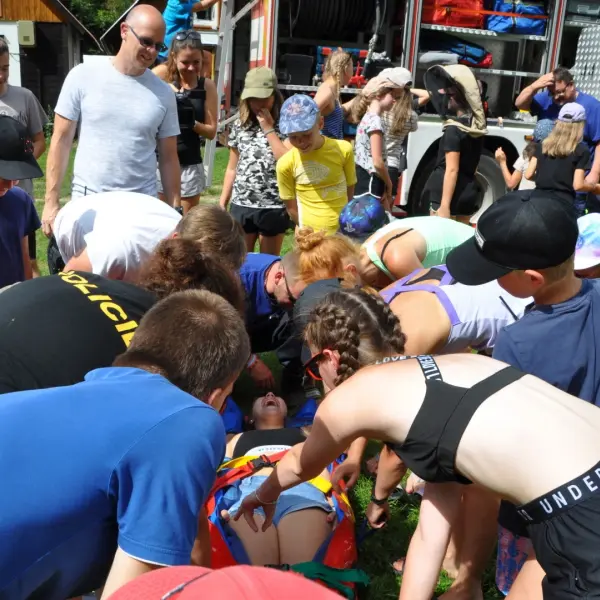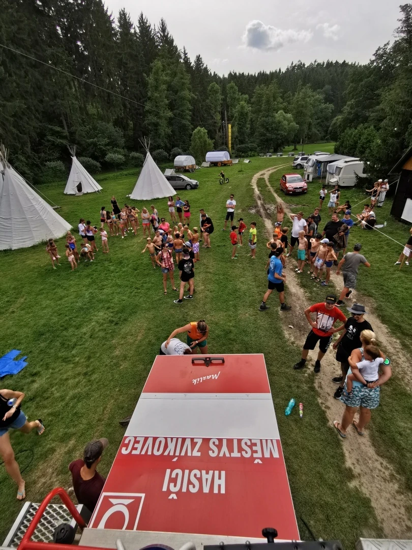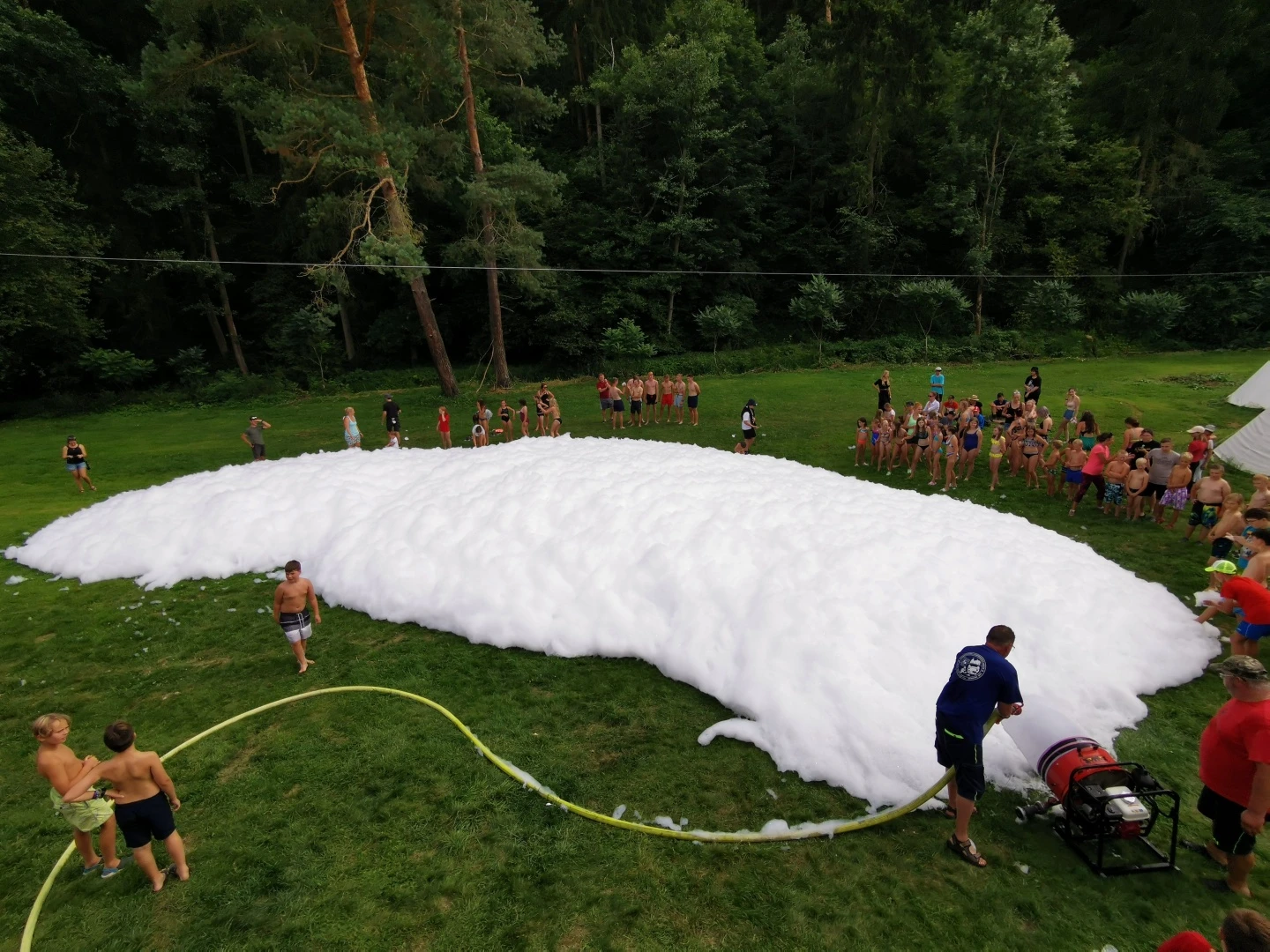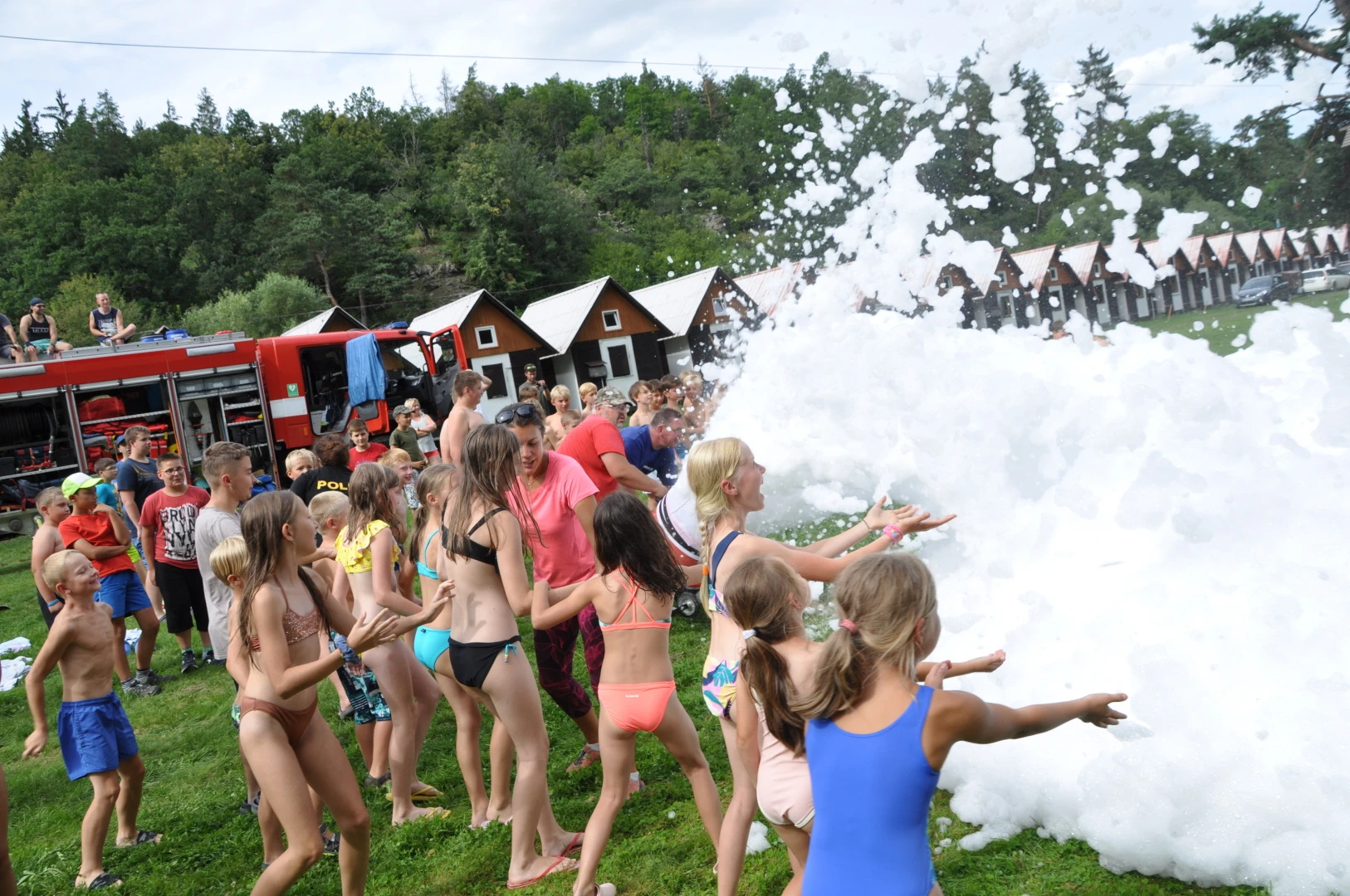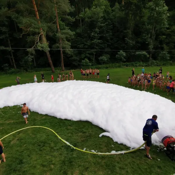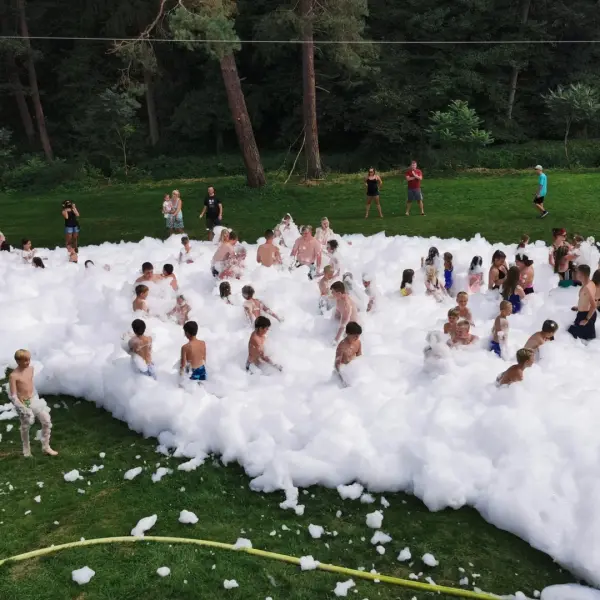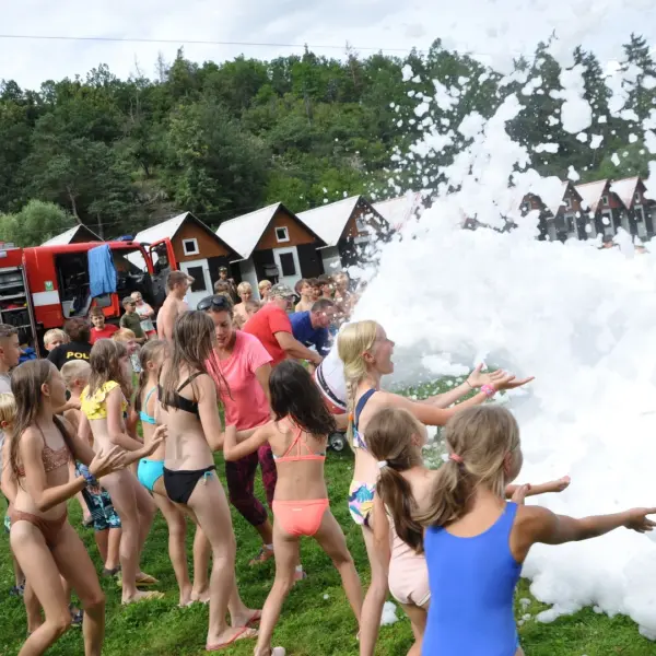 Na závěr nám hasiči vykouzlili parádní aktivitu – vodní pěnu! Malé děti se v ní doslova ztratily (nebojte, všechny jsme zase našli…). Po skončení akce marodka hlásila 0 ošetření a nám se dost ulevilo :D.