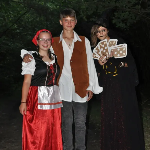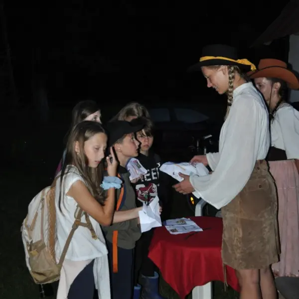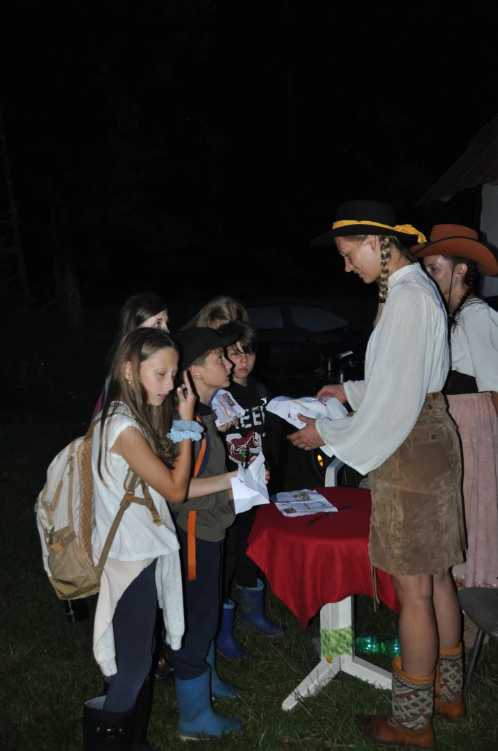 Večer se potom konal pohádkový les, další tradiční táborová dominanta. Osadníci ze dvou nejstarších oddílu připraví krátkou procházku pro čtyři nejmenší oddíly, na které na ně čeká několik stanovišť se zábavnými úkoly. A tuhle aktivitu máme rádi i my, dospělí, hlavně pro to, že se na nejstarších dětech docela dobře projeví potenciál nutný do výbavy budoucích praktikantů. A my věříme, že pár takových prágošů mezi dětmi určitě nalezneme ;).