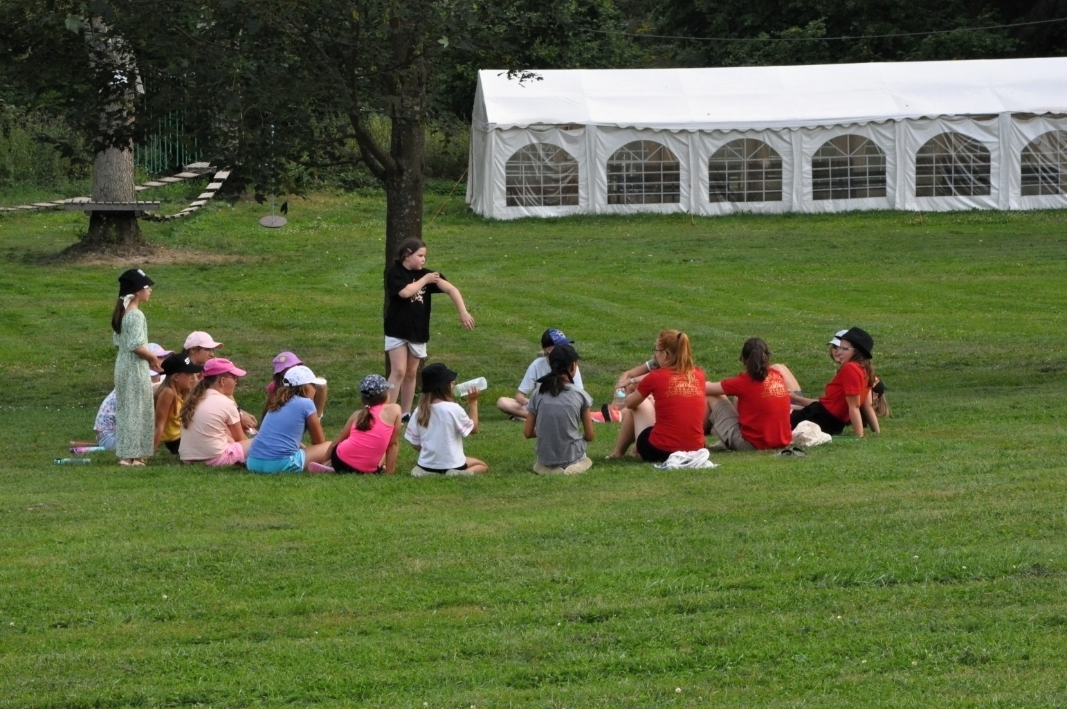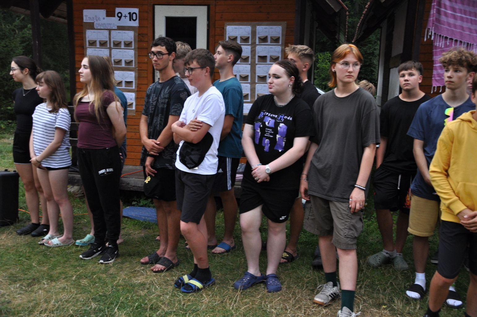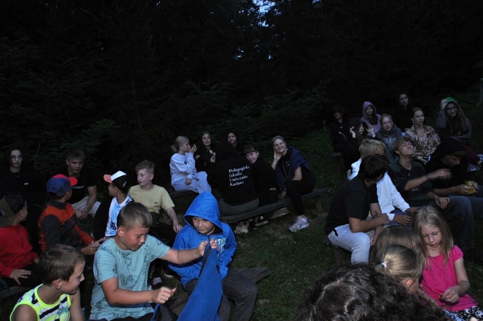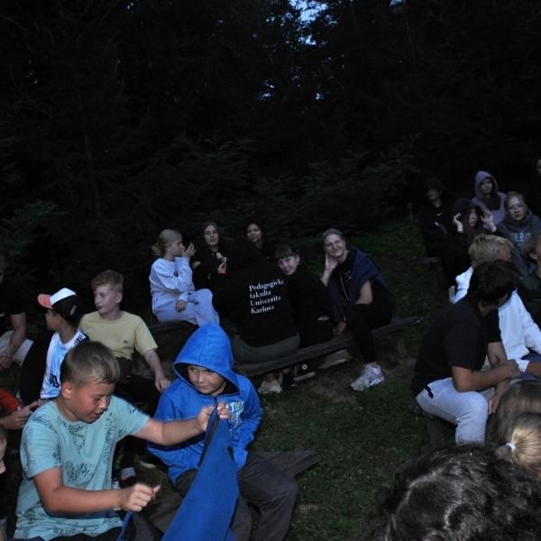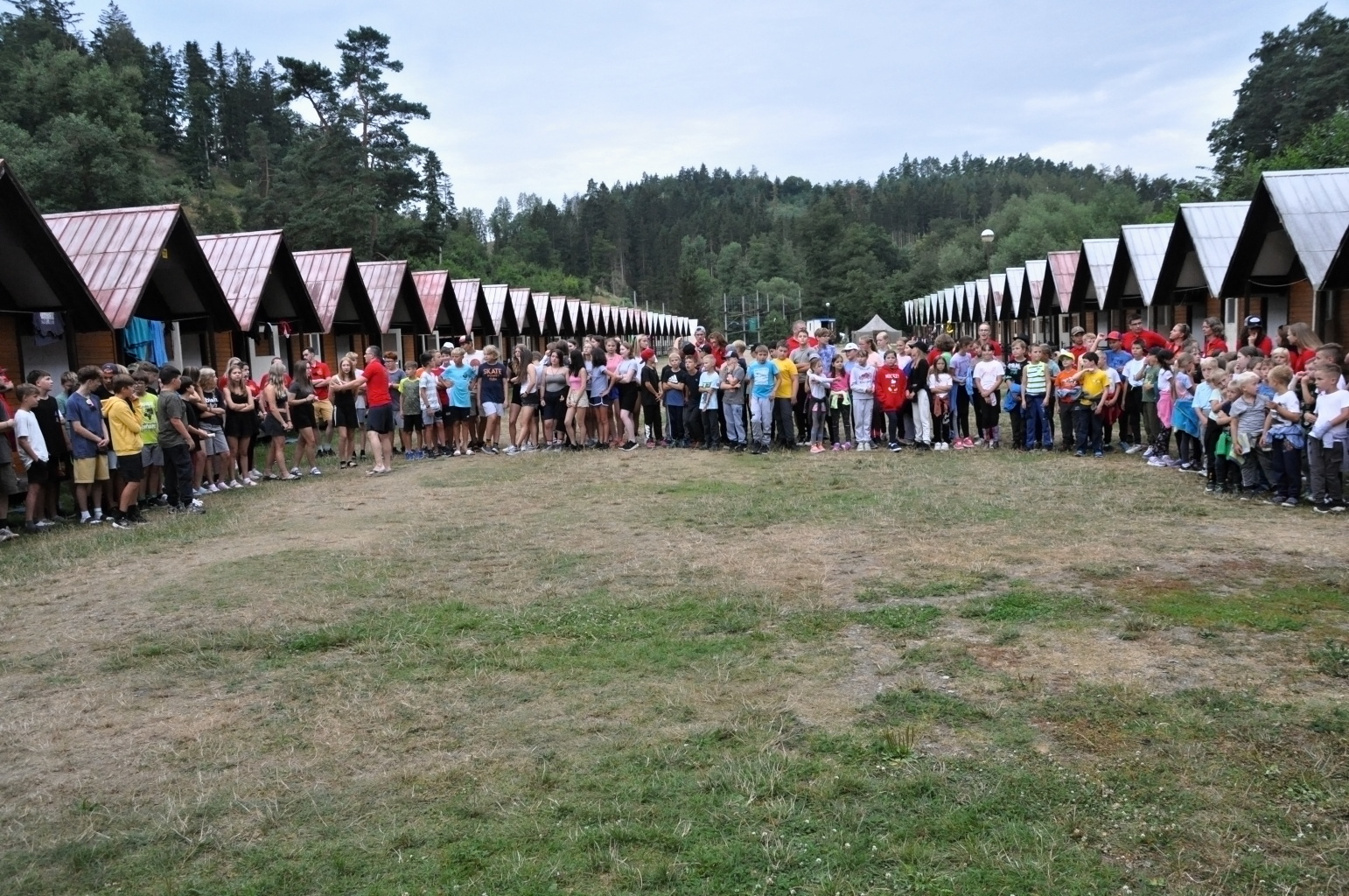 Den příjezdu je takovým nultým dnem tábora. Nebo alespoň my to tak trochu máme. Vybalit a ubytovat děti, projít areál a připomenout si, kde se co vlastně nachází, podívat se na novinky, které v areálu během roku přibyly, sníst od maminky přibalený řízek (nebo spíš schroupat chipsy)... No a pak už večeře, první slavnostní táborový nástup a po nástupu zahajovací táborák.