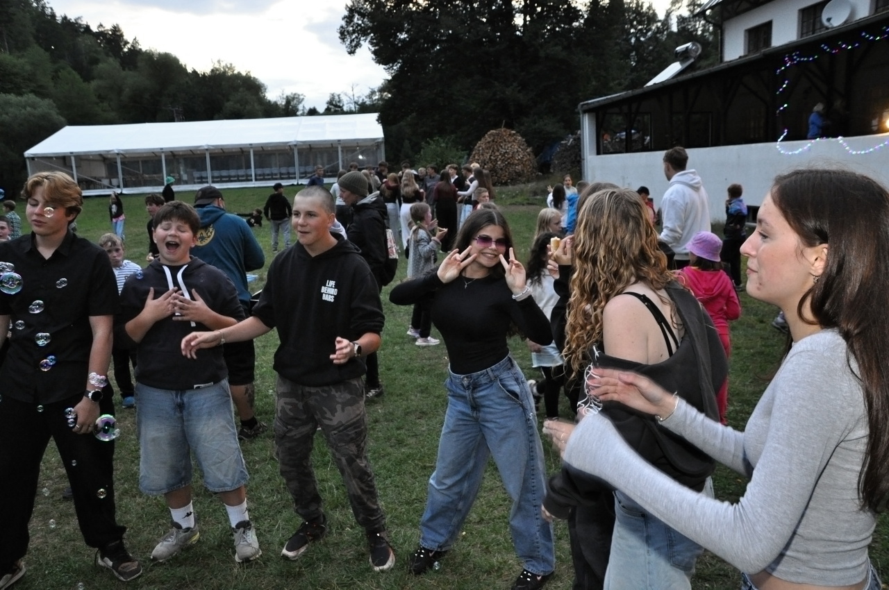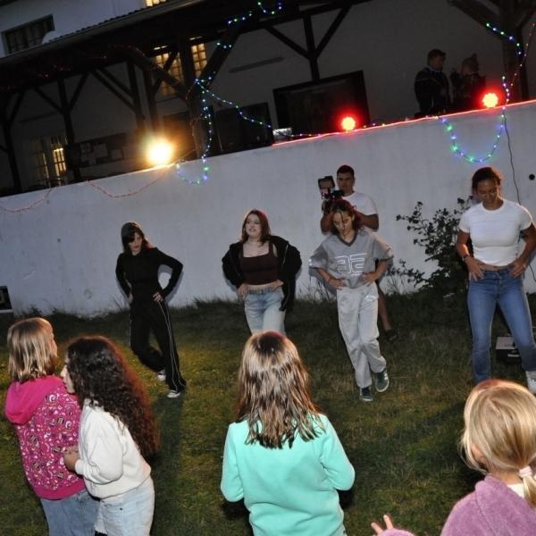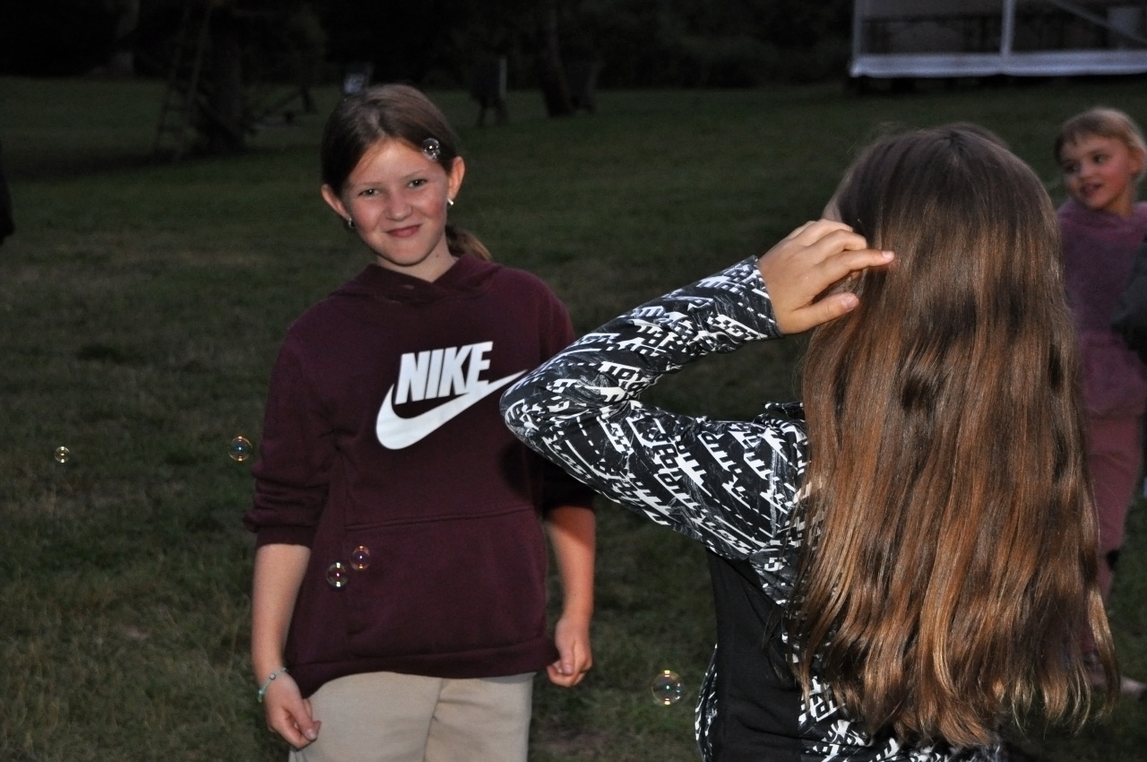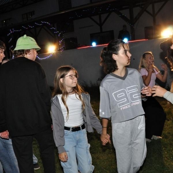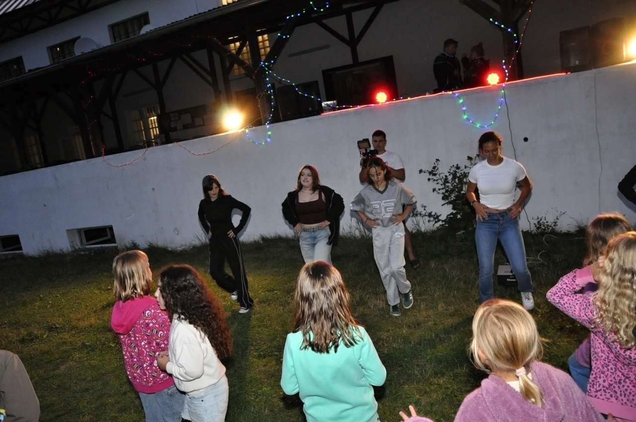 Každý program z pohledu dětí však bledne v porovnání s diskotékou. Nahodit vlnu, nandat čistý tepláky, vytáhnout to "správný" triko, nagelovat vlasy, a jít do rytmu disco pošlapat trávu pod verandou je, zdá se, tím největším lákadlem pro všechny. I když tanec místy vypadá spíše jako úpolový sport, děti to prostě baví. A my, pro tanec naprosto nevybavení, to nějak vydržíme.