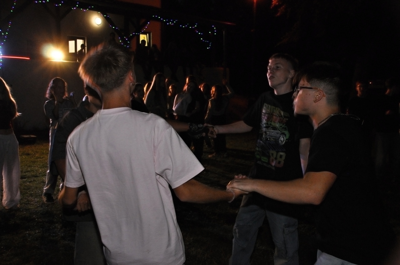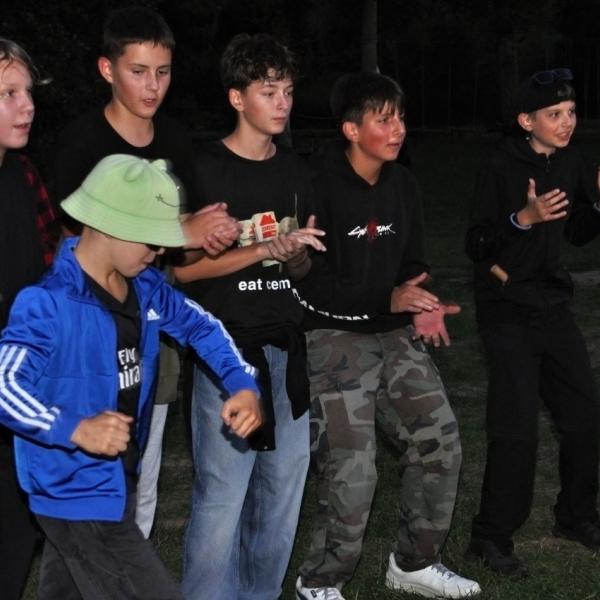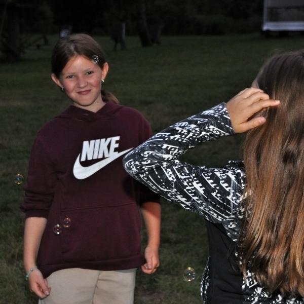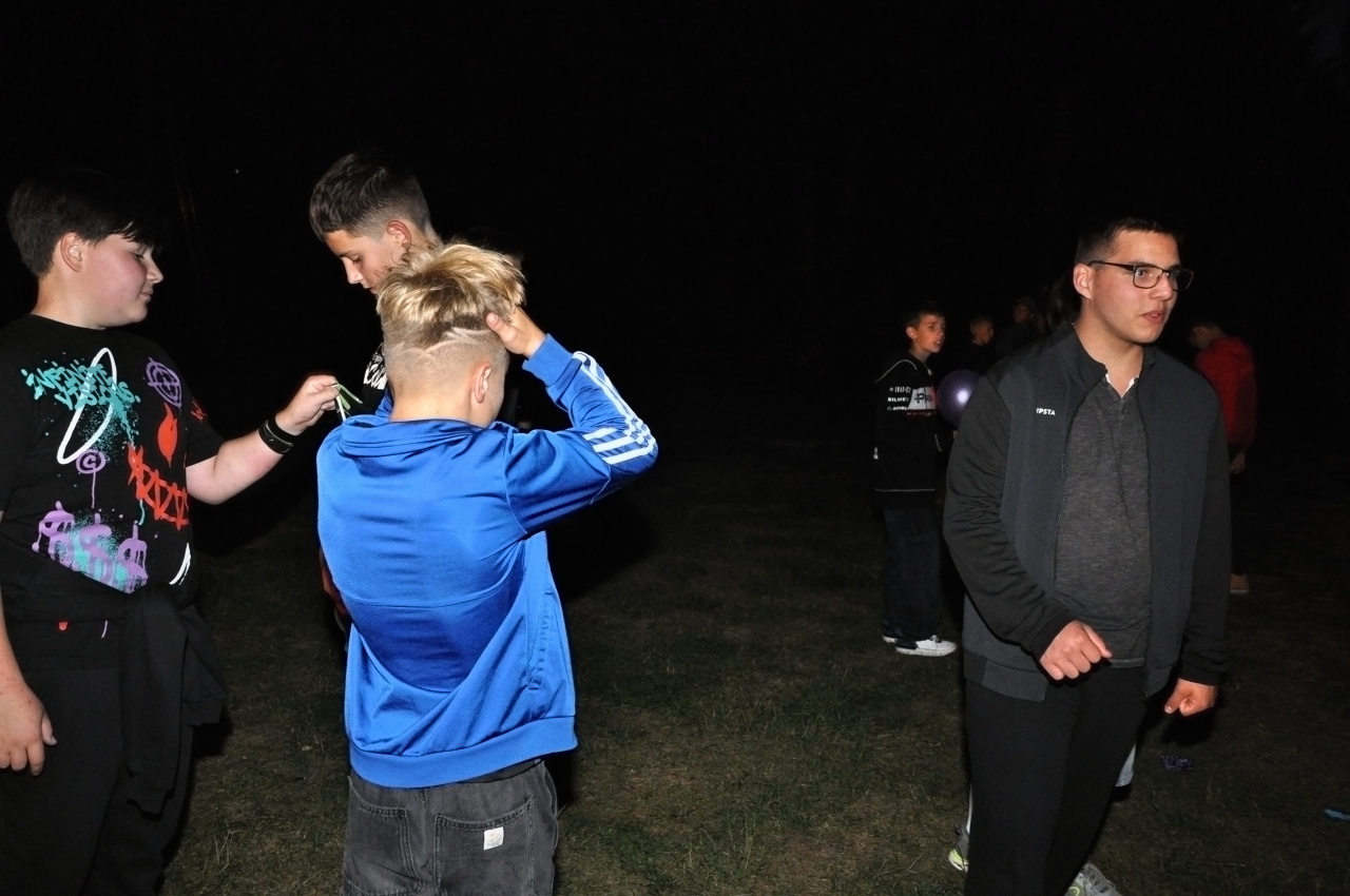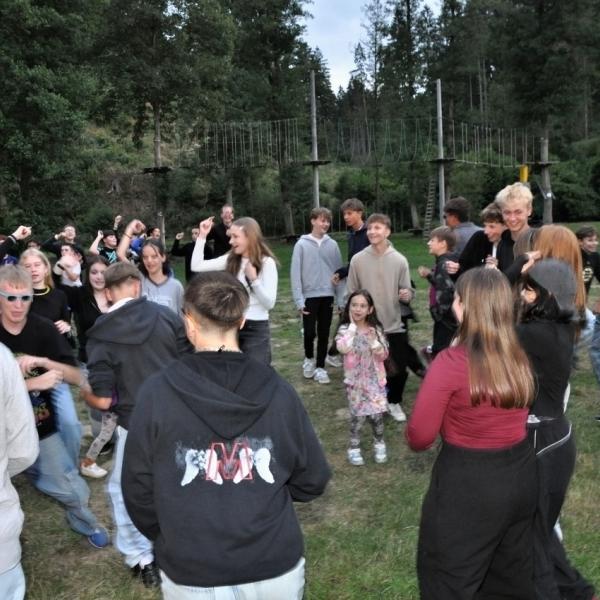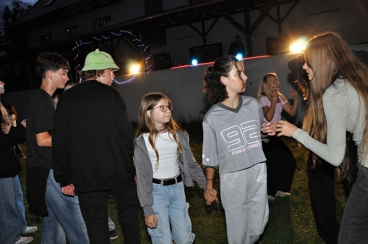 Každý program z pohledu dětí však bledne v porovnání s diskotékou. Nahodit vlnu, nandat čistý tepláky, vytáhnout to "správný" triko, nagelovat vlasy, a jít do rytmu disco pošlapat trávu pod verandou je, zdá se, tím největším lákadlem pro všechny. I když tanec místy vypadá spíše jako úpolový sport, děti to prostě baví. A my, pro tanec naprosto nevybavení, to nějak vydržíme.