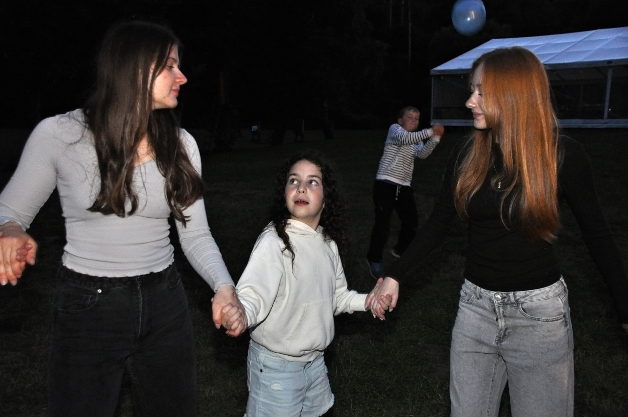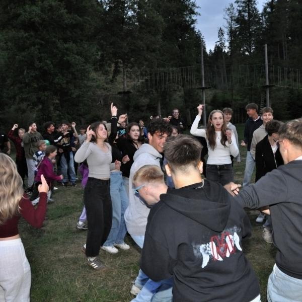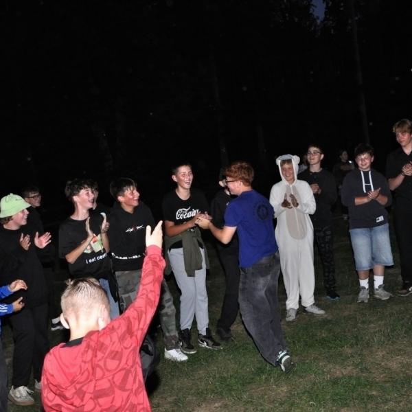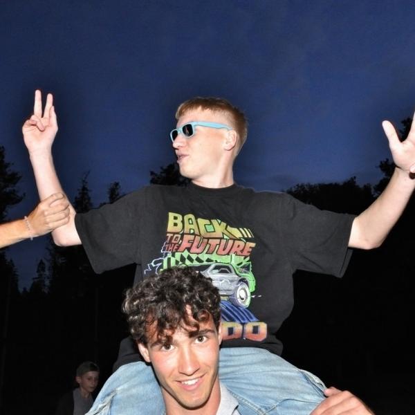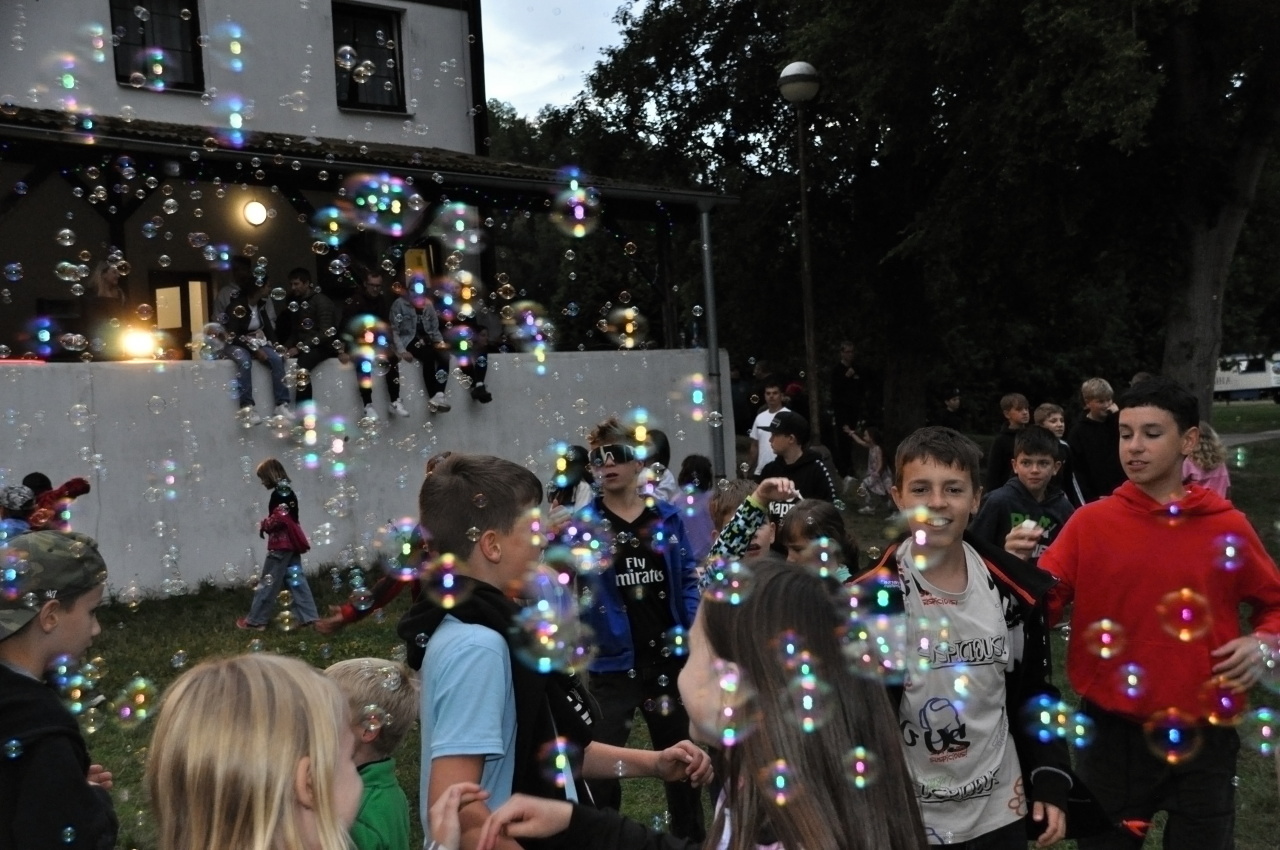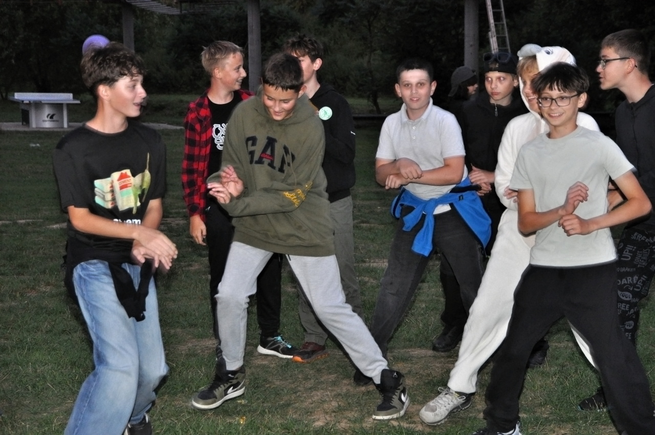 Každý program z pohledu dětí však bledne v porovnání s diskotékou. Nahodit vlnu, nandat čistý tepláky, vytáhnout to "správný" triko, nagelovat vlasy, a jít do rytmu disco pošlapat trávu pod verandou je, zdá se, tím největším lákadlem pro všechny. I když tanec místy vypadá spíše jako úpolový sport, děti to prostě baví. A my, pro tanec naprosto nevybavení, to nějak vydržíme.